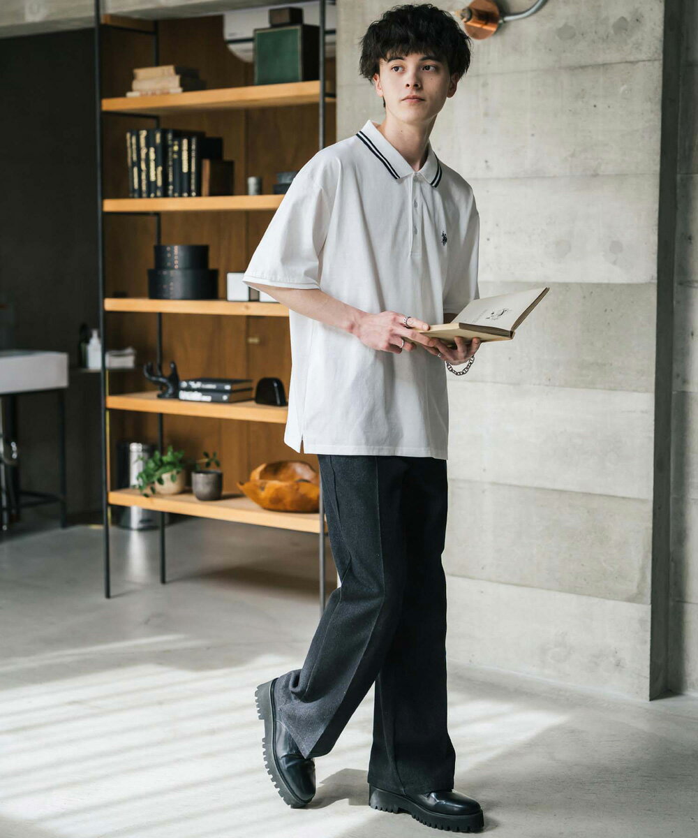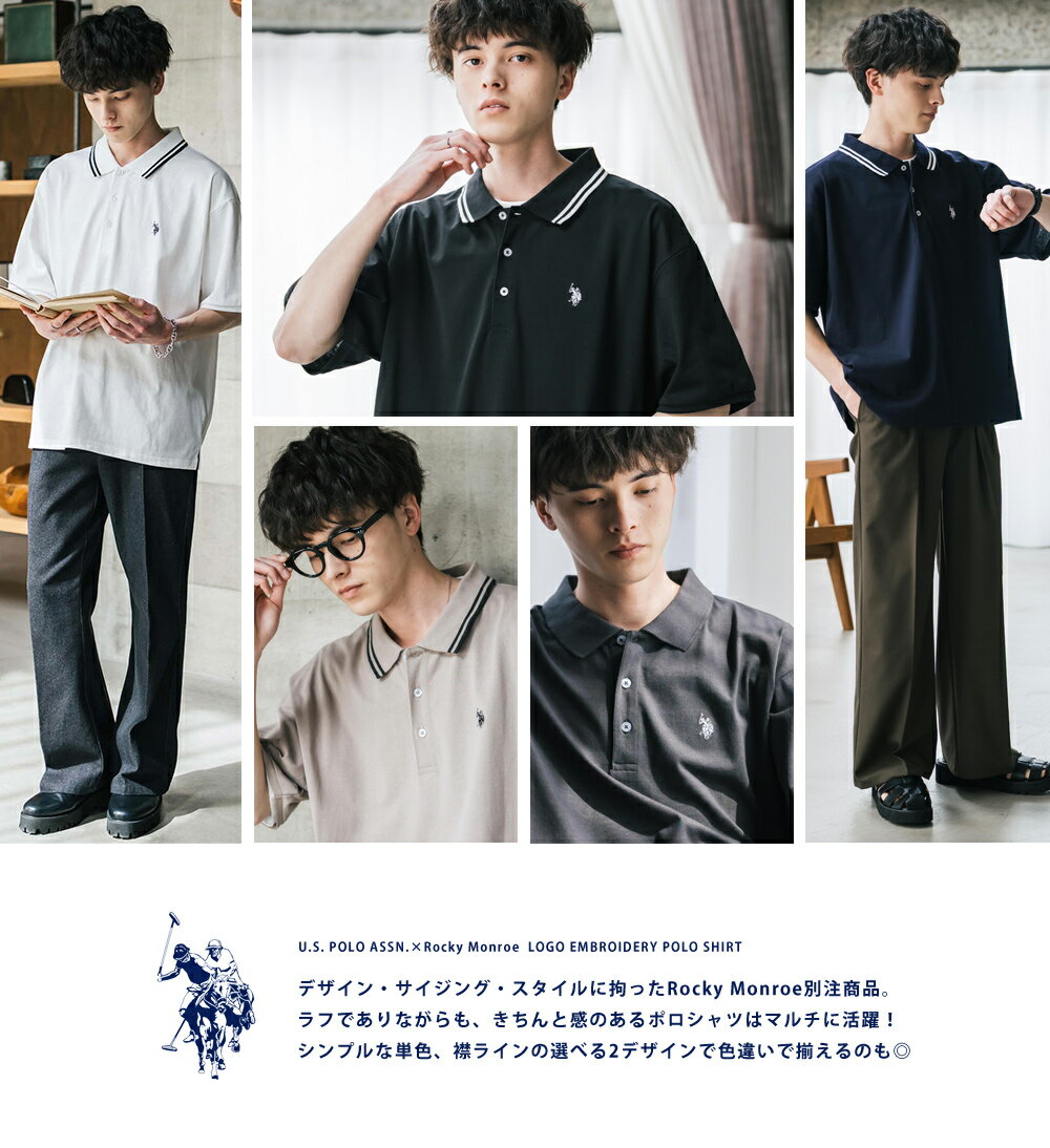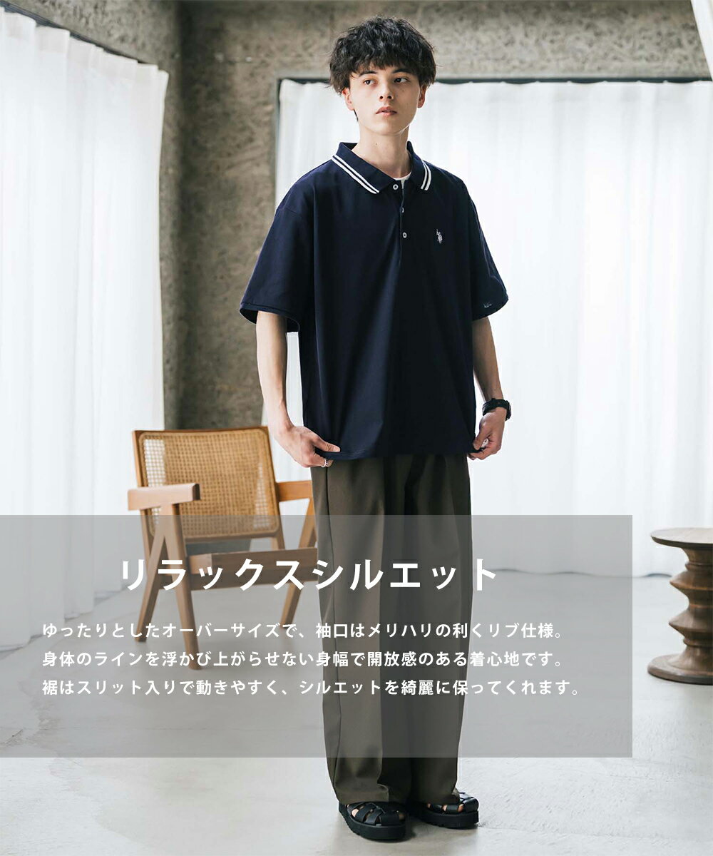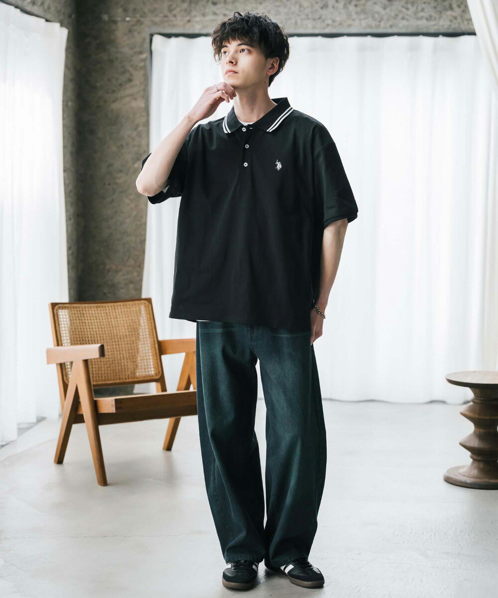 U.S. POLO ASSN. ユーエスポロアッスン ポロシャツ プルオーバー 半袖 メンズ レディース 天竺 オーバーサイズ ビッグシルエット ロゴ刺繍 ワンポイント 無地 ラインリブ ルームウェア 別注 コラボ 限定 シンプル カジュアル ストリート ゴルフ 14369