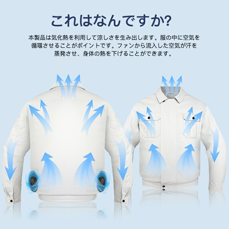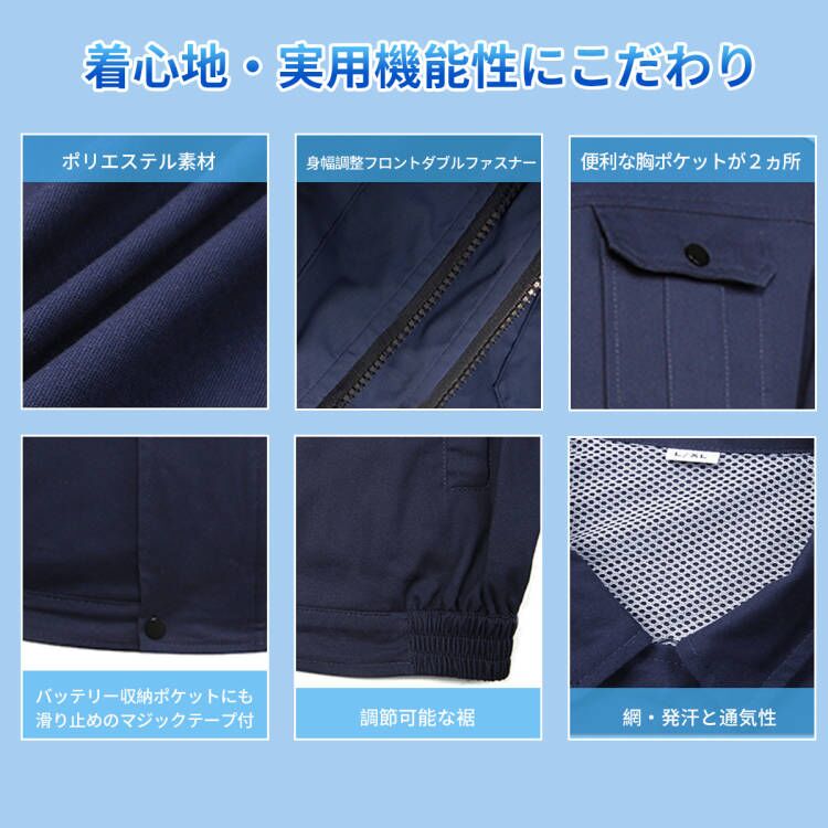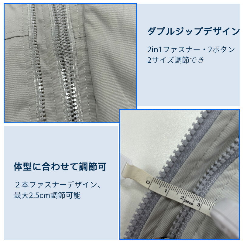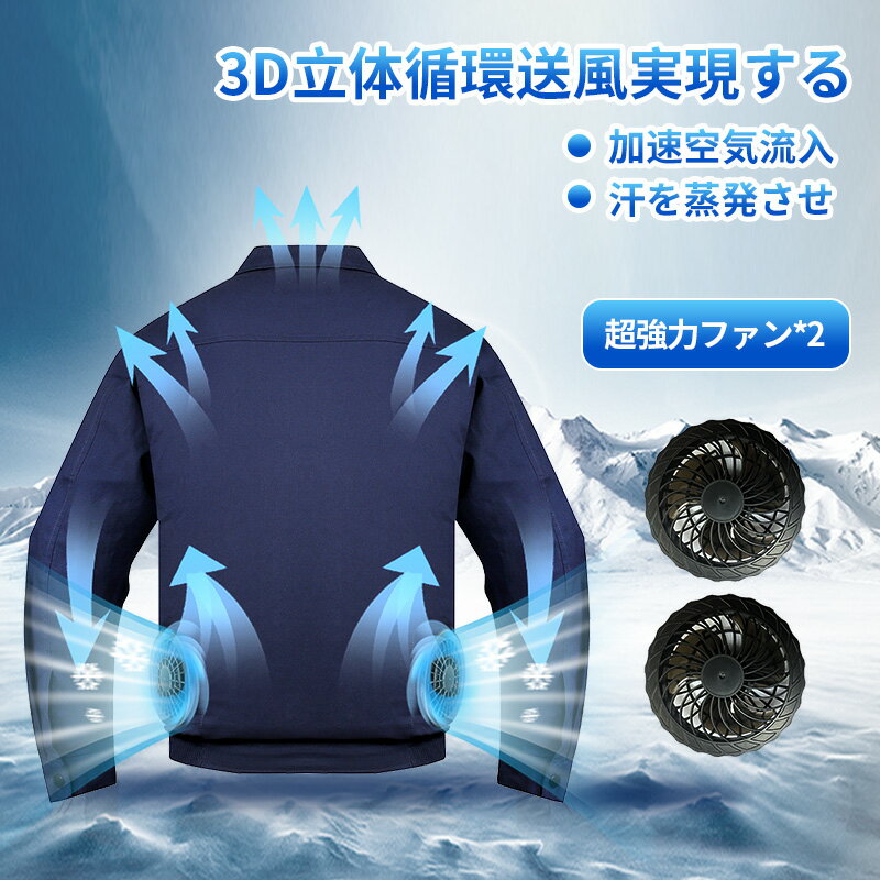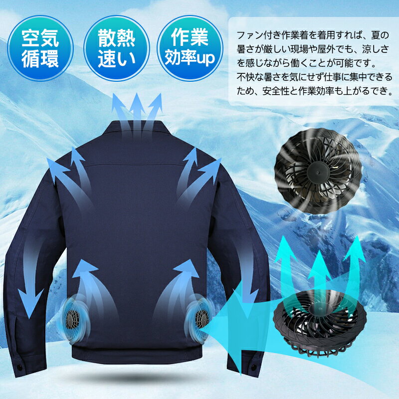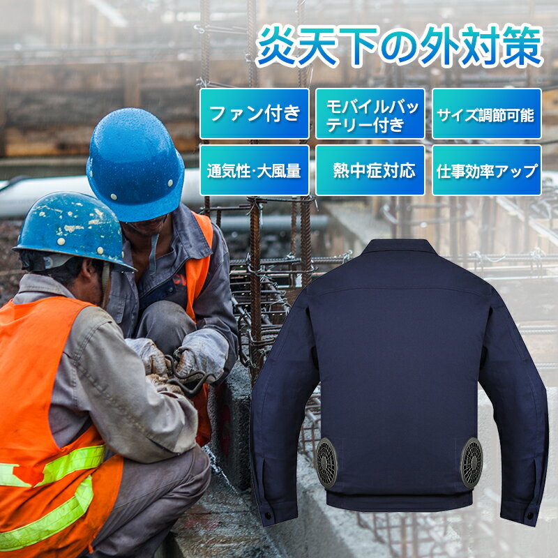 ランキング6冠!ファン付き作業服 30000mAhバッテリー付属 パワフル 3段階風量調節可 ファン2個 大風量 3D立体循環送風 通気性 サイズ調節可 ファン付きウェア 長袖 日焼け止め USB給電 PSE認証 簡単取り付け 男女兼用 2色 グレー/ネイビー 屋外/屋内 外仕事 農作業 釣り