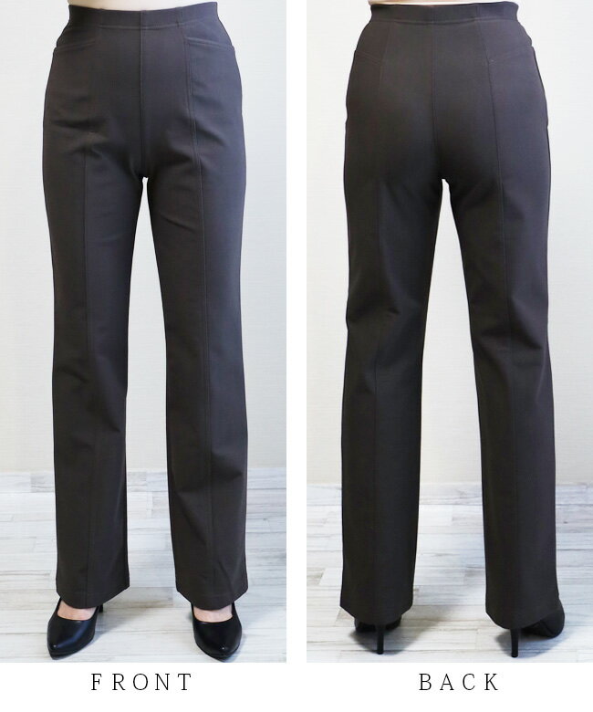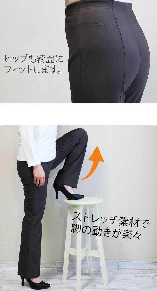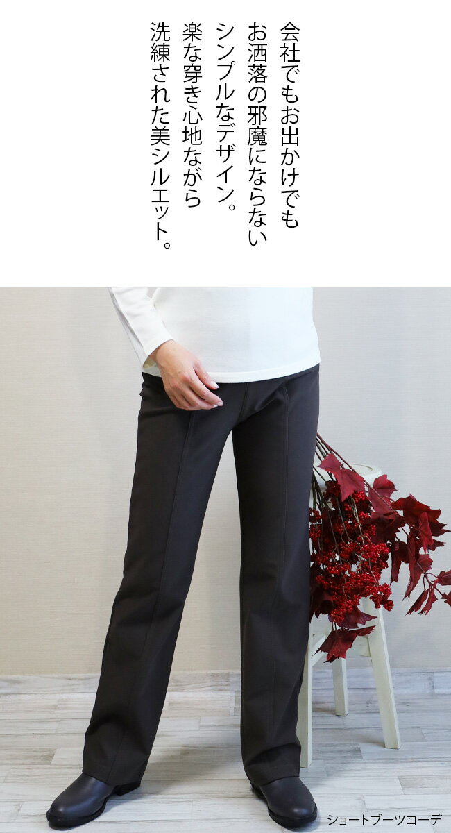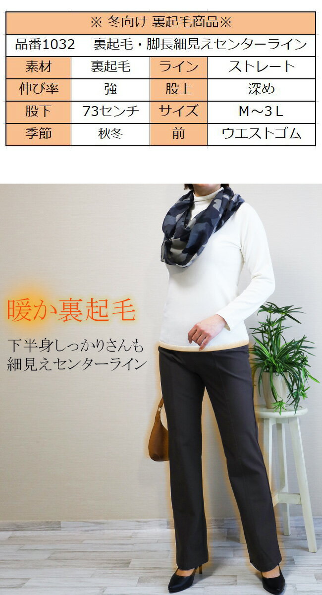 新作・日本製★暖か・定番・-5歳細見え裏起毛センターライン・ストレートパンツ Straight 極暖 ハイテンションパンツ 旭化成ロイカ 股上深め 老舗パンツ屋 大きいサイズ ボトムス レディースパンツ 裏起毛パンツ Pull・On【GM/1032】【股下73センチ】
