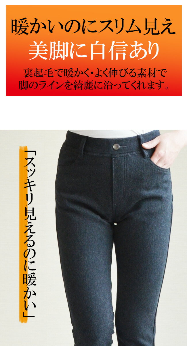 人気★本気で暖か★静電気防止機能【ウエストゴム】極暖起毛裏フリーススリム・レギパン★ Slim ko0004 裏起毛 パンツ 楽々 あったか・暖パン デニム パンツ 大きいサイズ ボトムス レディース 高レビュー Pull・On ジーンズ・ジーパン【股下70センチ】