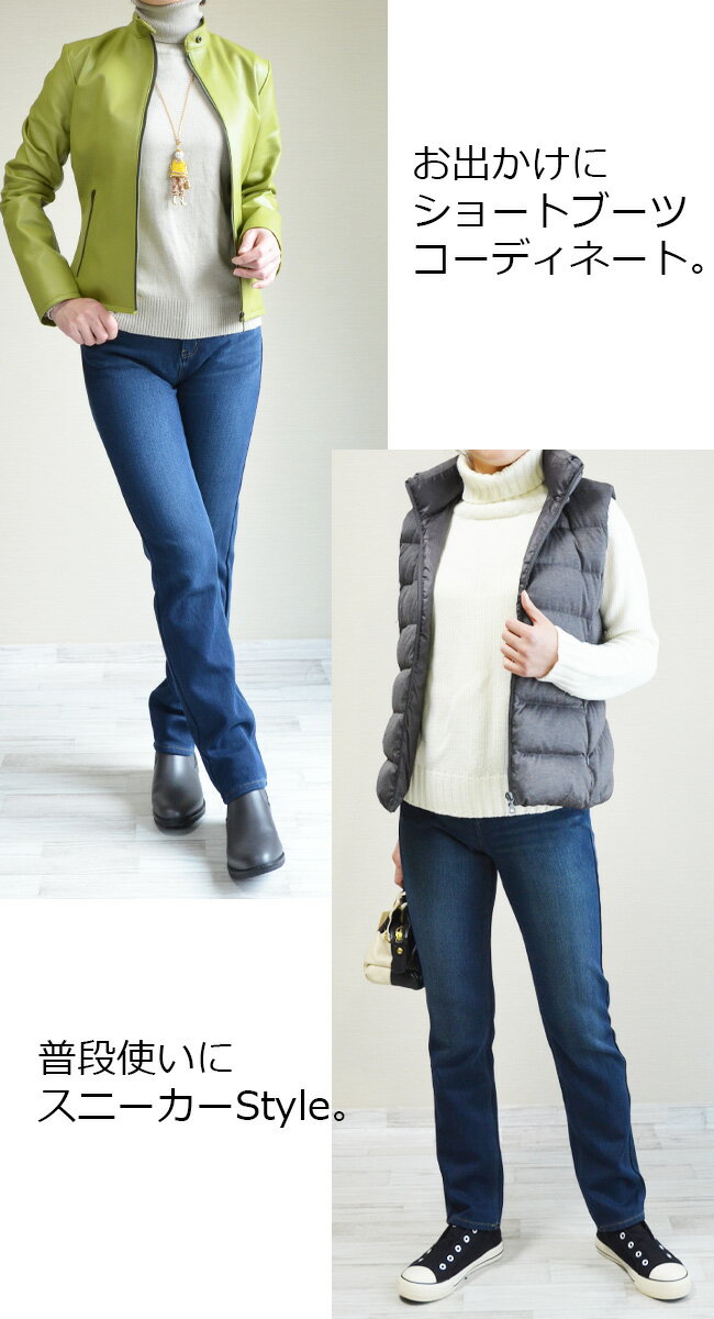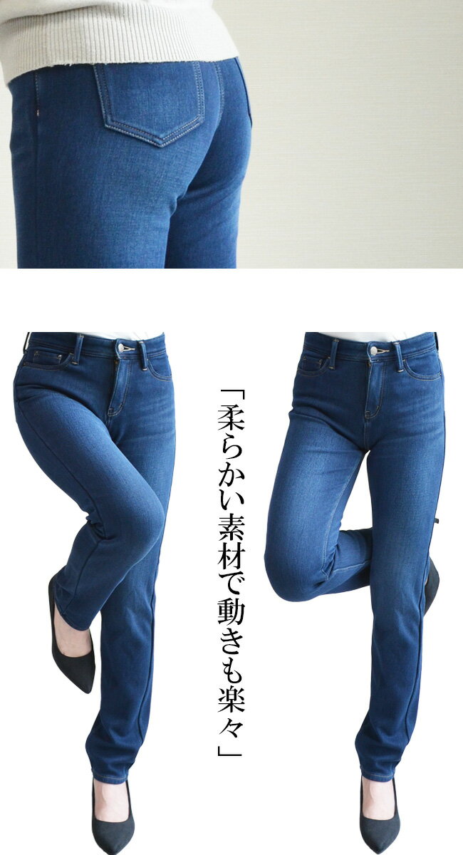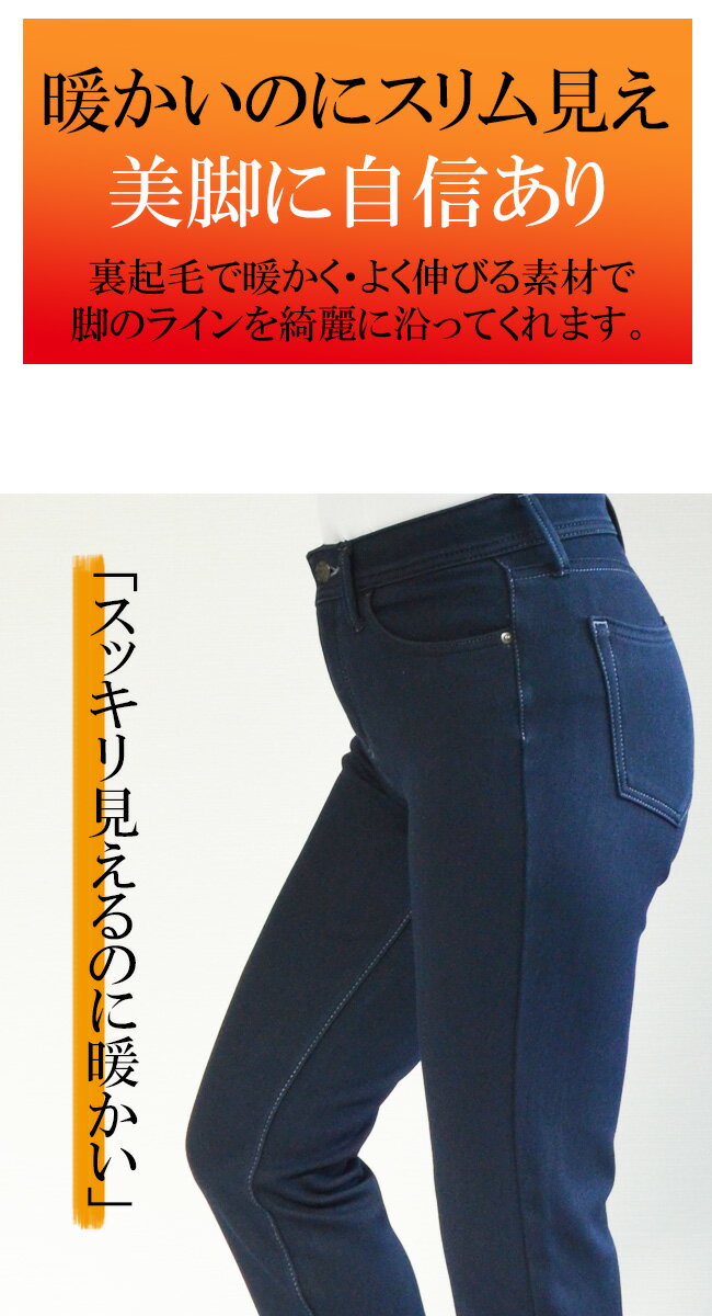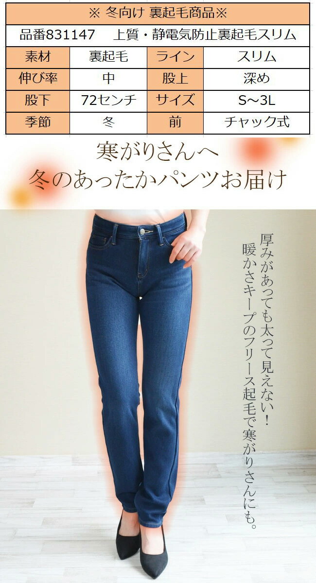 人気★本気で暖か★静電気防止機能【チャック式】極暖裏起毛フリース・スリムストレート★ Straight Slim 裏起毛 パンツ あったか・暖パン デニム パンツ 大きいサイズ ボトムス ジーンズ ジーパン レディース 股上深め Zipper・type【COR831147/831047】【股下72センチ】