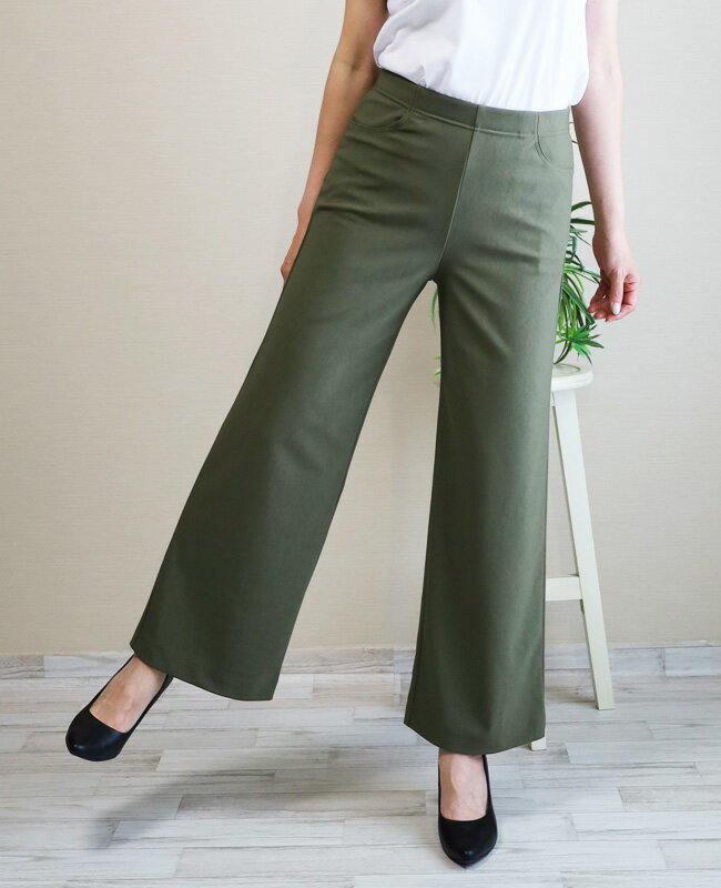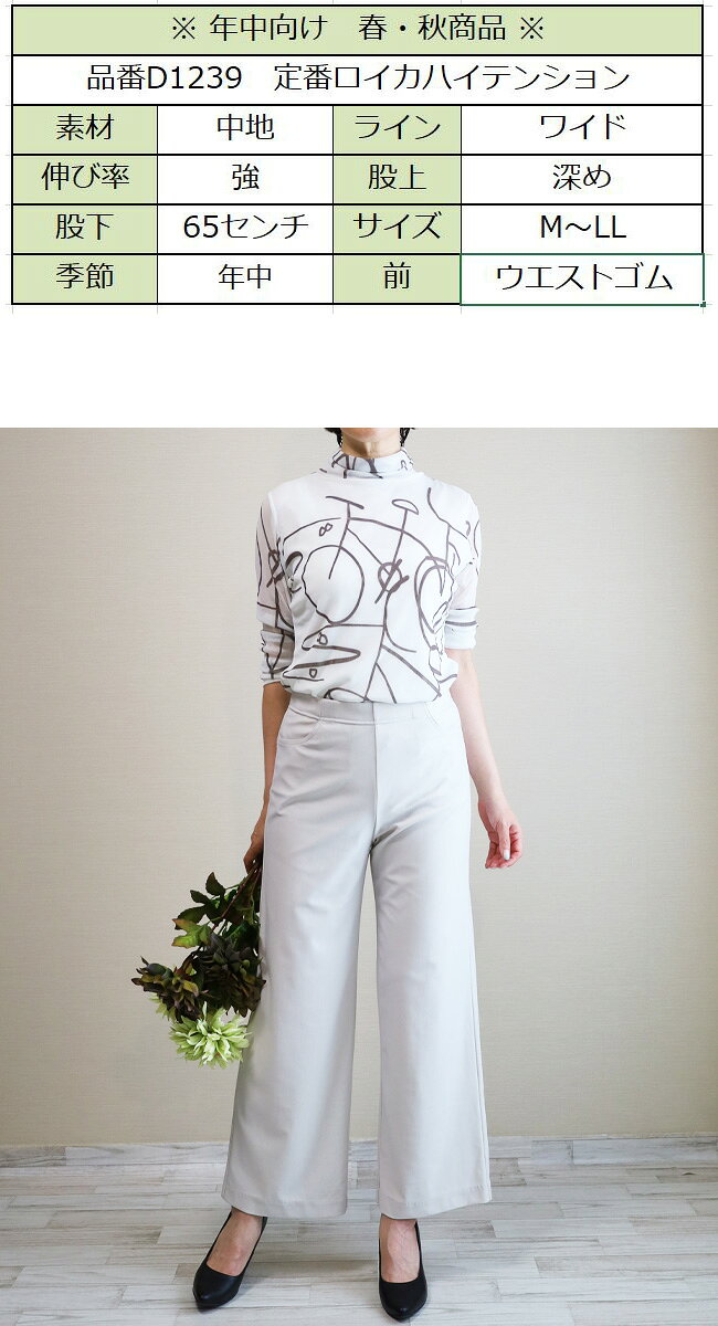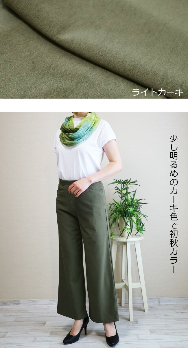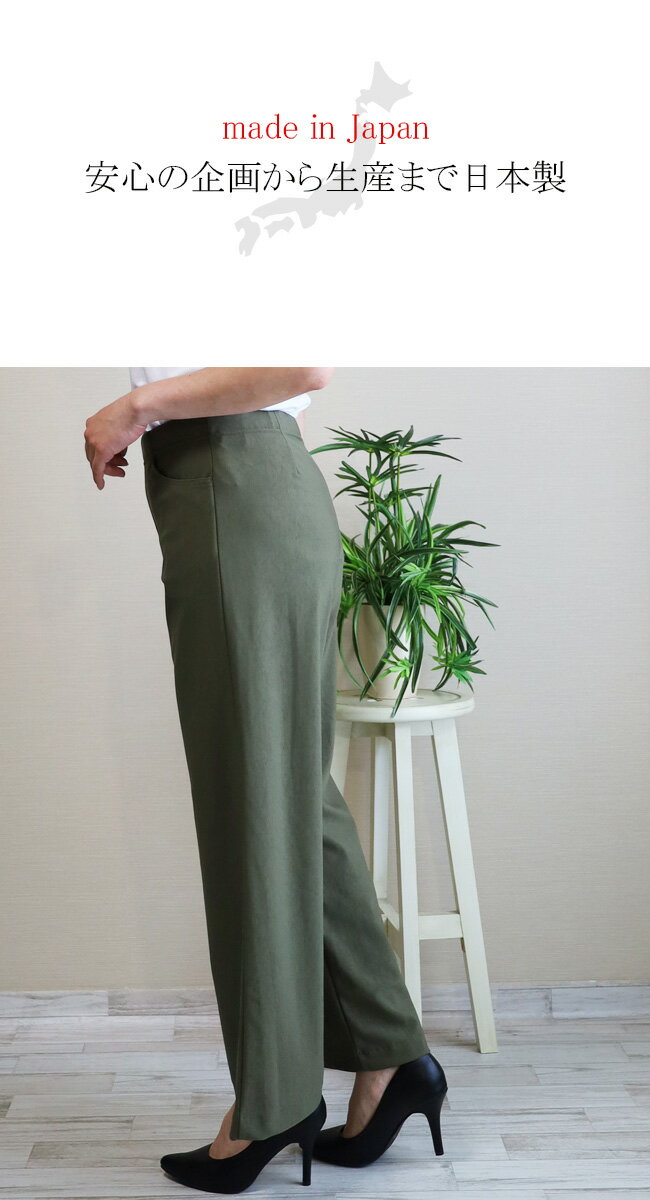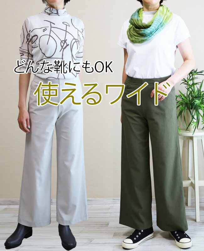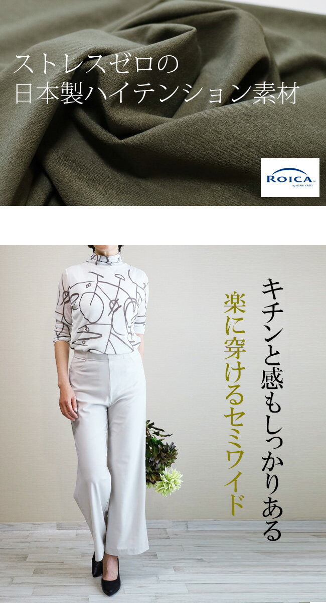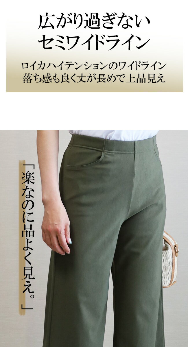 即納・新作【股下65センチ】日本製★定番・旭化成ロイカハイテンションパンツ・エレガント見えセミワイド★Wide│大きいサイズ│ボトムス│レディースパンツ│ウエストゴム│股上深め│綺麗が叶う美脚・脚長│Pull・On【GM/D1239】