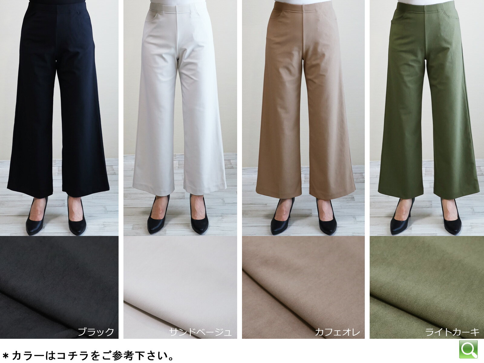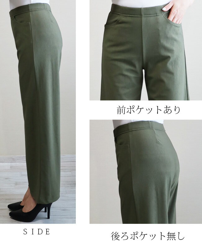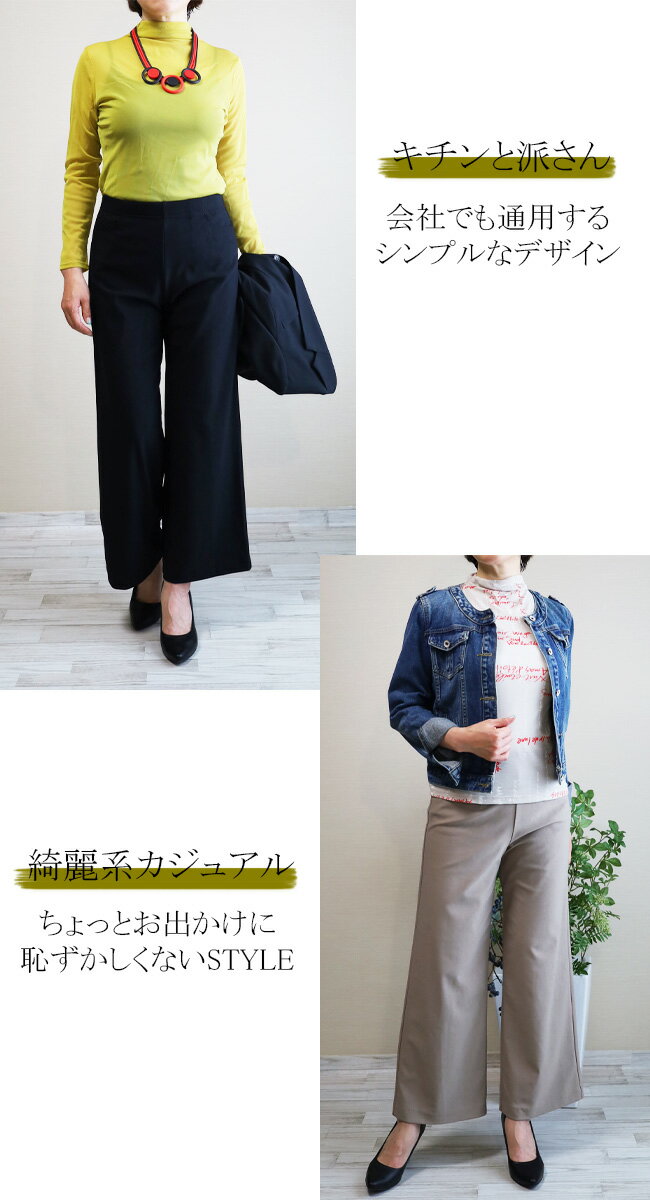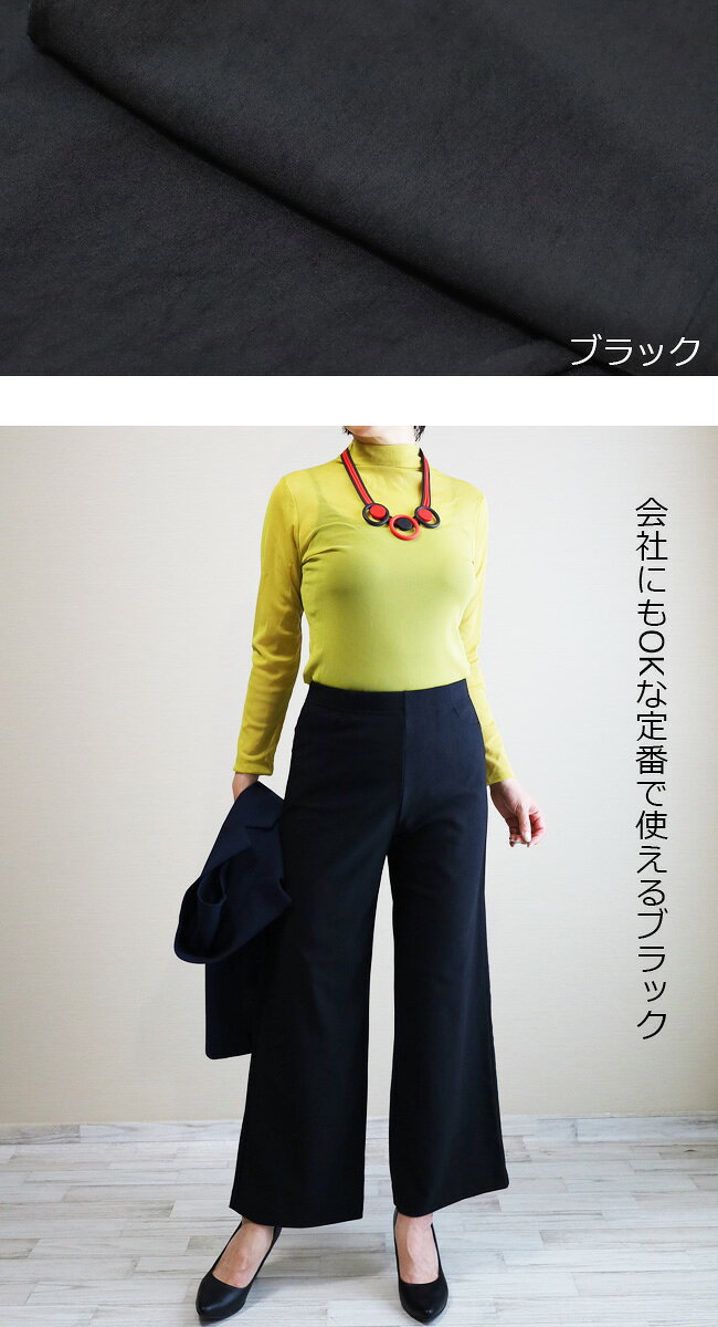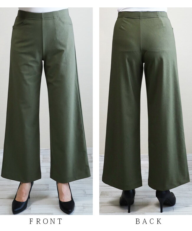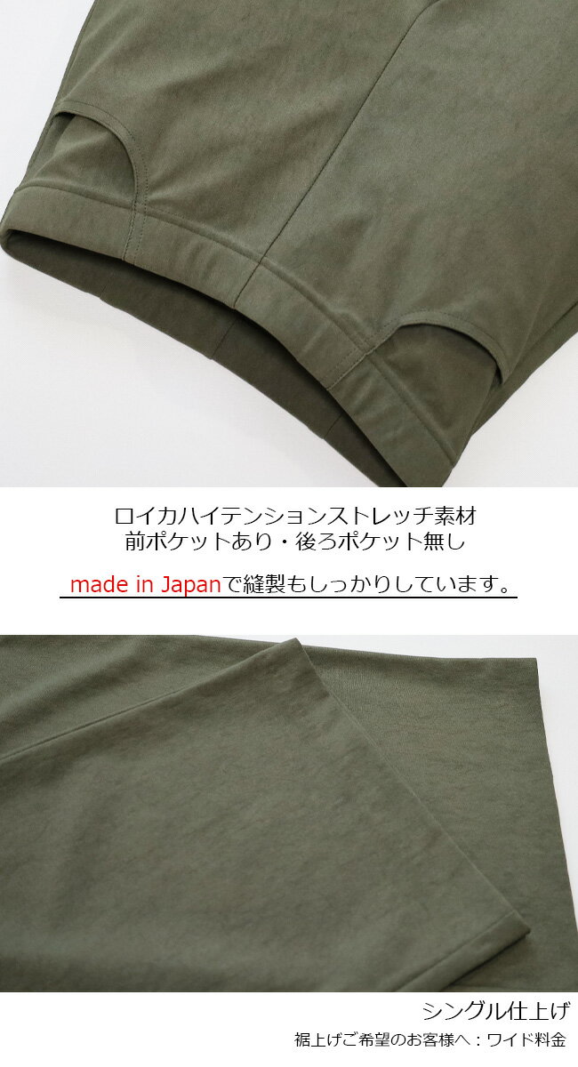 即納・新作【股下65センチ】日本製★定番・旭化成ロイカハイテンションパンツ・エレガント見えセミワイド★Wide│大きいサイズ│ボトムス│レディースパンツ│ウエストゴム│股上深め│綺麗が叶う美脚・脚長│Pull・On【GM/D1239】