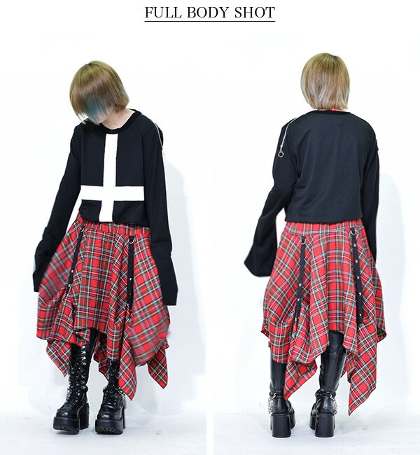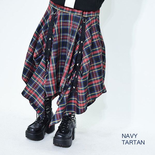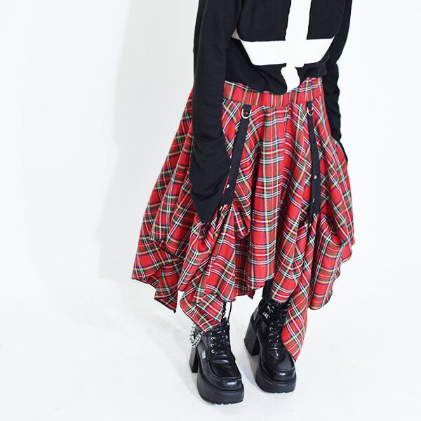 2wayスカート パンク スカート ロック ファッション V系 膝丈 ひざ丈 ミディ丈 ミモレ丈 ロング 原宿 原宿系 病みかわいい ドレープ クール かっこいい 個性的 ゴシック モード ビジュアル系 ヴィジュアル系 ウエストゴム コスプレ 黒 ブラック ACDC RAG