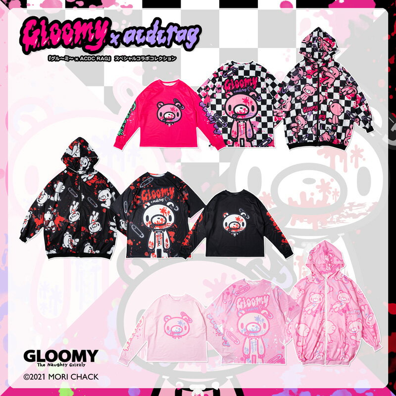 パステルグル~ミ~ ZIP パーカー 長袖 原宿 原宿系 病みかわいい 病みかわ ゆめかわいい ファンシー キュート デコラ ファッション グロかわ レディース 個性的 派手カワ グル~ミ~ コラボ ロゴ ピンク 総柄 ビッグシルエット 大きいサイズ ACDCRAG