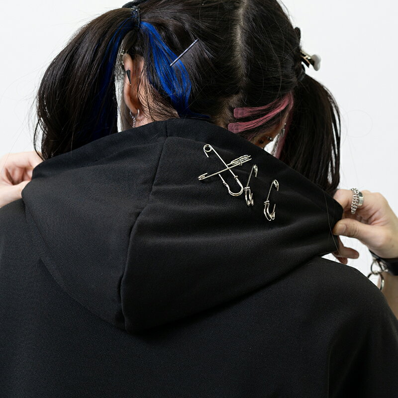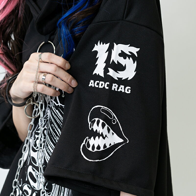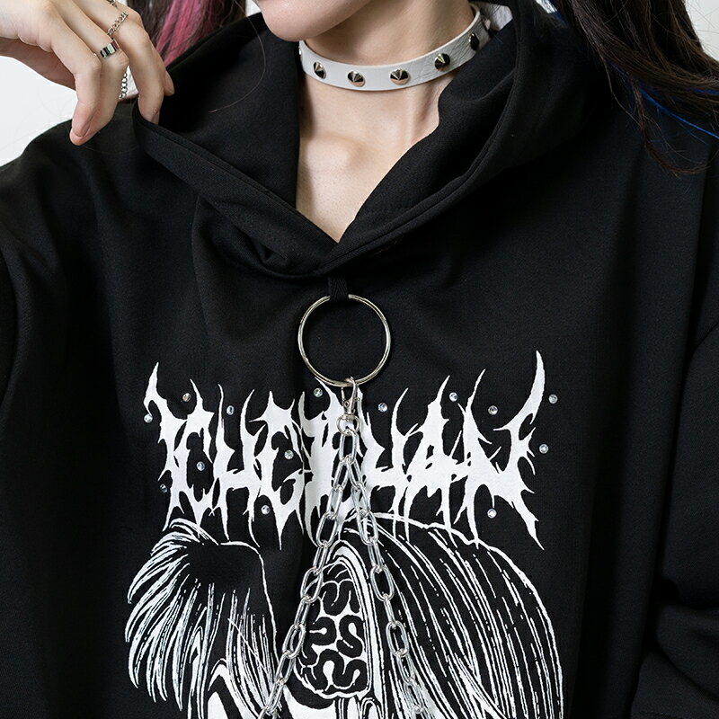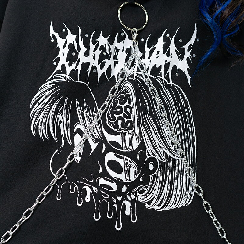 [半袖]脳みそ少女 パーカー 原宿 原宿系 ファッション ichgochan いちごちゃん コラボ イラスト チェーン プリント パンク ロック ダーク ホラー 個性的 ダンス 衣装 ダンス衣装 レディース メンズ ブラック ACDCRAG