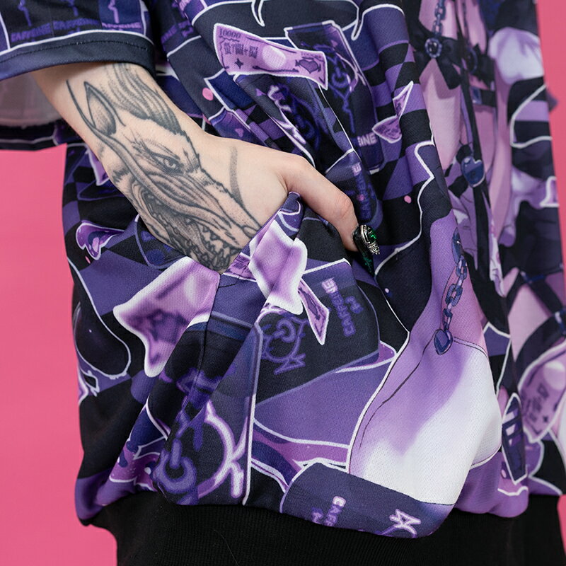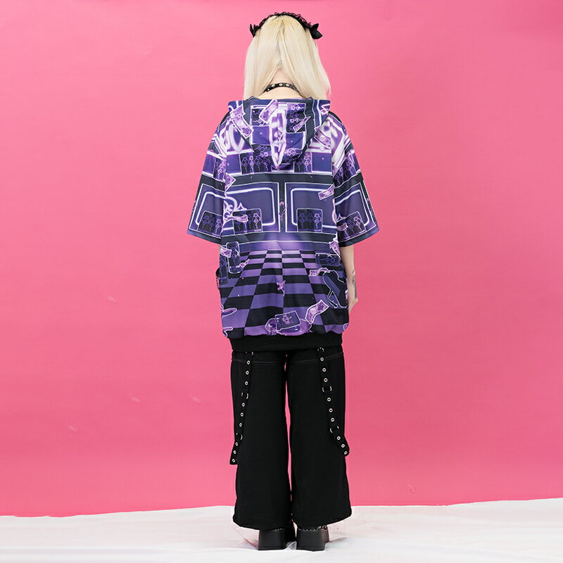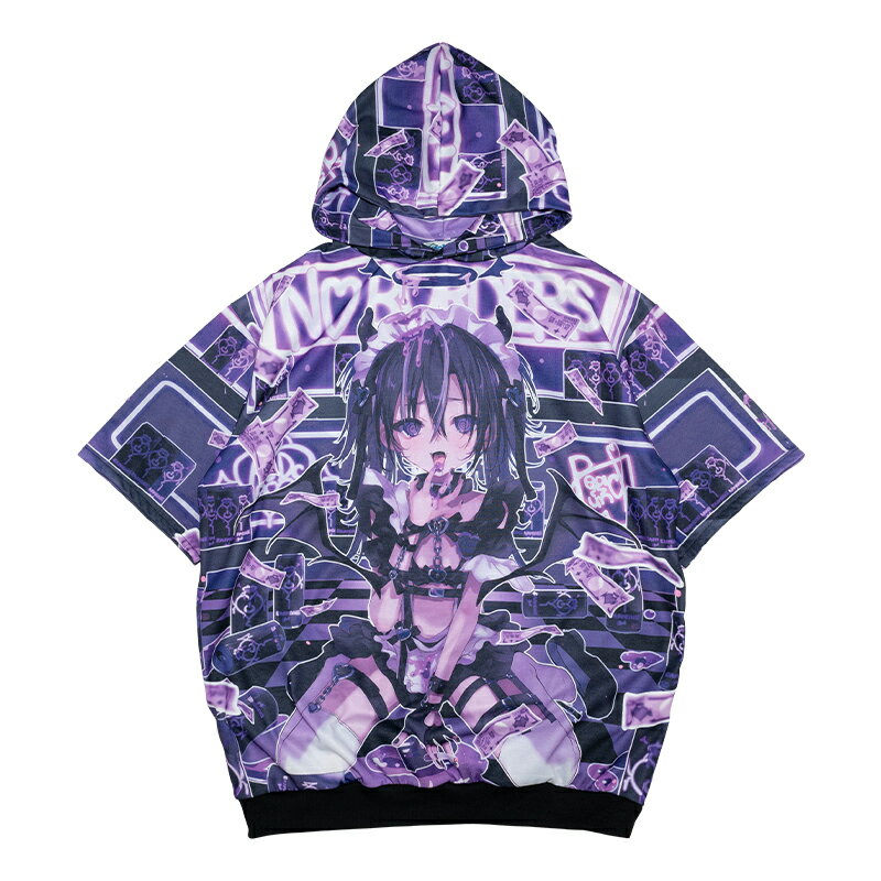 [半袖]中毒悪魔 パーカー ファッション 原宿 原宿系 レディース メンズ ダンス 衣装 ダンス衣装 悪魔 ダーク 病みかわいい 病み 地雷系 個性的 派手カワ PeachPunch ブラック 大きいサイズ ACDC RAG