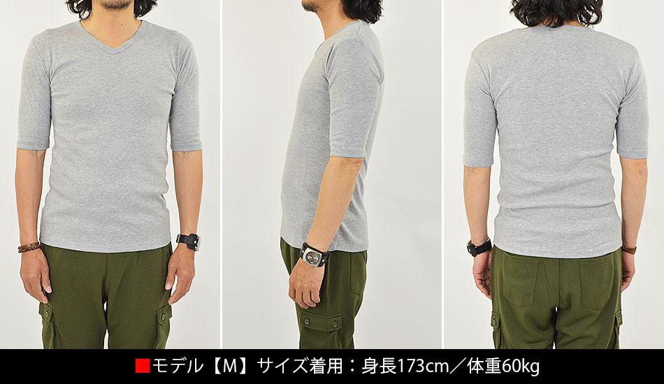 Tシャツ メンズ Vネック 半袖 五分袖 5分袖Tシャツ インナーシャツ カットソー インナーウェア 無地 重ね着 インナー ポリエステル コットン 綿 半袖と七分袖(7分袖)の中間丈 白 黒 紺 グレー ネイビー ブラック ホワイト 春 夏 秋 冬 オールシーズン メール便 送料無料