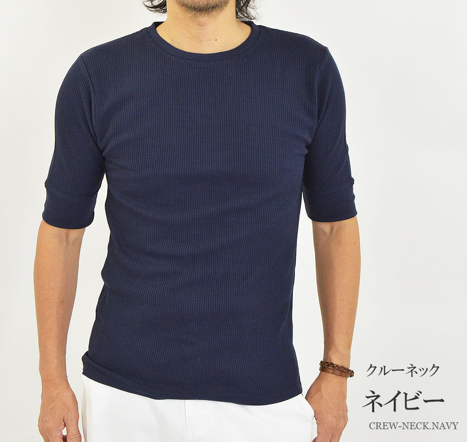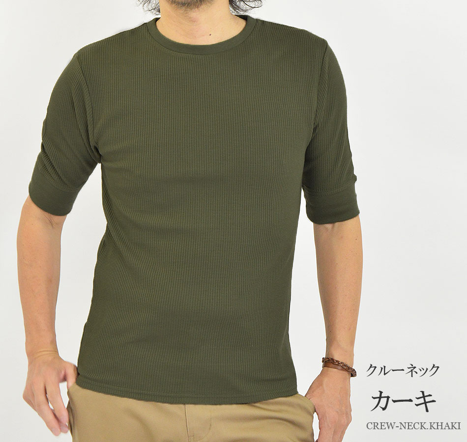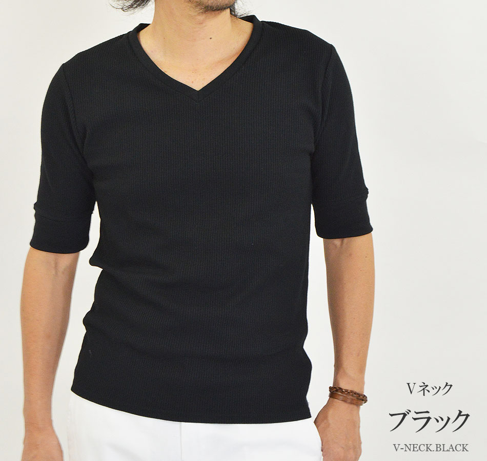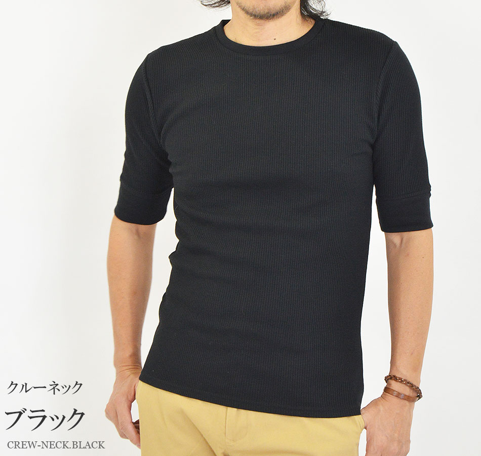 Tシャツ メンズ 半袖 無地 5分袖 五分袖 クルーネック(丸首) Vネック 白 黒 半袖Tシャツ 無地Tシャツ 5分袖Tシャツ 五分袖Tシャツ ブランド 綿 ポリエステル オシャレ ワッフル サーマル ワッフル生地 インナーTシャツ カットソー インナー インナーシャツ かっこいい