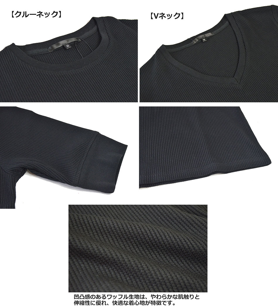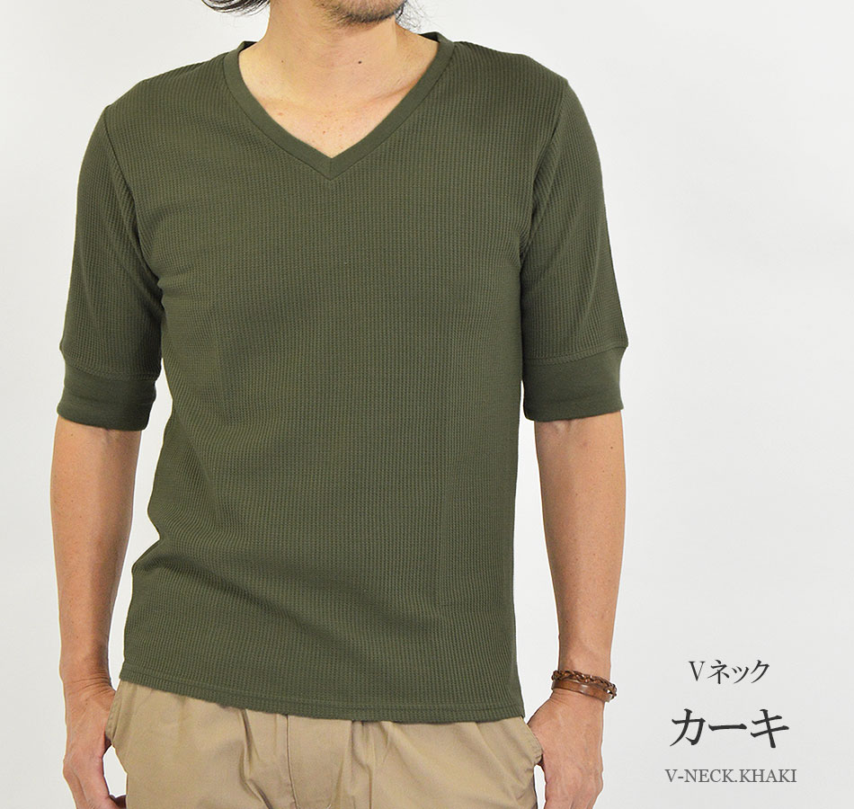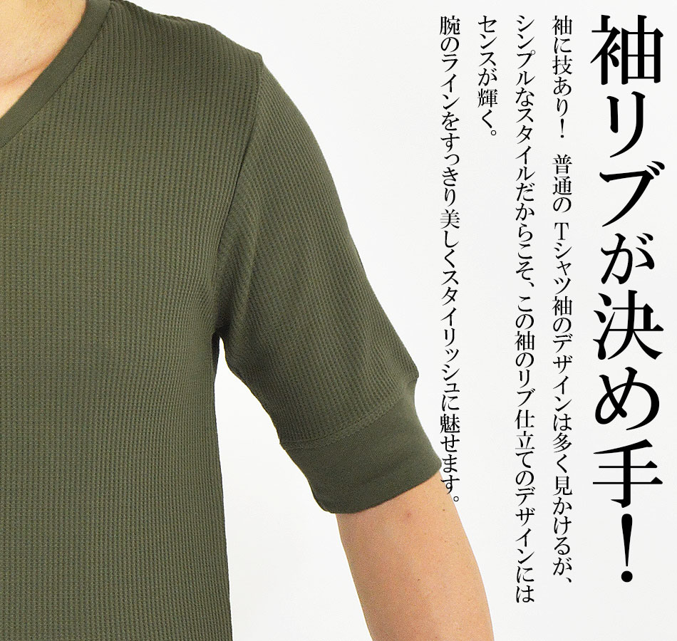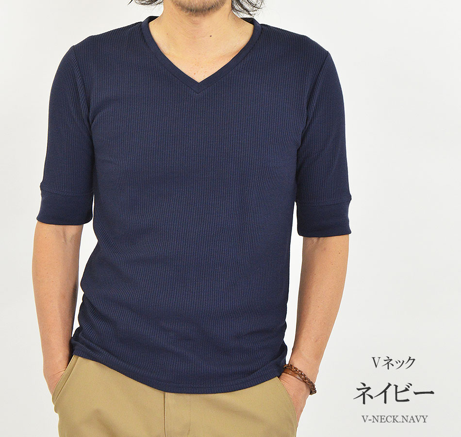 Tシャツ メンズ 半袖 無地 5分袖 五分袖 クルーネック(丸首) Vネック 白 黒 半袖Tシャツ 無地Tシャツ 5分袖Tシャツ 五分袖Tシャツ ブランド 綿 ポリエステル オシャレ ワッフル サーマル ワッフル生地 インナーTシャツ カットソー インナー インナーシャツ かっこいい