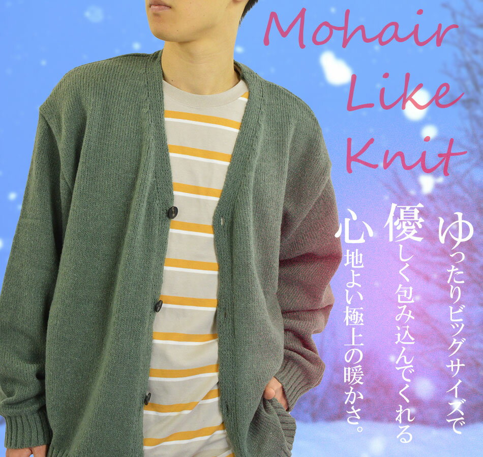 カーディガン メンズ モヘア(モヘヤ)ライク ふんわり 暖かい ローゲージニット 厚手 保温 防寒 韓国系 ファッション 袖 ゆったり 大きめシルエット 羽織り ざっくりニットカーディガン 黒 紺 青 緑 カーデ シンプル 無地 秋 冬 秋服 冬服
