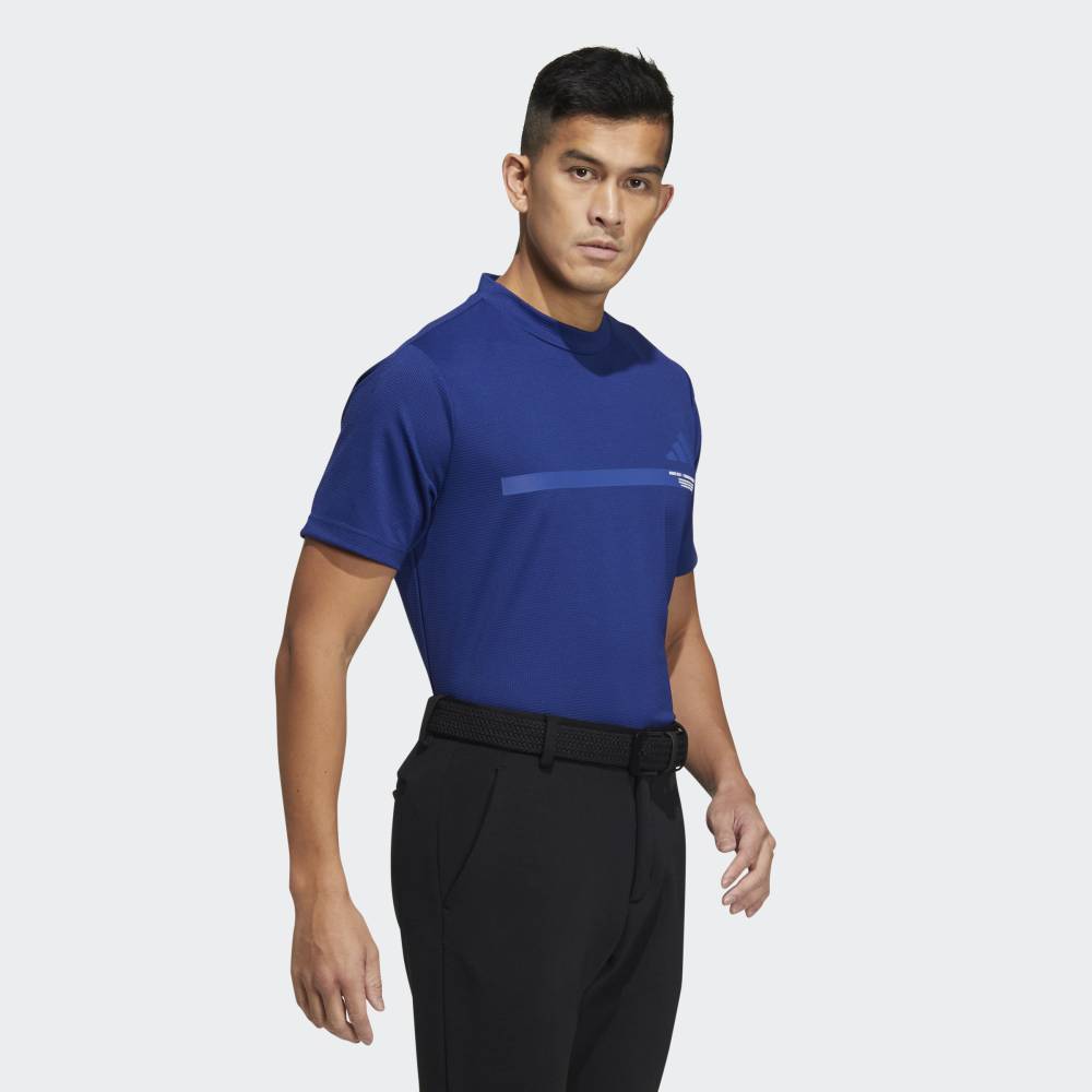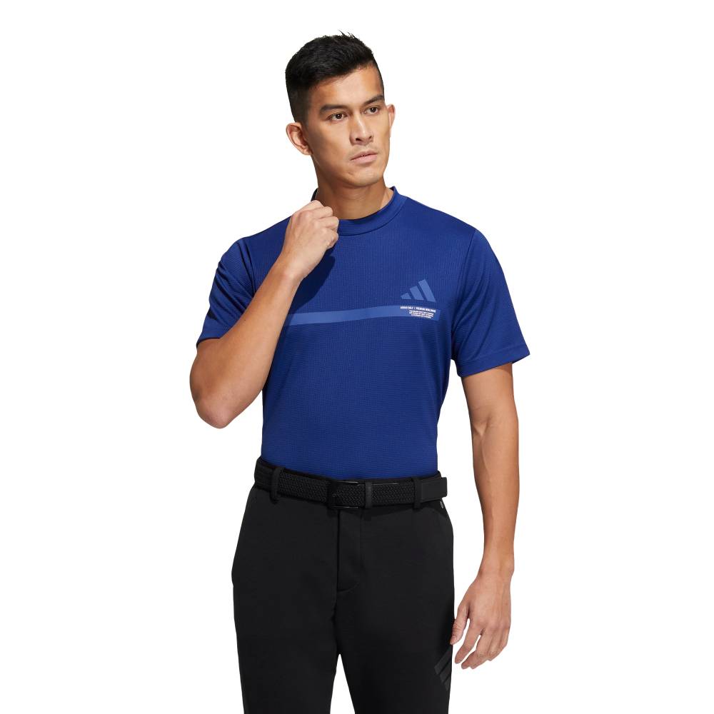 【公式】アディダス adidas 返品可 ゴルフ ビッグ アディダスロゴ 半袖モックネックシャツ パフォーマンス メンズ ウェア・服 ポロシャツ 青 ブルー HS8997 Gnot