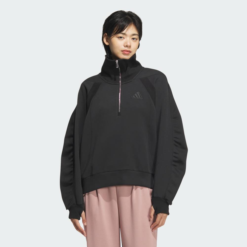 【公式】アディダス adidas 返品可 ライフスタイル LUXFLOW スポーツ ハーフジップ スペーサースエットシャツ スポーツウェア レディース ウェア・服 スウェット(トレーナー) 黒 ブラック JN9983