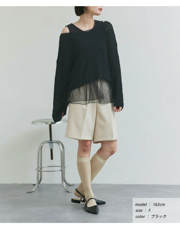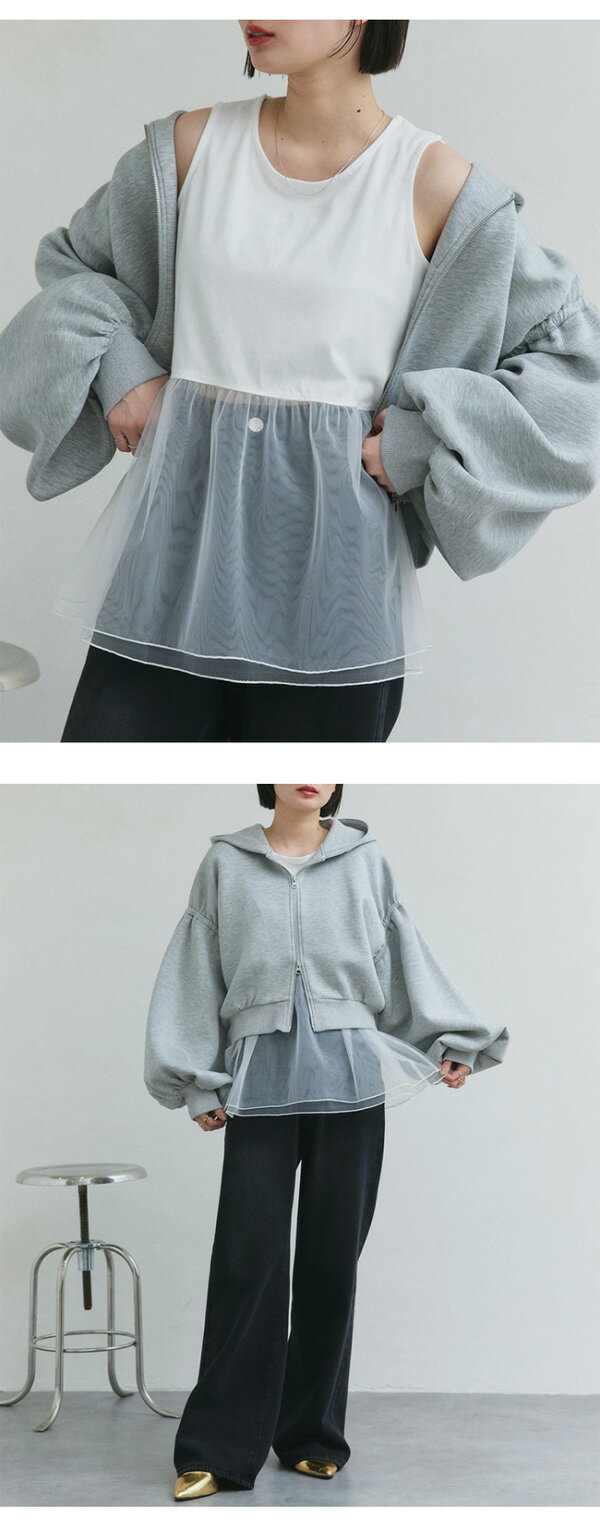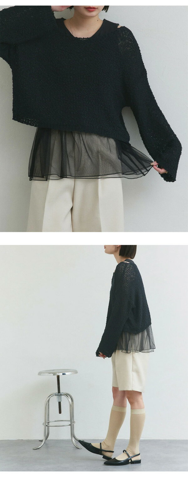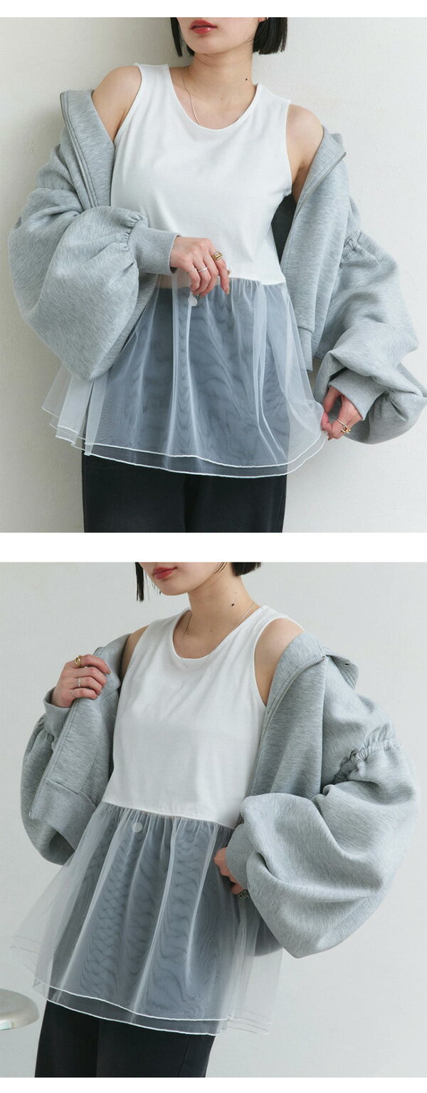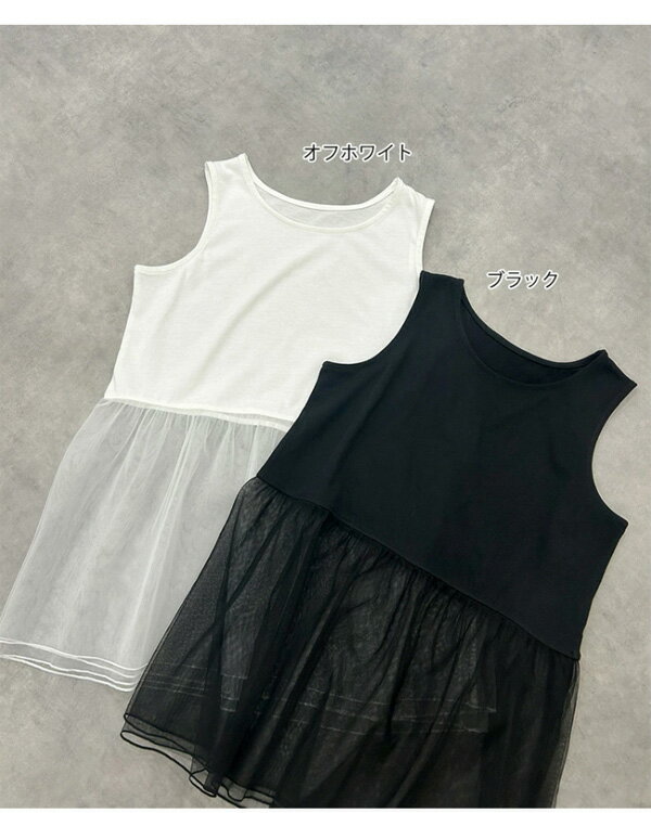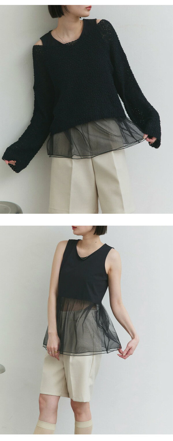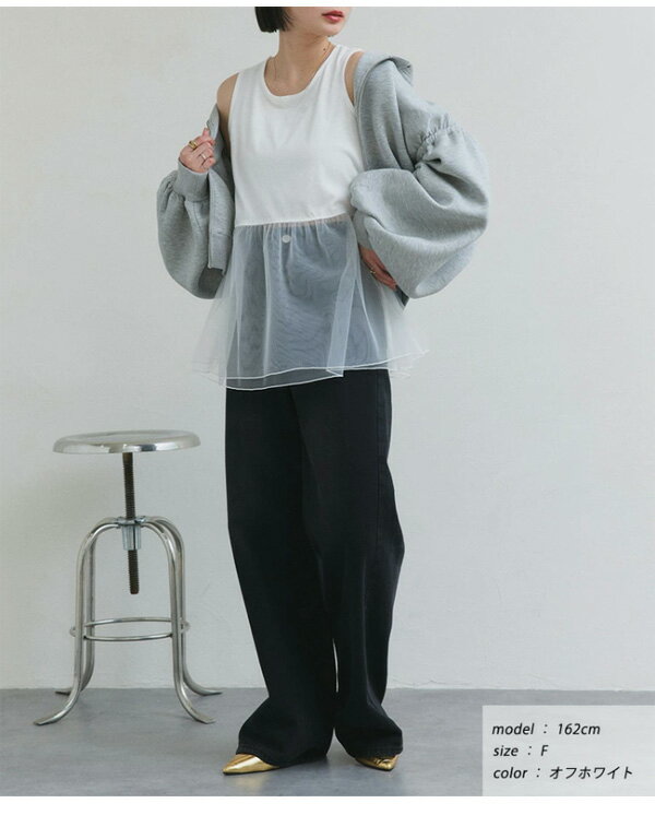 【2025SS新作】レイヤードチュールタンクトップ トレンド おしゃれ きれいめ カジュアル コーデ お洒落 かわいい レディース シンプルデザイン 素材 大人カジュアル オフィスカジュアル 春 夏 秋 トップス ロンT 長袖 カットソー ブラ紐隠し インナータンク