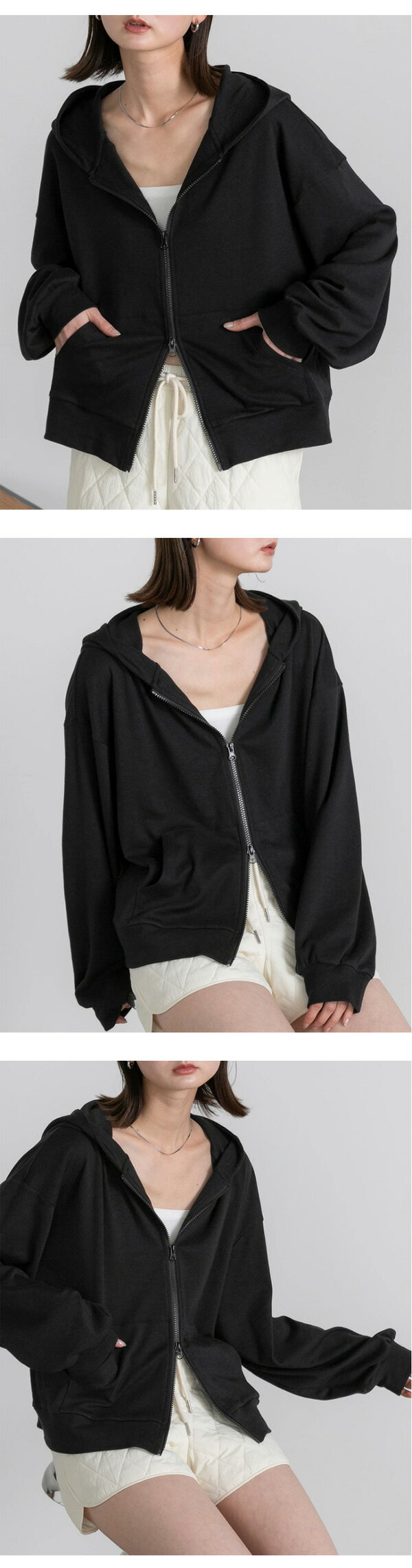 クーポン利用で2980円★ 【2025SS新作】スムースダブルジップパーカー パーカー トップス トレンド おしゃれ きれいめ カジュアル コーデ お洒落 かわいい レディース シンプルデザイン 素材 大人カジュアル オフィスカジュアル ゆったりシルエット 春 夏 秋 大きめ 長袖 ト