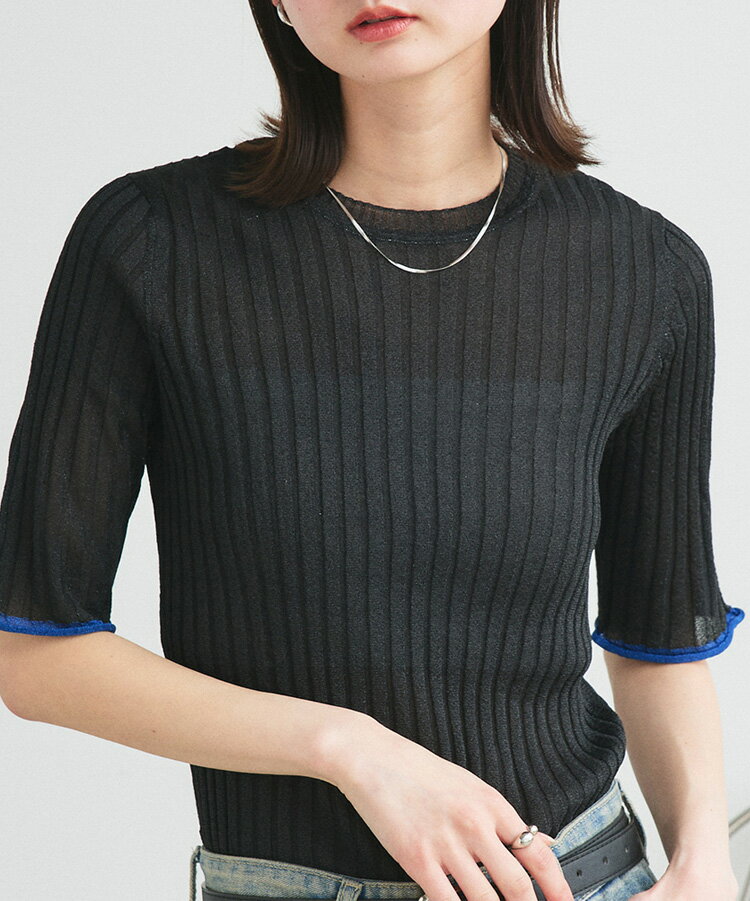 スーパーSALEクーポンで30%OFF★ 【2025SS新作】ラメミックスリブニットトップス トレンド おしゃれ きれいめ カジュアル コーデ お洒落 かわいい レディース シンプルデザイン 素材 大人カジュアル オフィスカジュアル 春 夏 秋 トップス Tシャツ 半袖 カットソー サマー