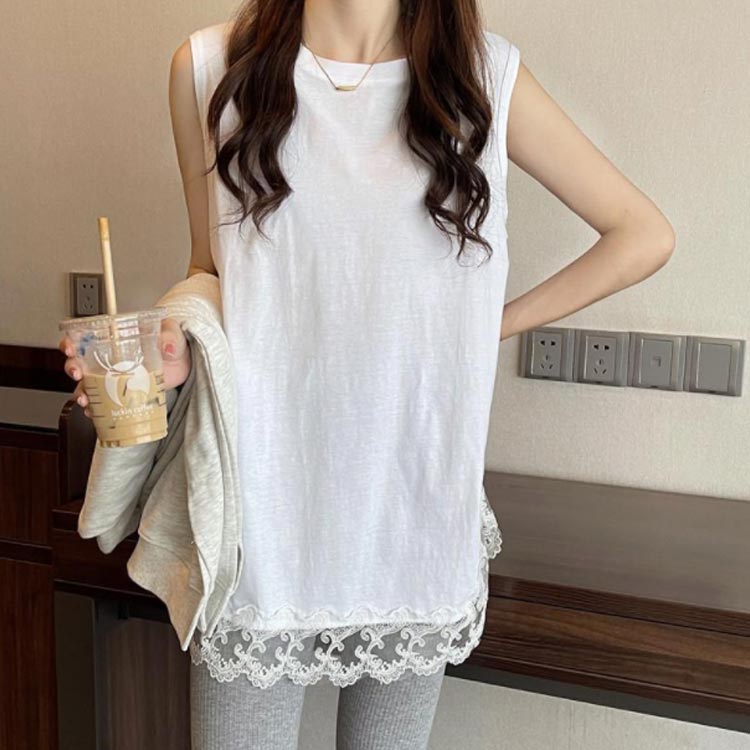裾レース タンクトップ ロング丈 ノースリーブ トップス レディース レイヤードタンクトップ インナー 重ね着 大きいサイズ ロングタンクトップ 春 夏 秋 お尻が隠れる きれいめ M L XL 2XL 3XL