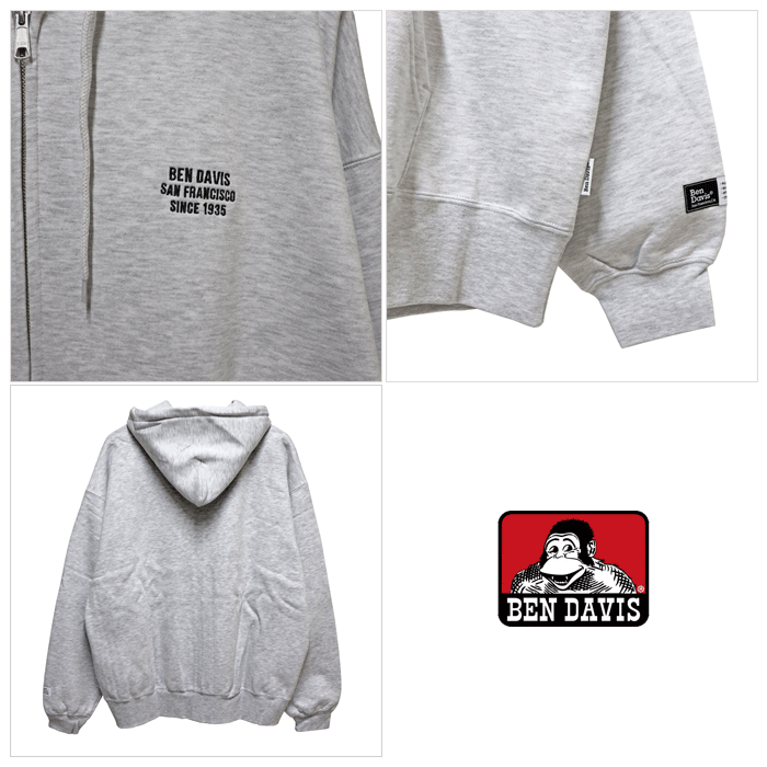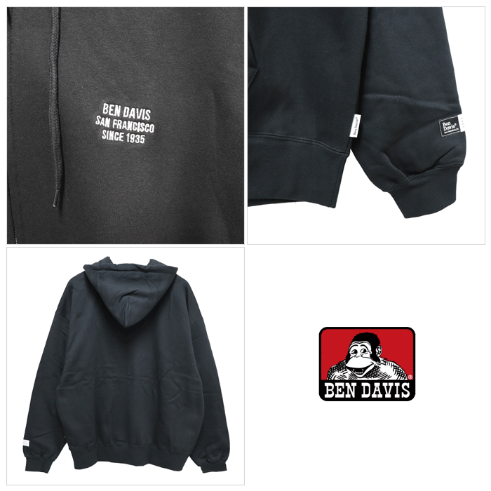(SALE セール) ベンデイビス パーカー フーディー アウター ジャケット 長袖 裏起毛 BEN DAVIS HEAVY SWEAT ZIP HOODIE ベンデービス ベン デイビス