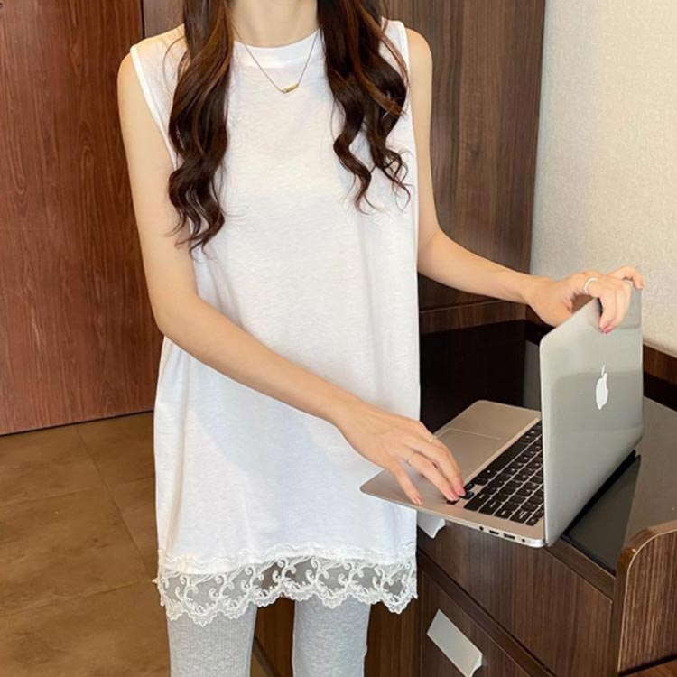 タンクトップ トップス レディース ノースリーブ Tシャツ レース裾 レイヤードタンクトップ インナー 重ね着 大きいサイズ ロングタンクトップ 春 夏 秋 お尻が隠れる きれいめ M L XL 2XL 3XL