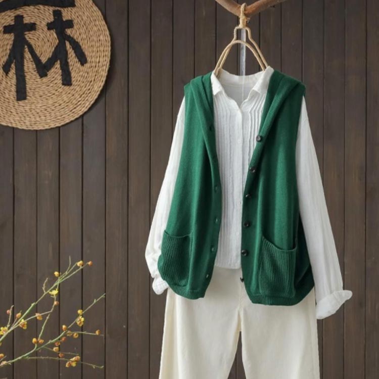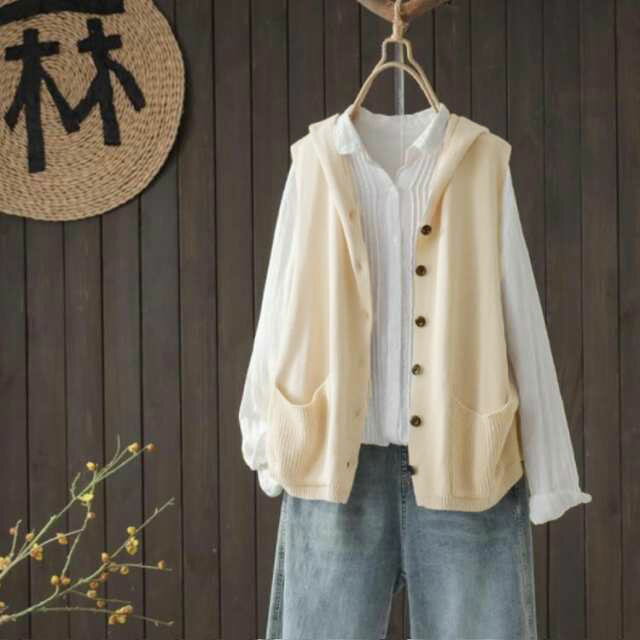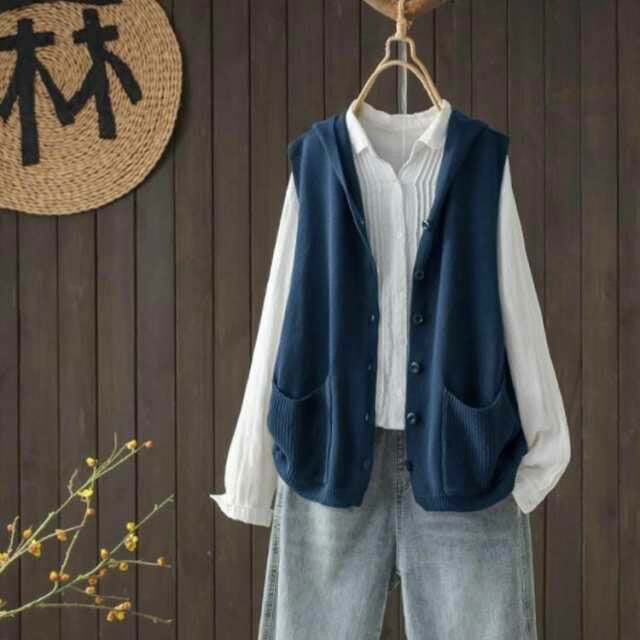 ニット ベスト レディース 春秋 フード付き ニットベスト 前開き 春ベスト おしゃれ ニットトップス 体型カバー ノースリーブ シンプル カジュアル レイヤード 重ね着 定番 全5色 30代 40代 50代 S M L XL 2XL 3XL