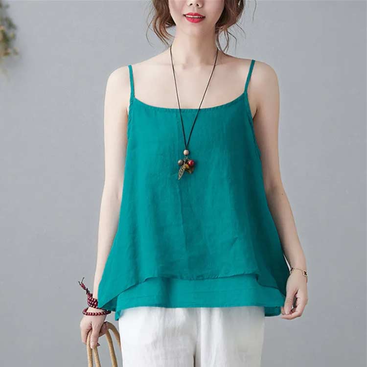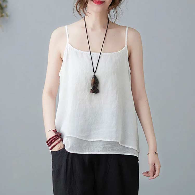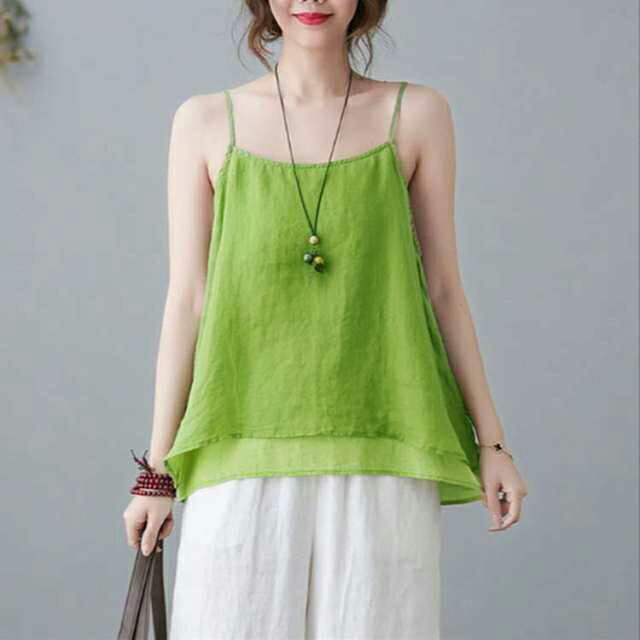 キャミソール レディース サマー キャミ コットン リネン ノースリ トップス 綿 麻 春 夏 見せキャミソール 重ね着 レイヤード インナー 二重 透けない ナチュラル 涼しげ L XL 2XL
