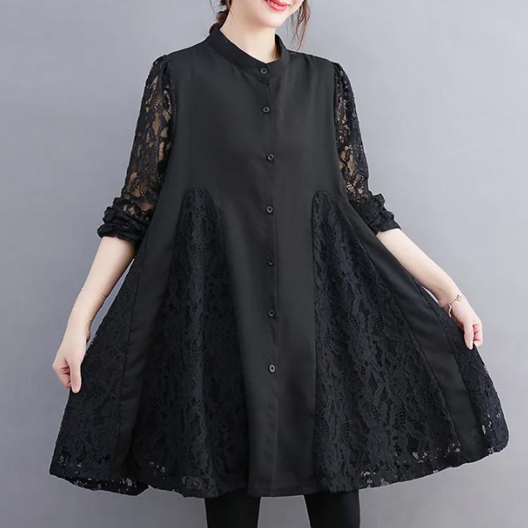 送料無料 チュニック ワンピース レディース レース きれいめ チュニックシャツ 長袖 切替かえ aライン 体型カバー 大きいサイズ 可愛い 体型カバー 着痩せ 30代 40代