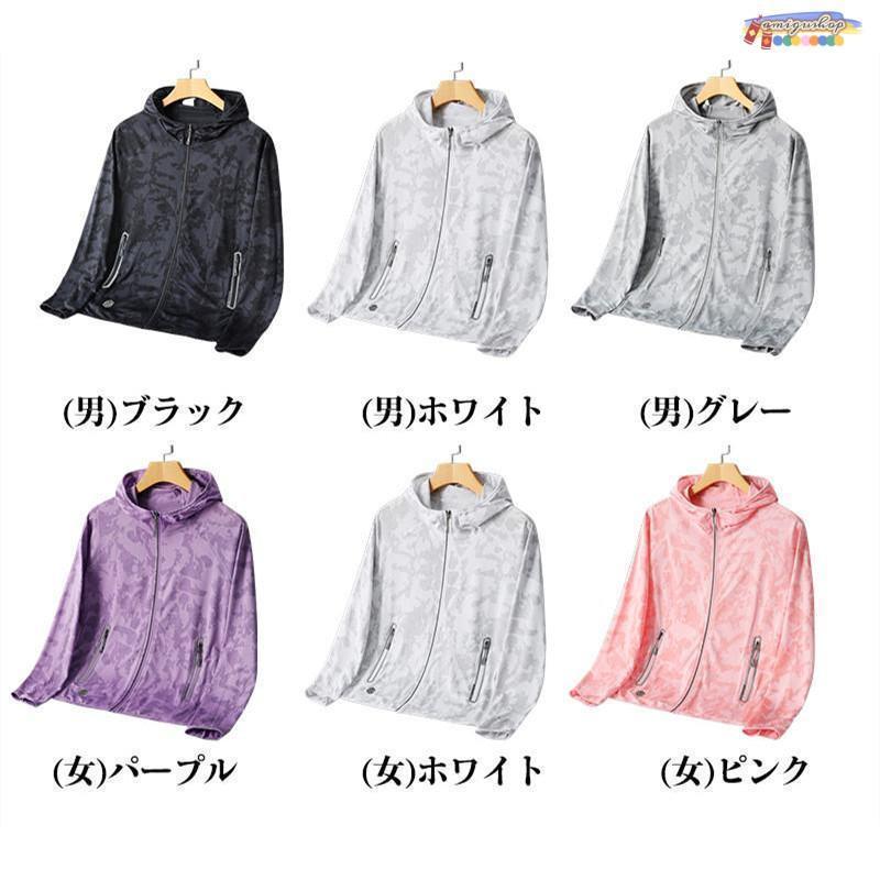 ラッシュガード メンズ レディース UVカット 日焼け防止 冷感素材 ジップアップ フード付き 通気性 迷彩柄 ペアルック 薄手 速乾 パーカー 夏服
