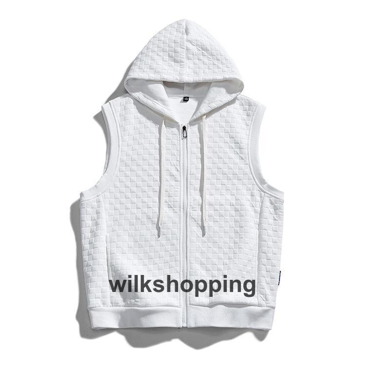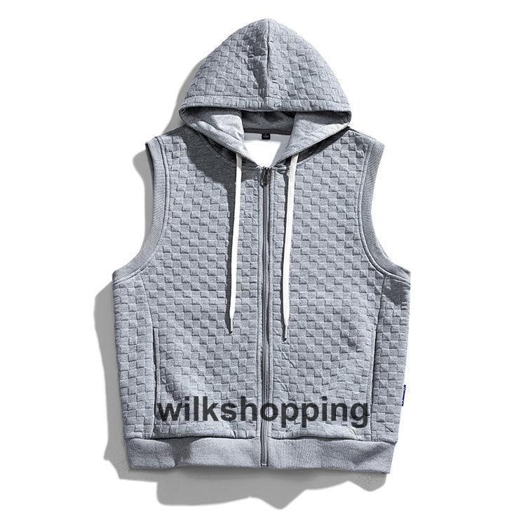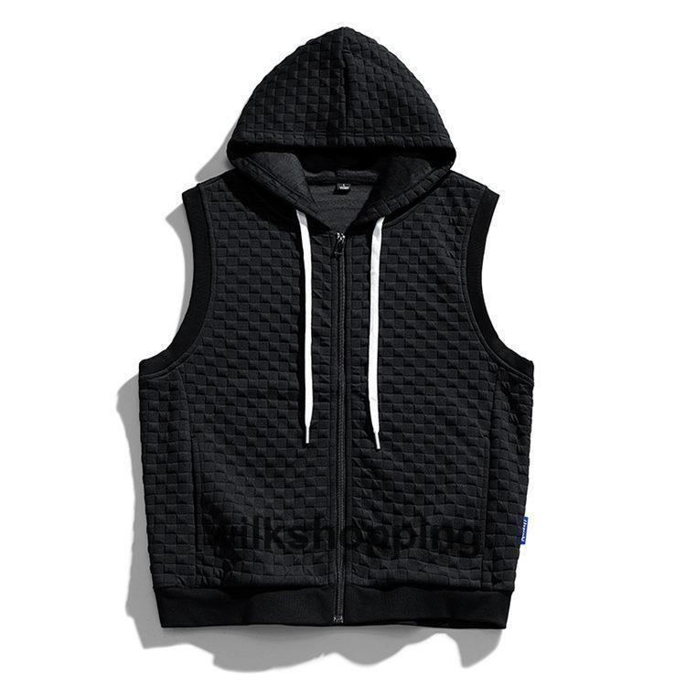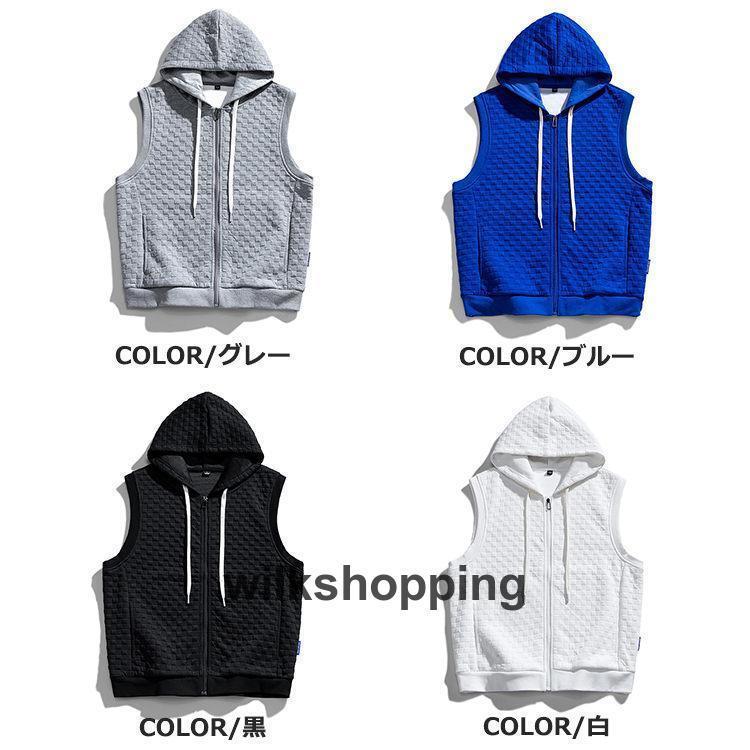 パーカー メンズ ノースリーブ 無地パーカー ジップアップパーカー 袖なし エンボス加工 トップス フード付き おしゃれ 秋服
