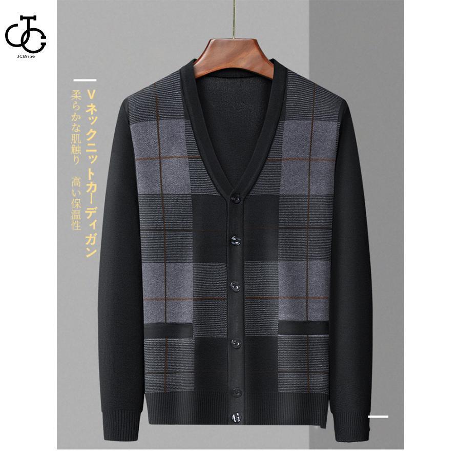 ニット カーディガン メンズ 前開き 長袖 フロントボタン Vネック トップス ゆったり 大きいサイズ ビジネス カジュアル シンプル 無地 ポケット付き 紳士服
