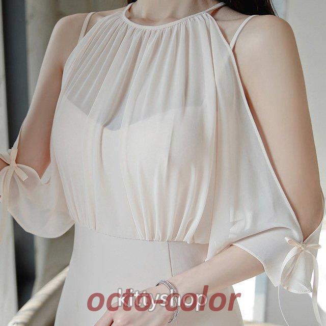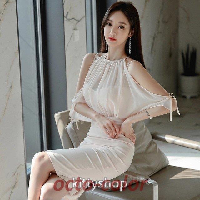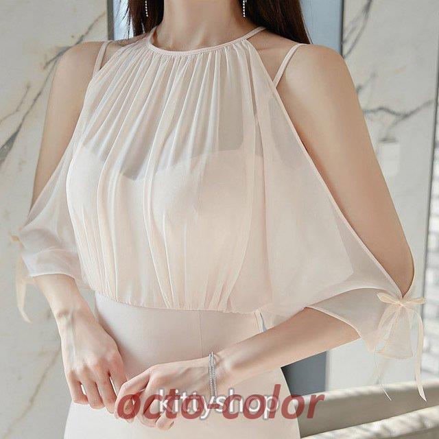 オフショルダー タイトワンピース 韓国風 パーティードレス ワンピース オシャレ ホルターネック 膝丈ワンピース 二次会ドレス お呼ばれドレス キャバドレス