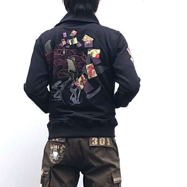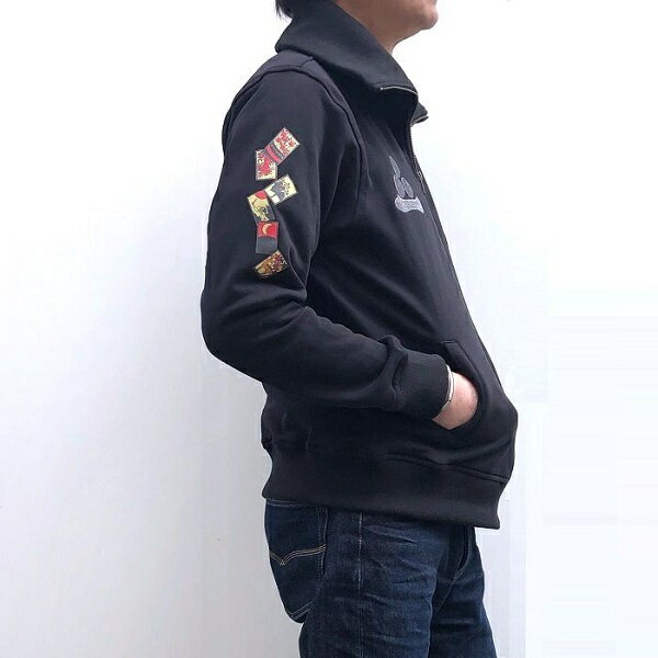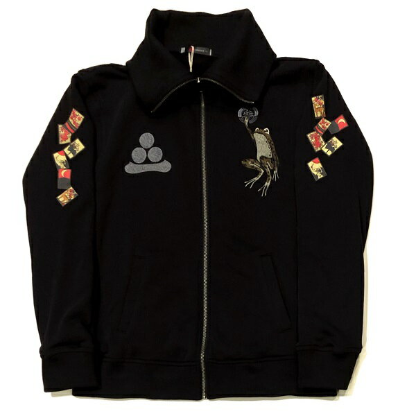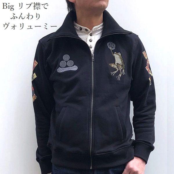 参丸一 サンマルイチ 花札 やせんぼ蛙(カエル) Bigリブ襟 ジャージジャケット マイクロフリース裏起毛 保温Up [SOP-58001/Black]M L XXL(3L) 大きいサイズ 胸囲 120cm 以上 軽い〜羽織物!送料無料 スプリング ギフト♪