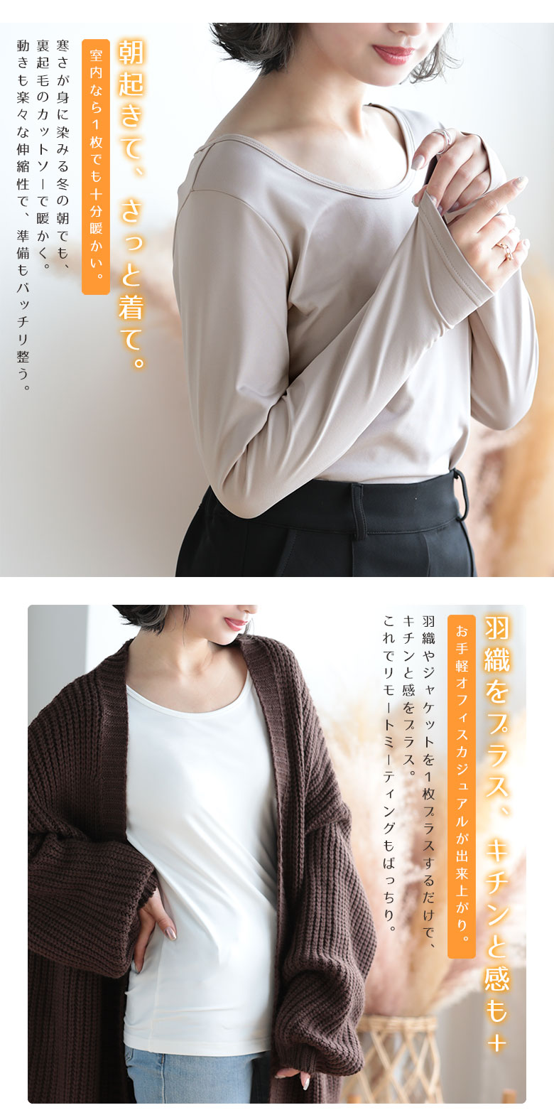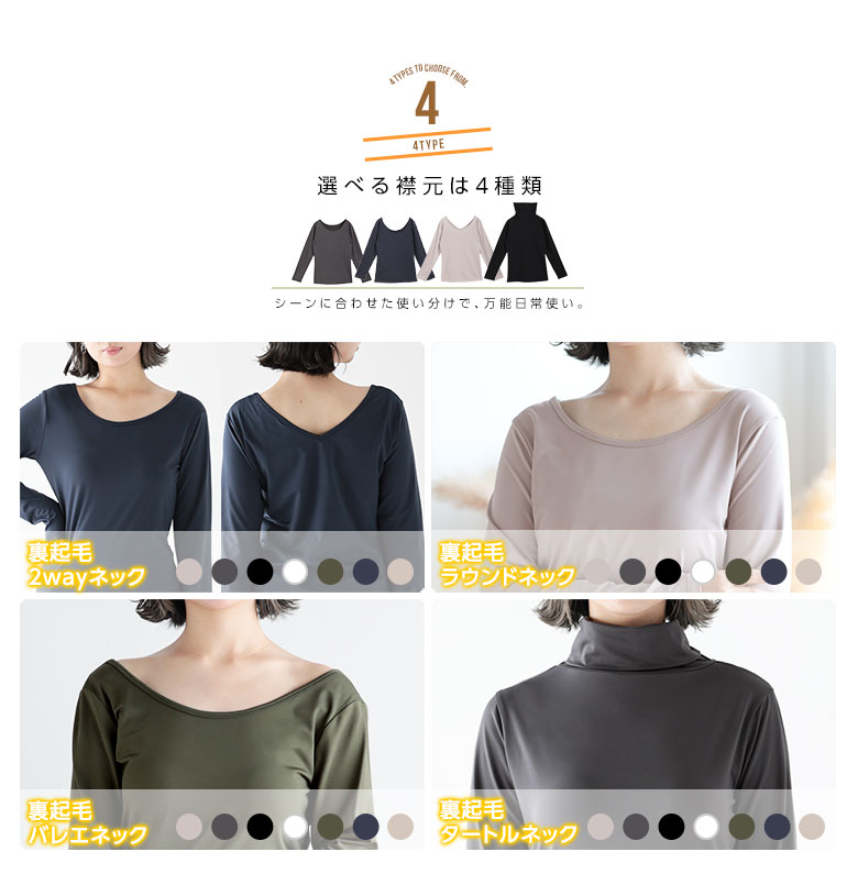 【1点680円!クーポン&3点購入で】楽天1位!裏起毛 カットソー 【4type/7colors】暖か 裏起毛カットソー タートルネック 2Wayネック バレエネックラウンドネック トップス 裏起毛 暖か レディース インナー 長袖 [s2]