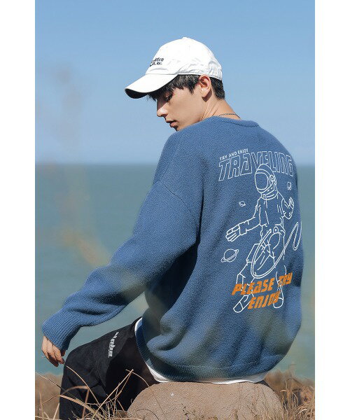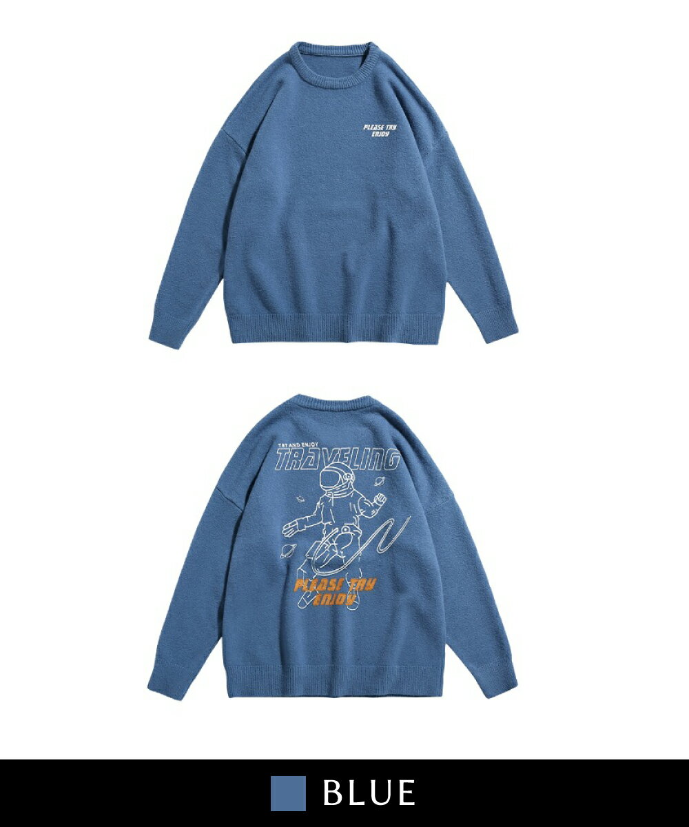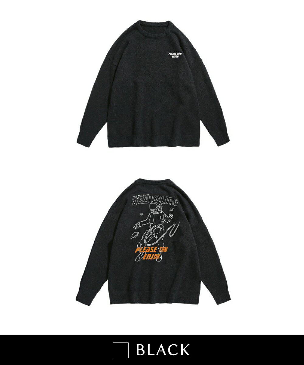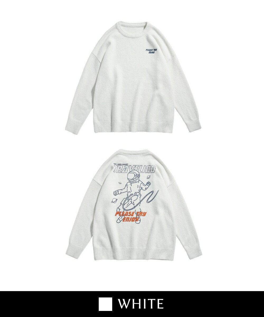 【OUTLET★特別価格】スウェット風 ニット メンズ レディース セーター お揃い 服 冬 秋 ビッグシルエット カップル ペアルック オーバーサイズ ユニセックス 韓国ライク おそろ オルチャン 宇宙飛行士 ストリート【HOOK】