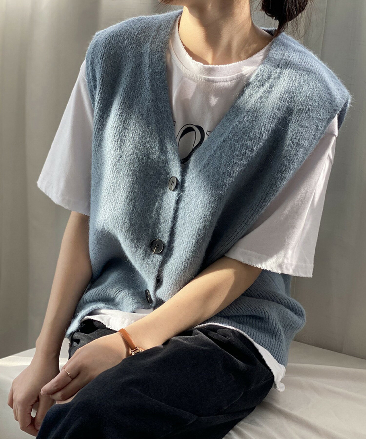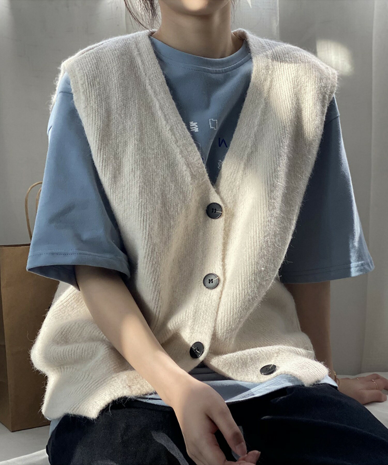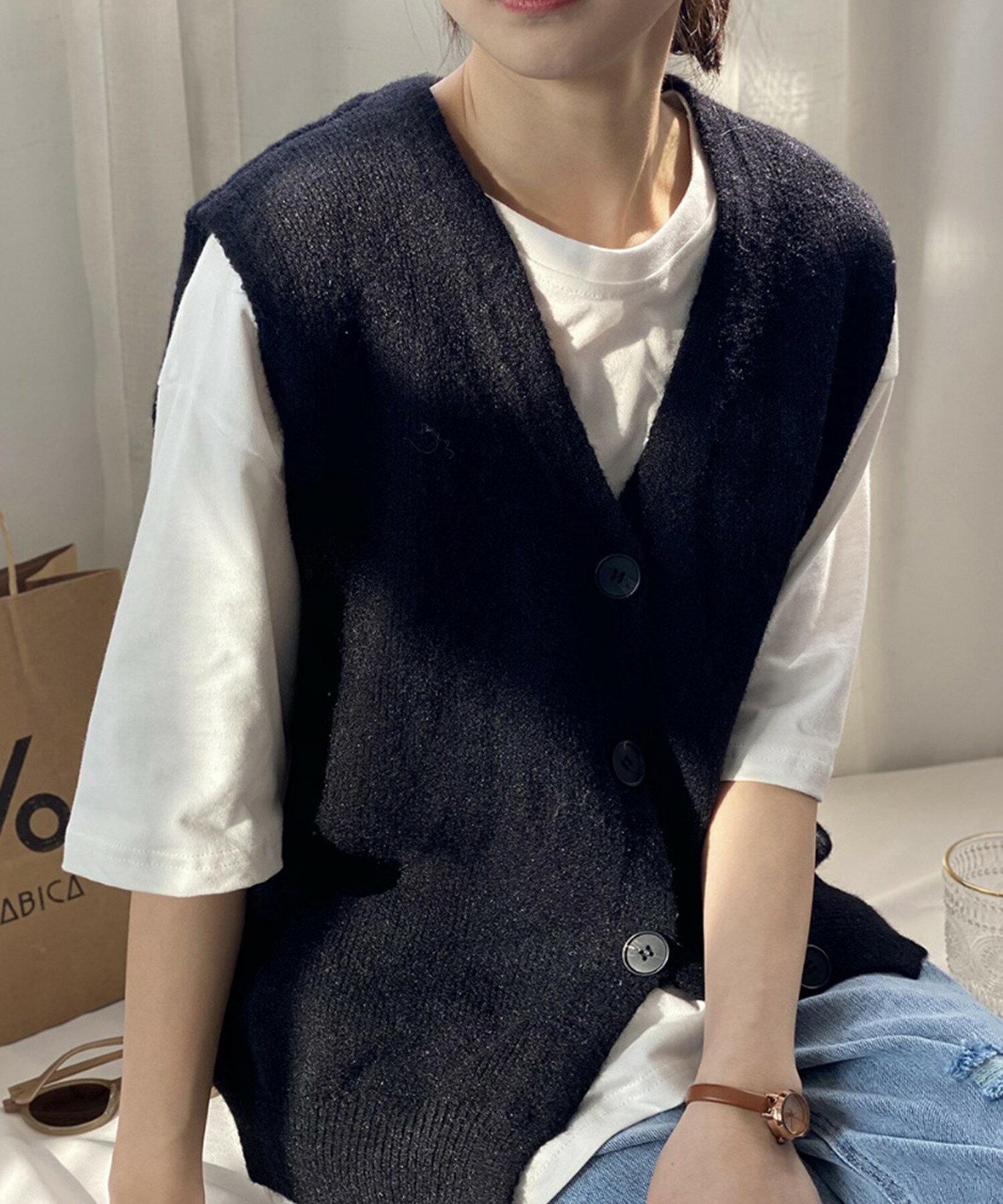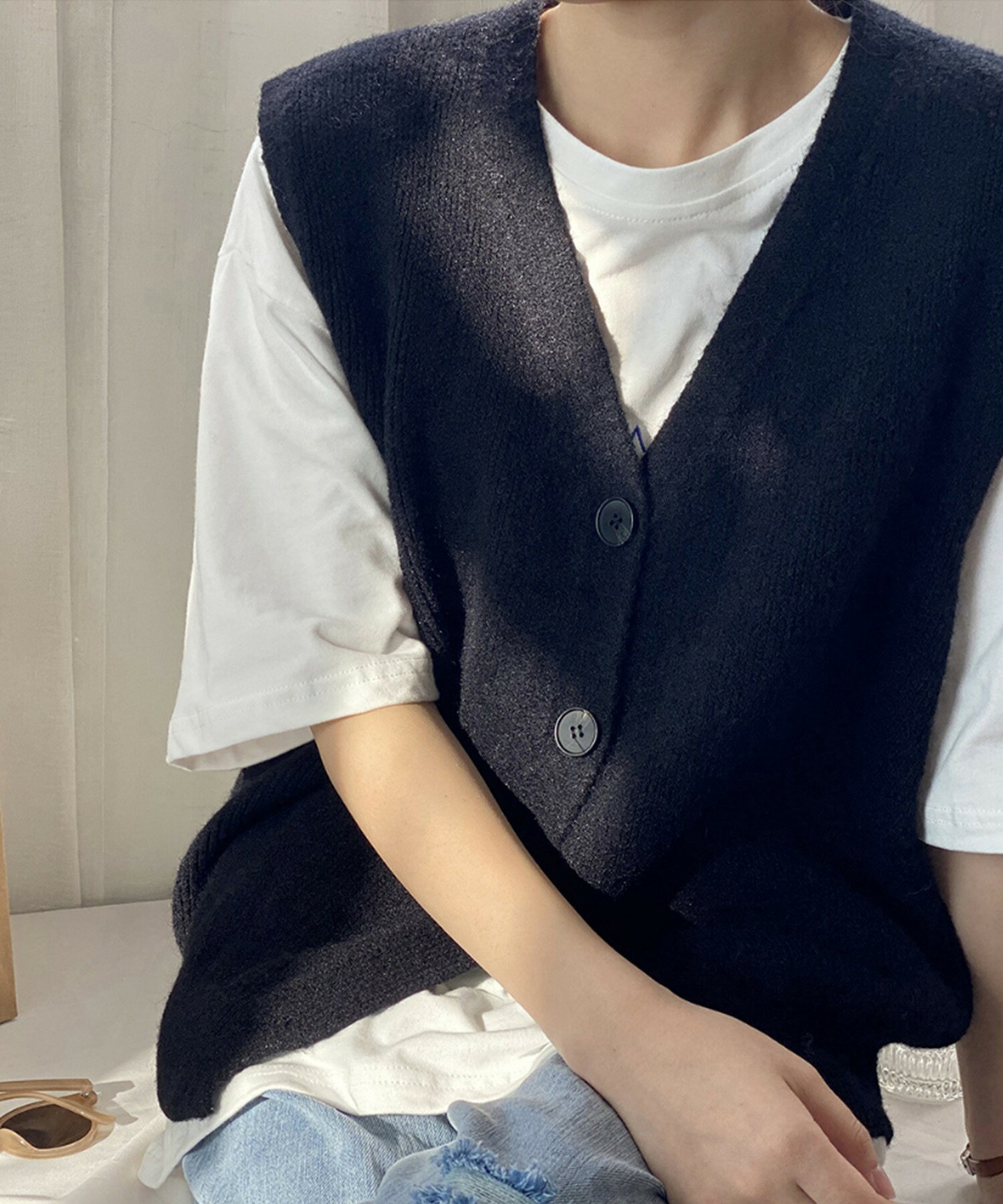 ベスト レディース 春 秋 前開きベスト ニットベスト 韓国 ライク オルチャン ファッション トップス ノースリーブ 春 夏 秋 冬 ロングシーズン ウール混 【ロングシーズン着られる前開きベスト】