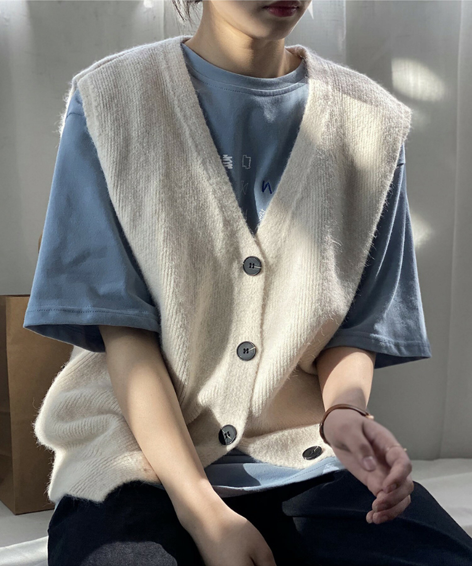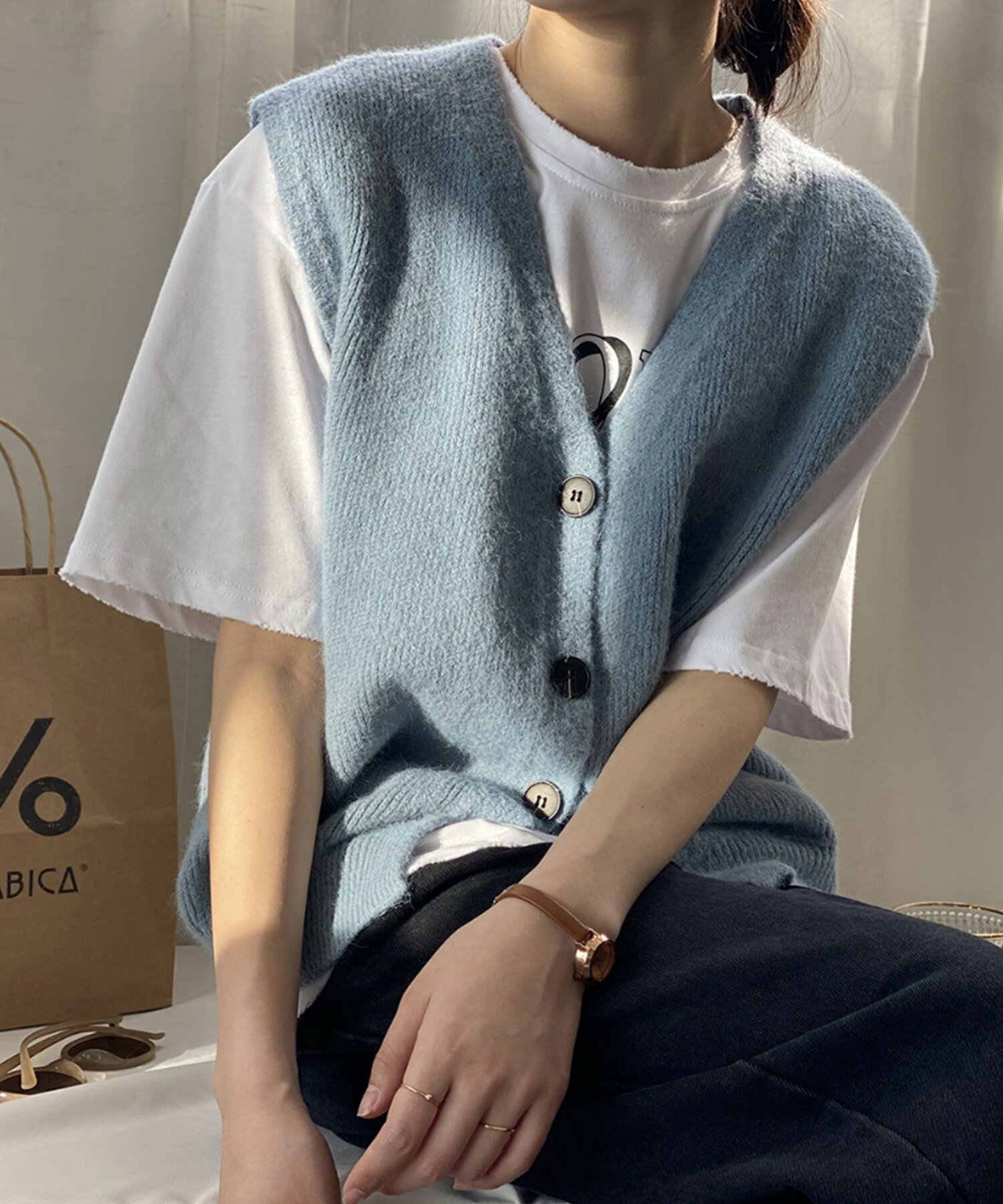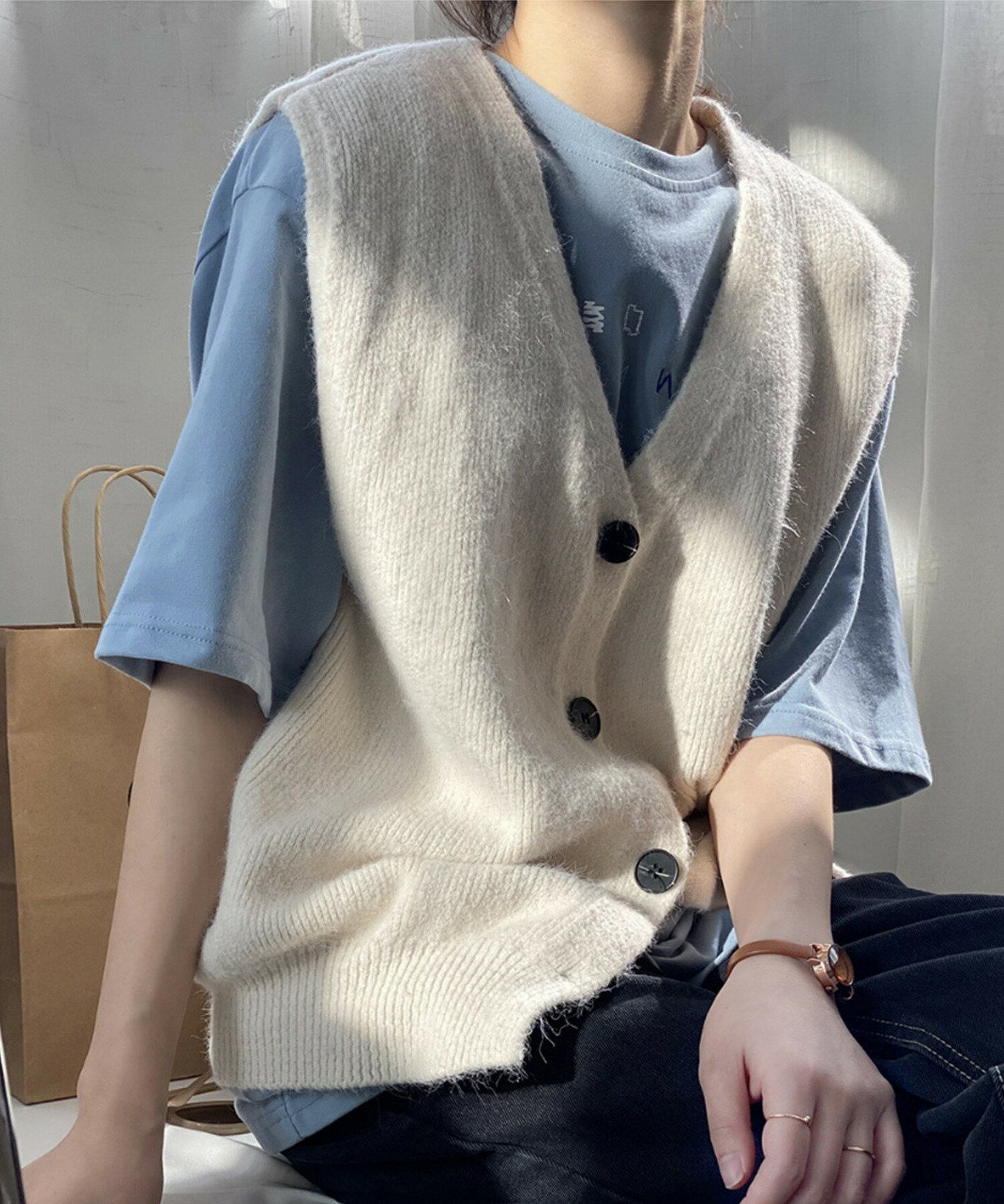 ベスト レディース 春 秋 前開きベスト ニットベスト 韓国 ライク オルチャン ファッション トップス ノースリーブ 春 夏 秋 冬 ロングシーズン ウール混 【ロングシーズン着られる前開きベスト】