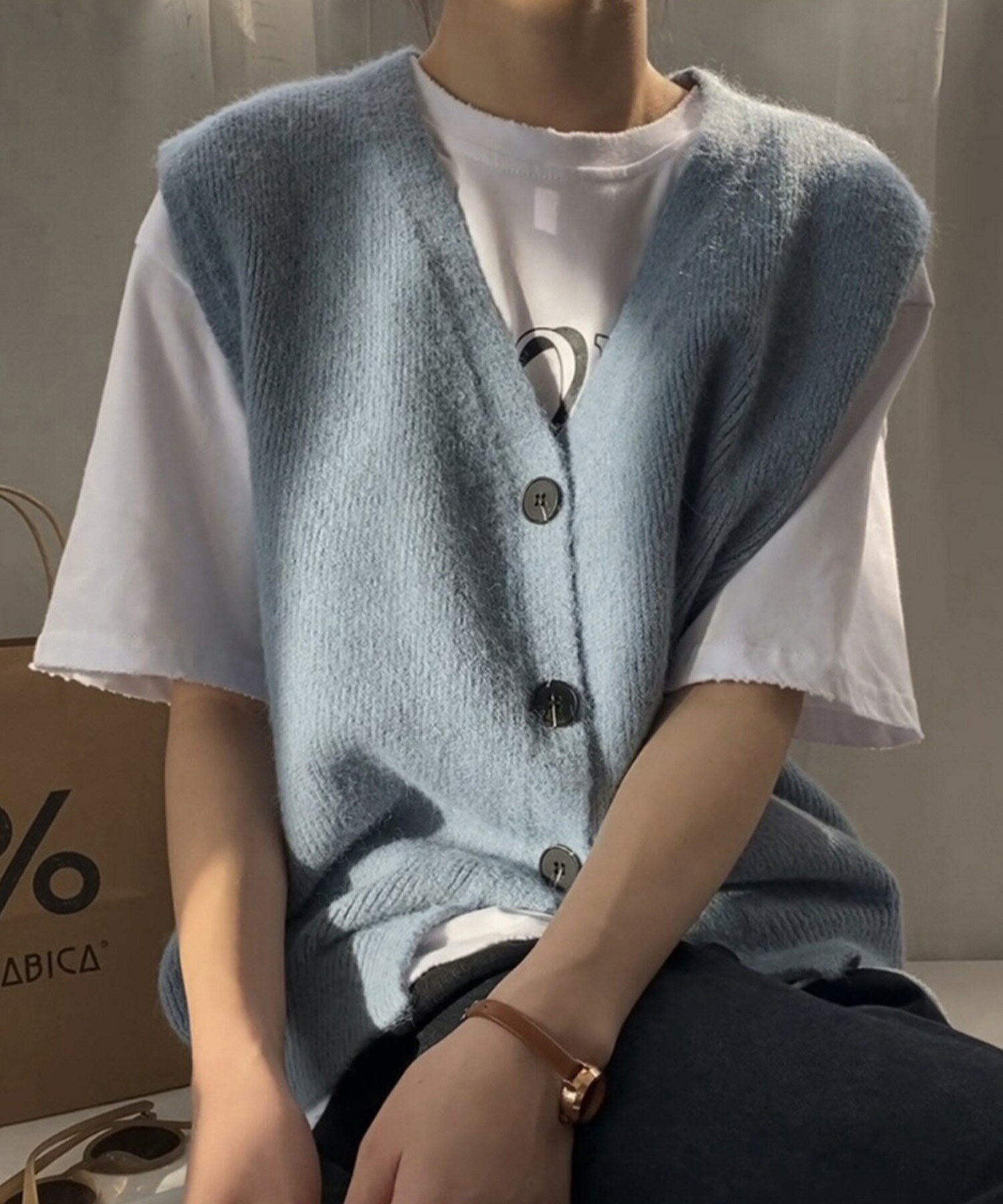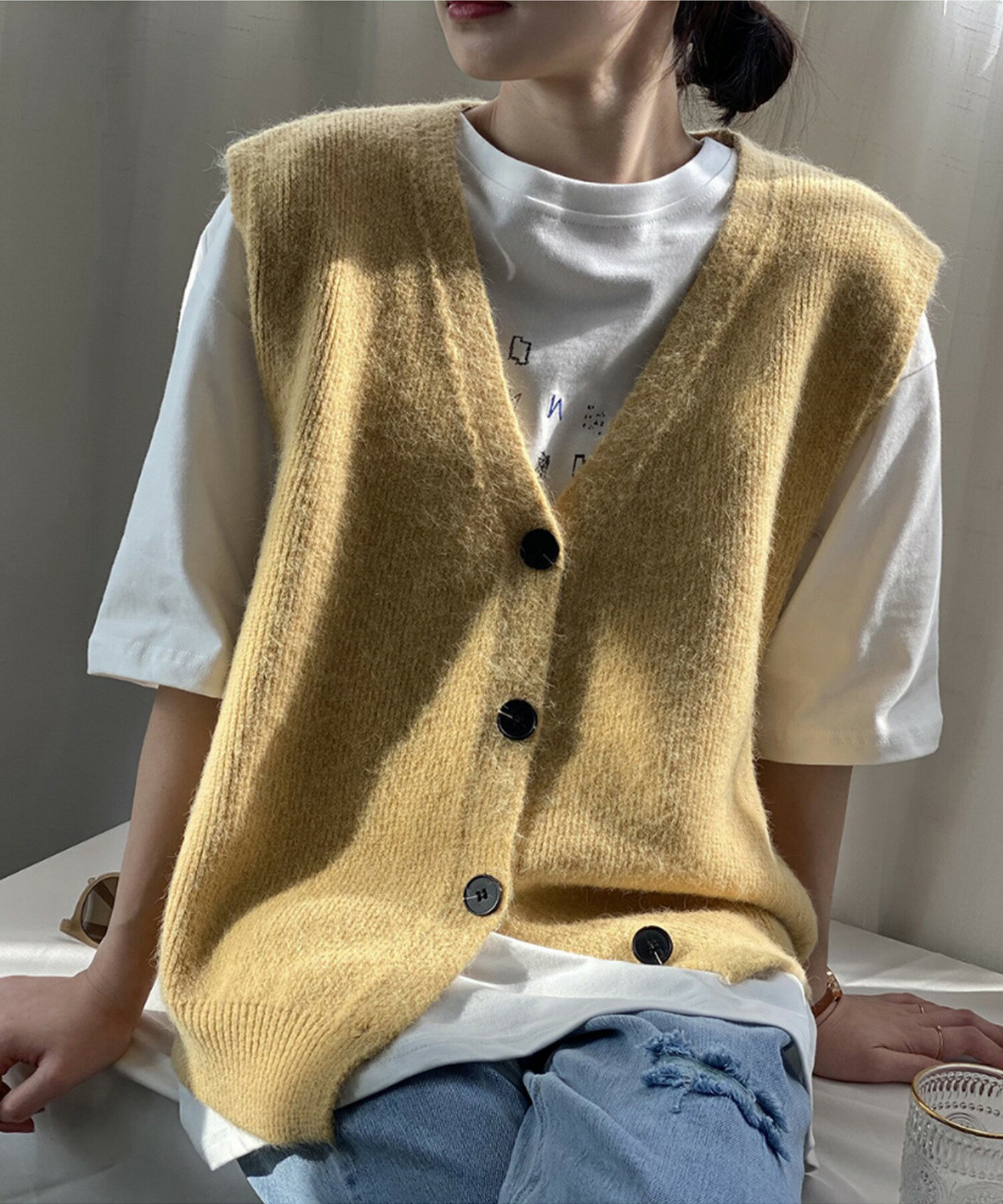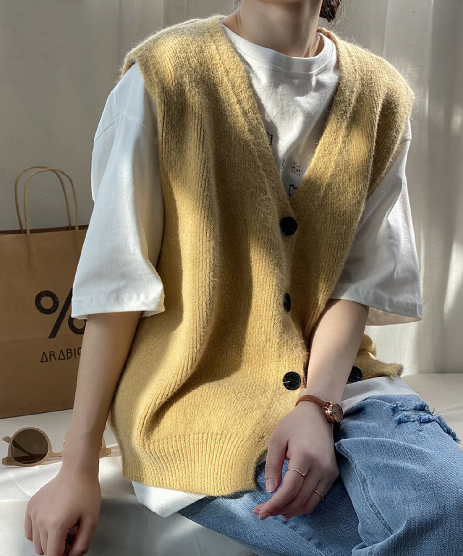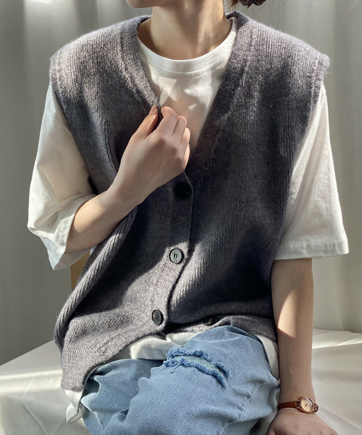 ベスト レディース 春 秋 前開きベスト ニットベスト 韓国 ライク オルチャン ファッション トップス ノースリーブ 春 夏 秋 冬 ロングシーズン ウール混 【ロングシーズン着られる前開きベスト】