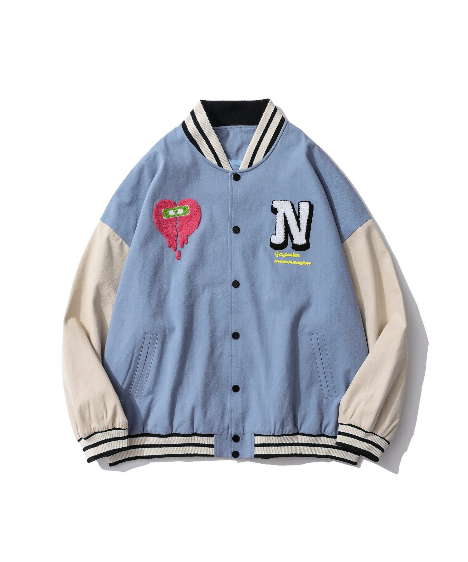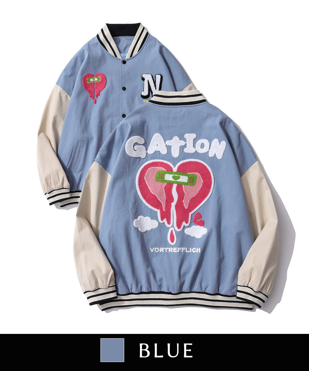 ブルゾン メンズ レディース カップル ペアルック スタジャン お揃い ビッグシルエット オーバーサイズ ユニセックス 韓国ライク オルチャン ファッション ハート ストリート アメカジ【HOOK】