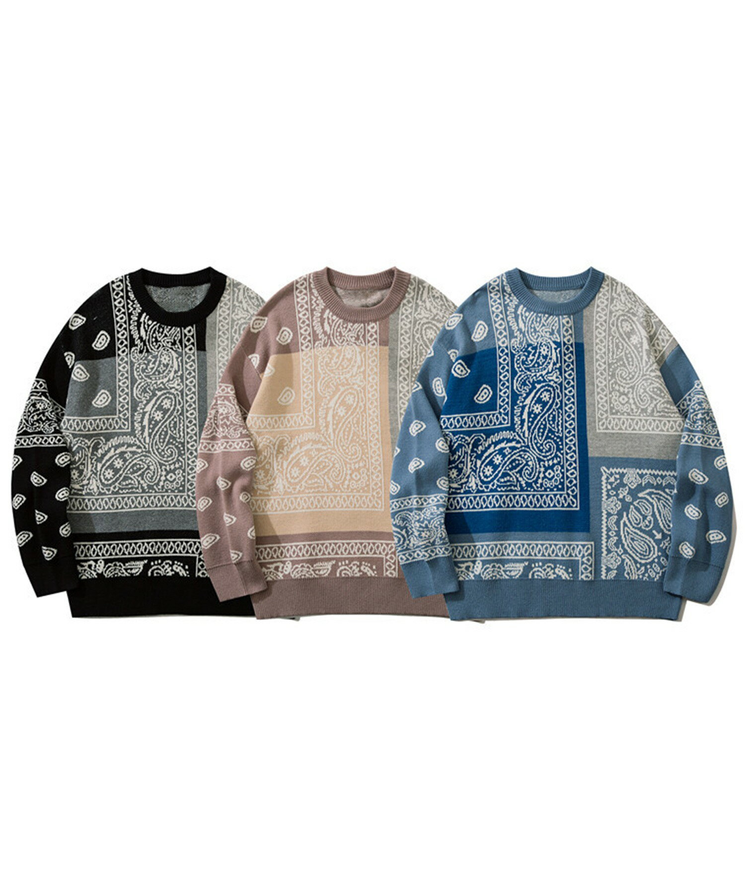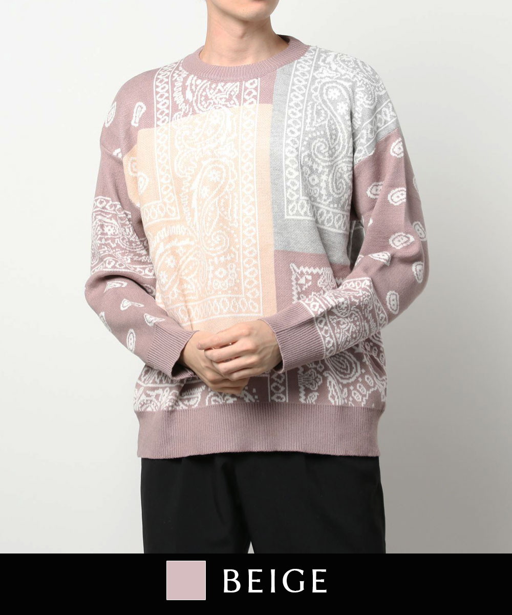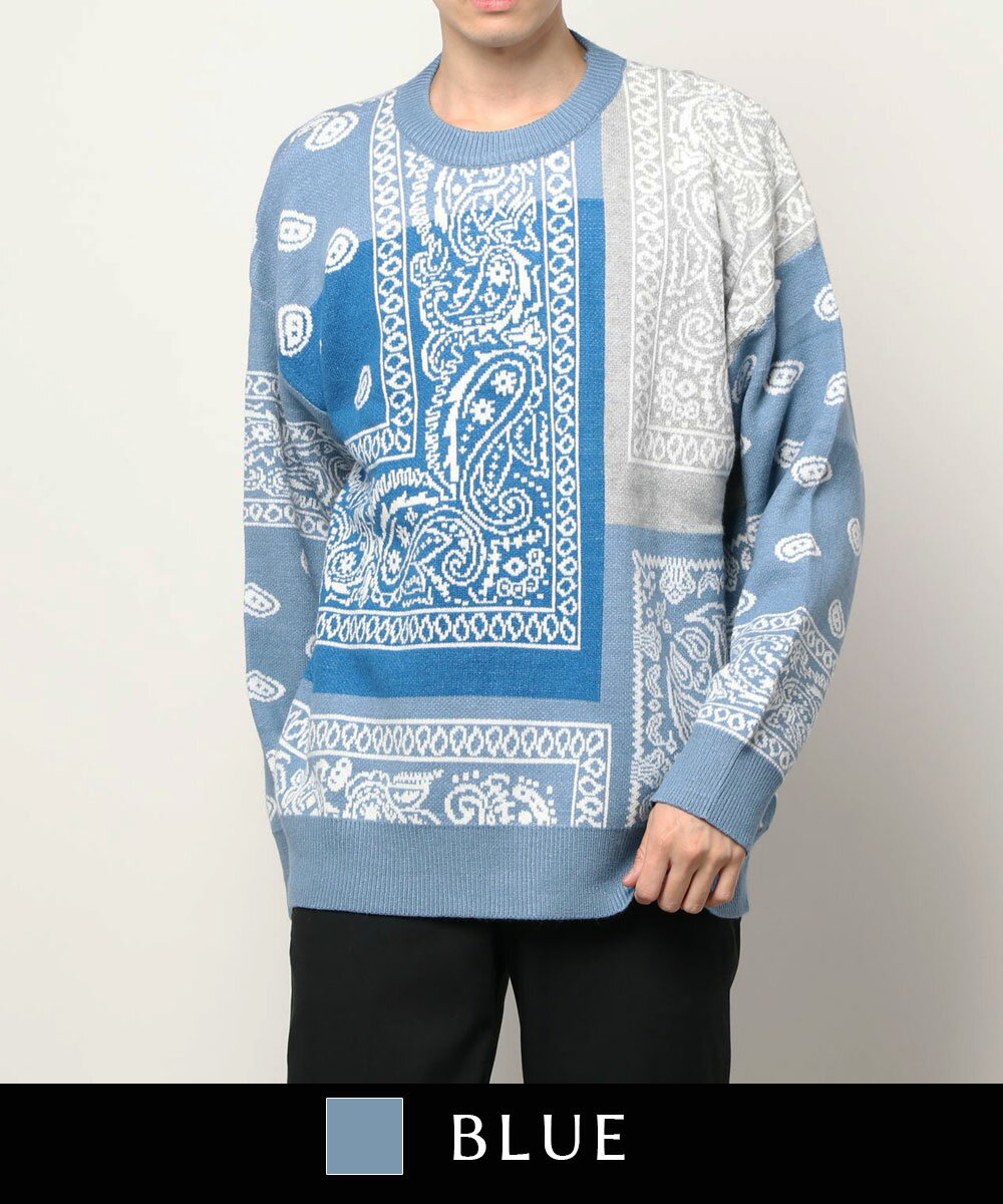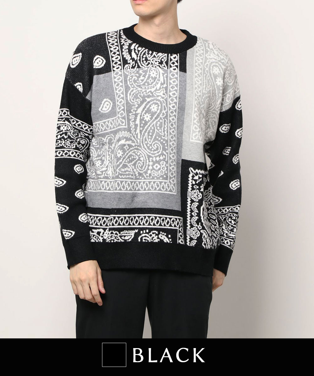 ニット メンズ セーター ペイズリー カップル ペアルック お揃い 服 冬 秋 ビッグシルエット メンズ レディース オーバーサイズ ユニセックス 韓国ライク オルチャン レトロ バンダナ柄 ストリート【HOOK】