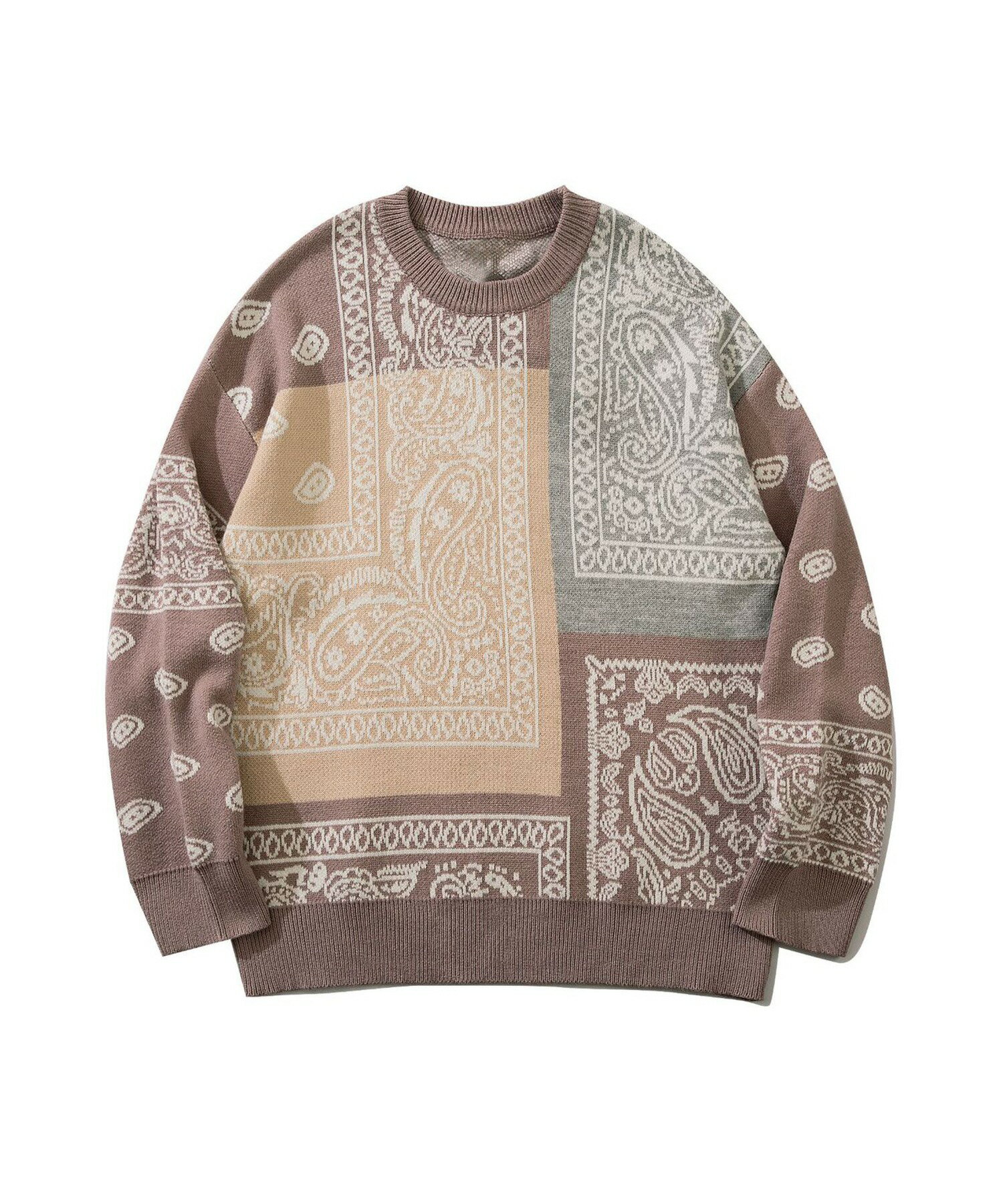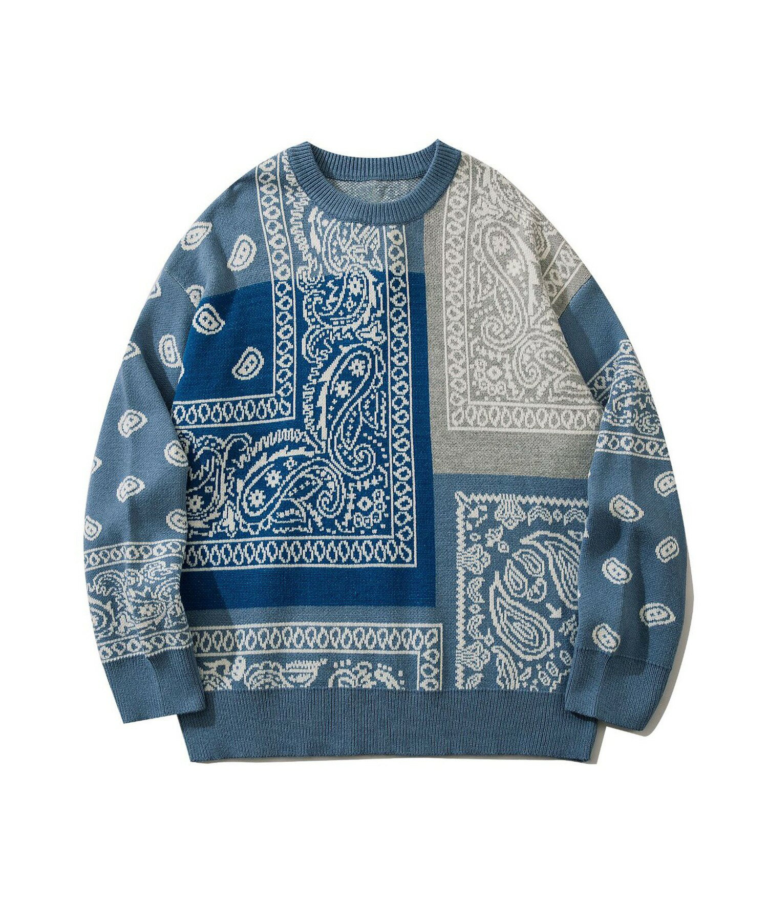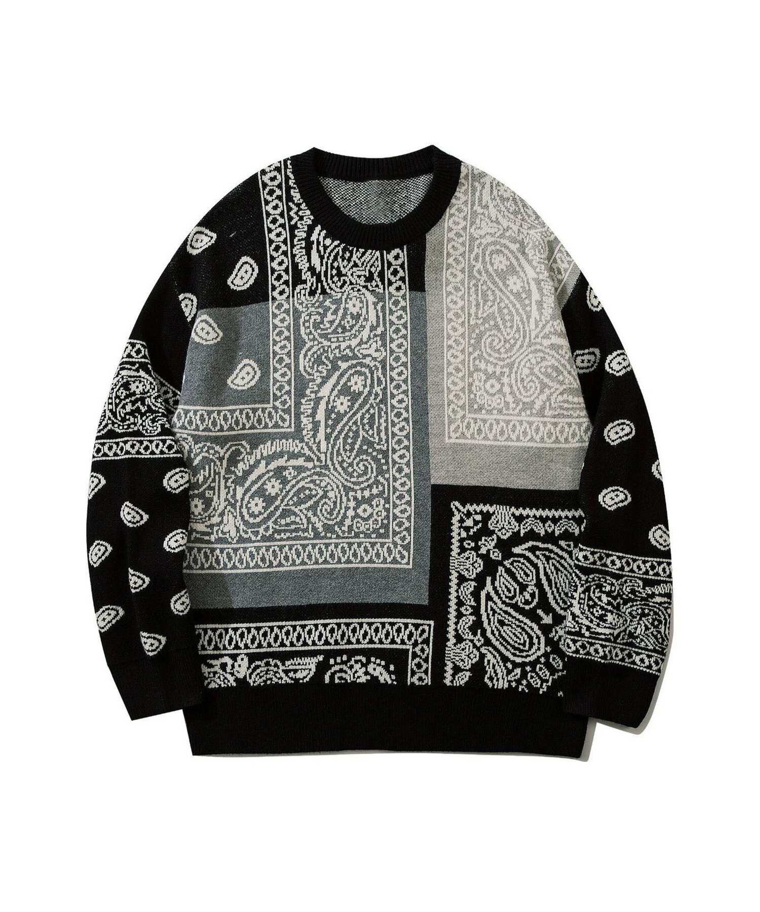 ニット メンズ セーター ペイズリー カップル ペアルック お揃い 服 冬 秋 ビッグシルエット メンズ レディース オーバーサイズ ユニセックス 韓国ライク オルチャン レトロ バンダナ柄 ストリート【HOOK】