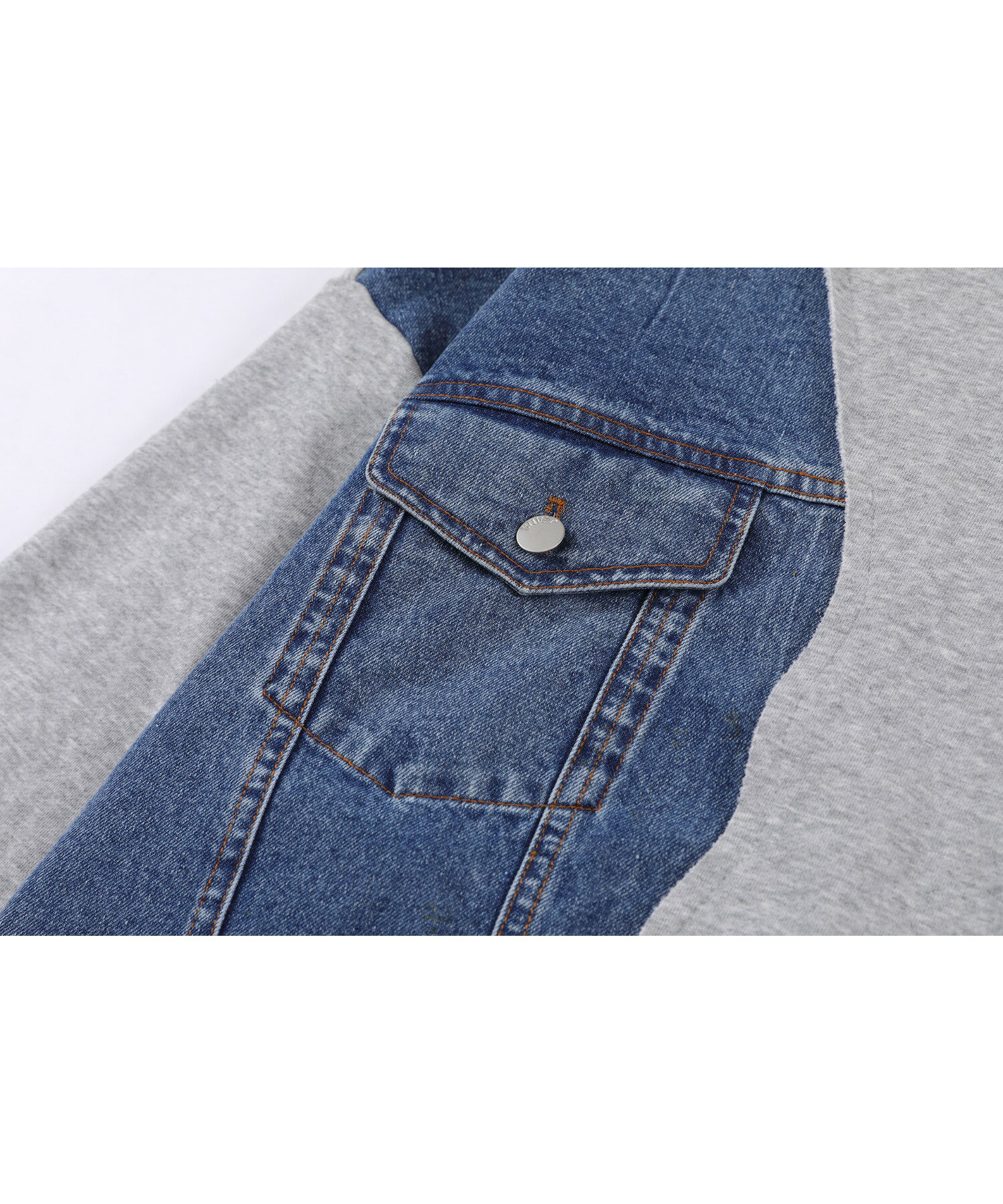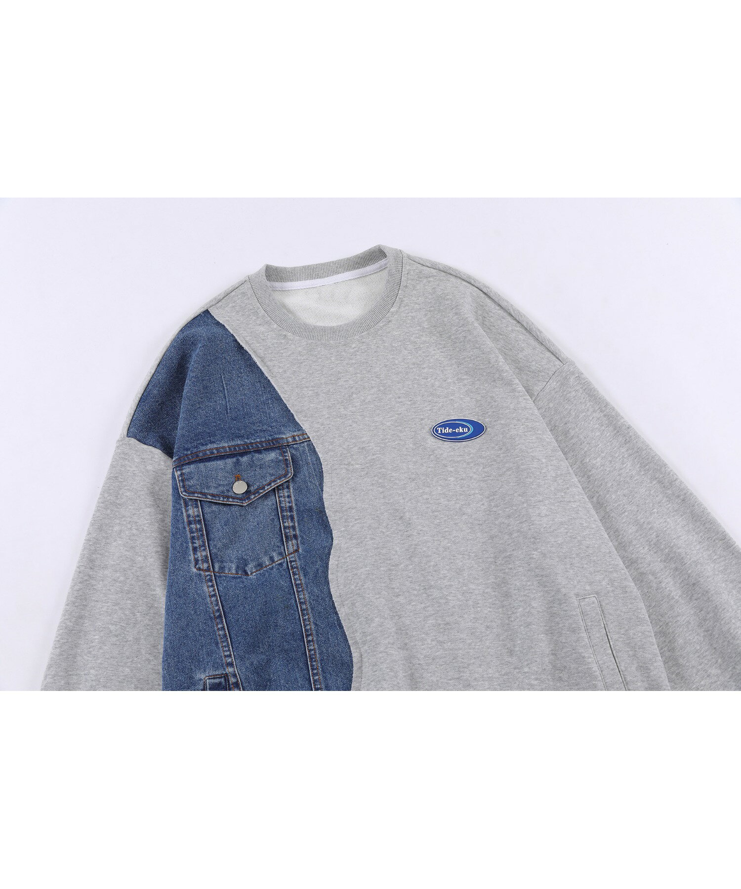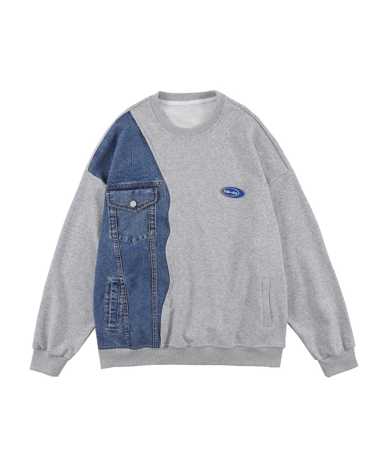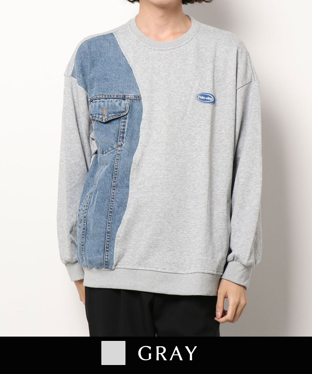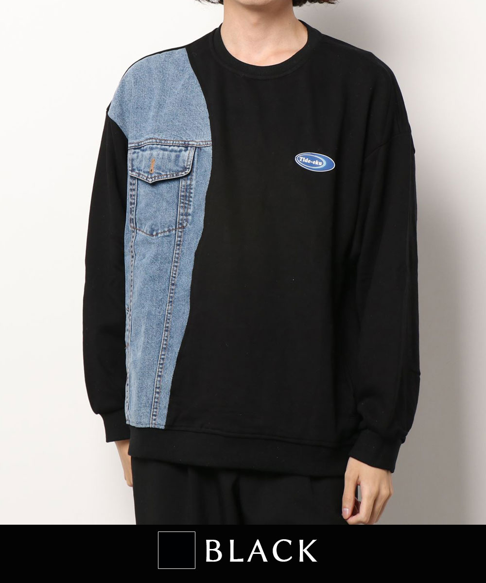 【クーポンで20%OFF!!】スウェット メンズ レディース カップル ペアルック ビッグシルエットオーバーサイズ トレーナー お揃い 服 春 秋 ユニセックス 韓国ライク オルチャン アメカジ アンティーク風 デニム切り替え【HOOK】*