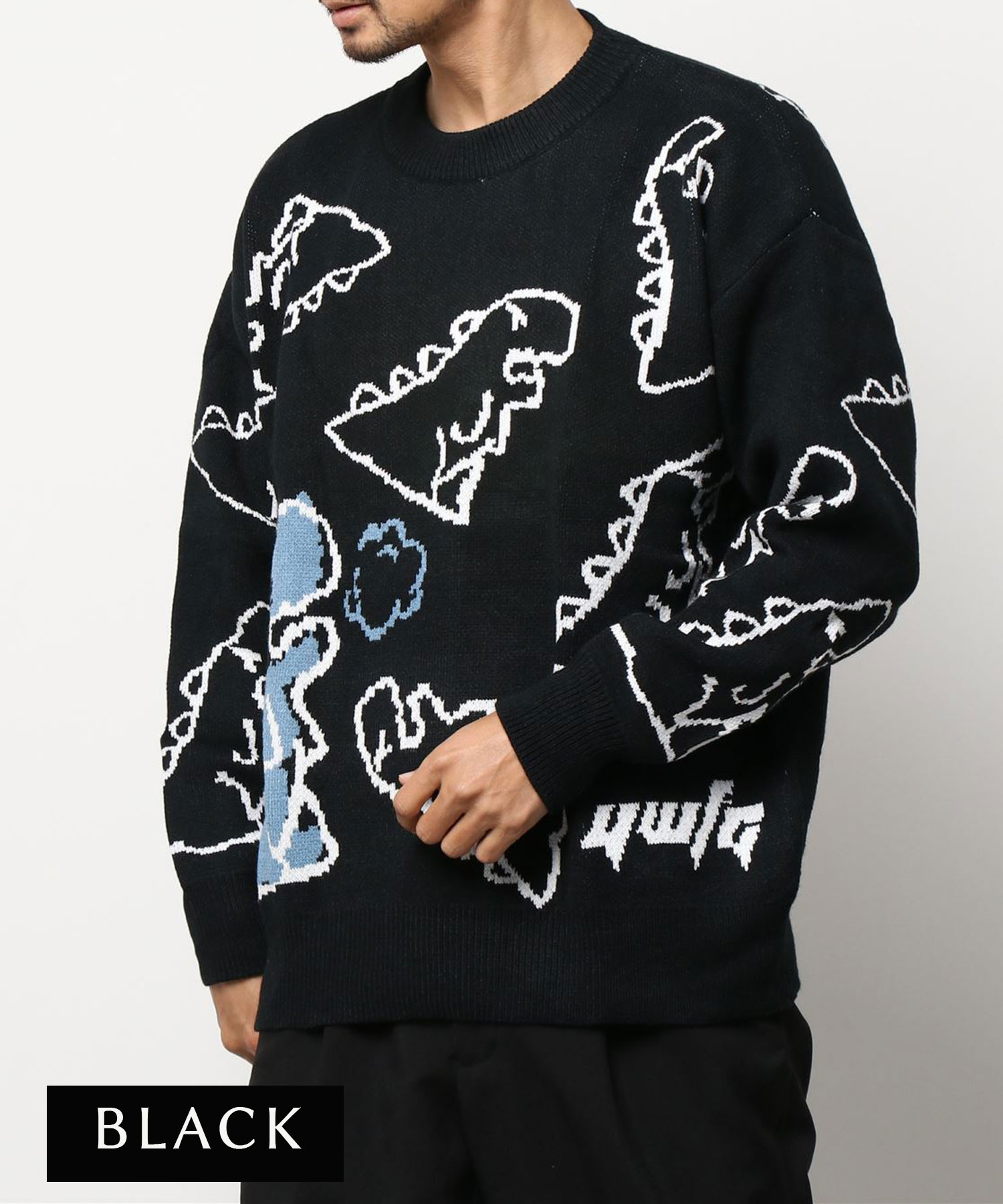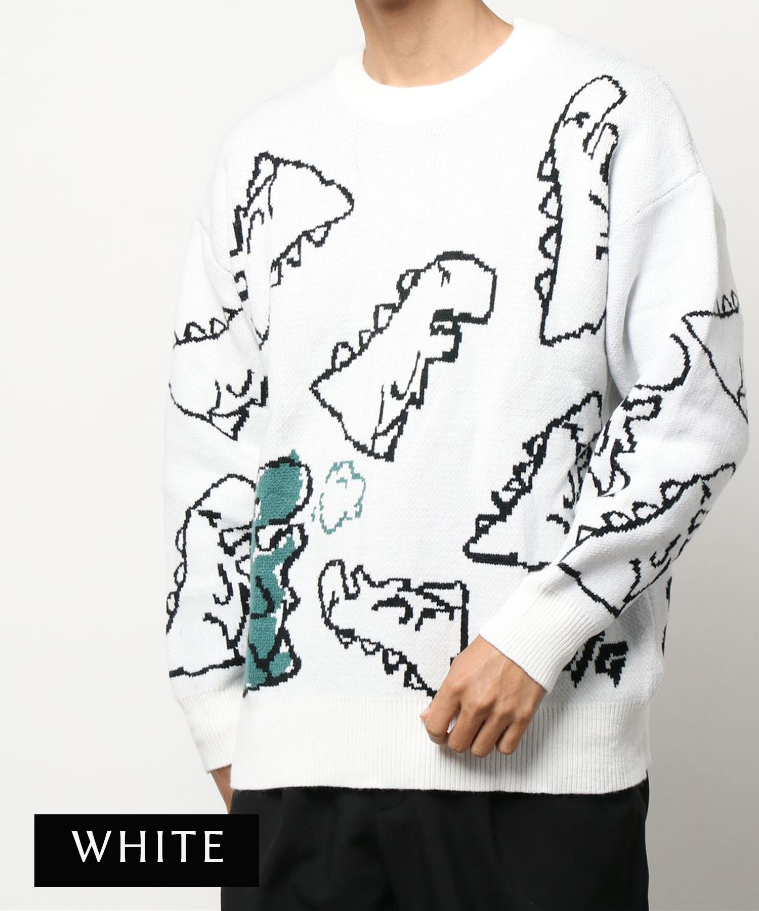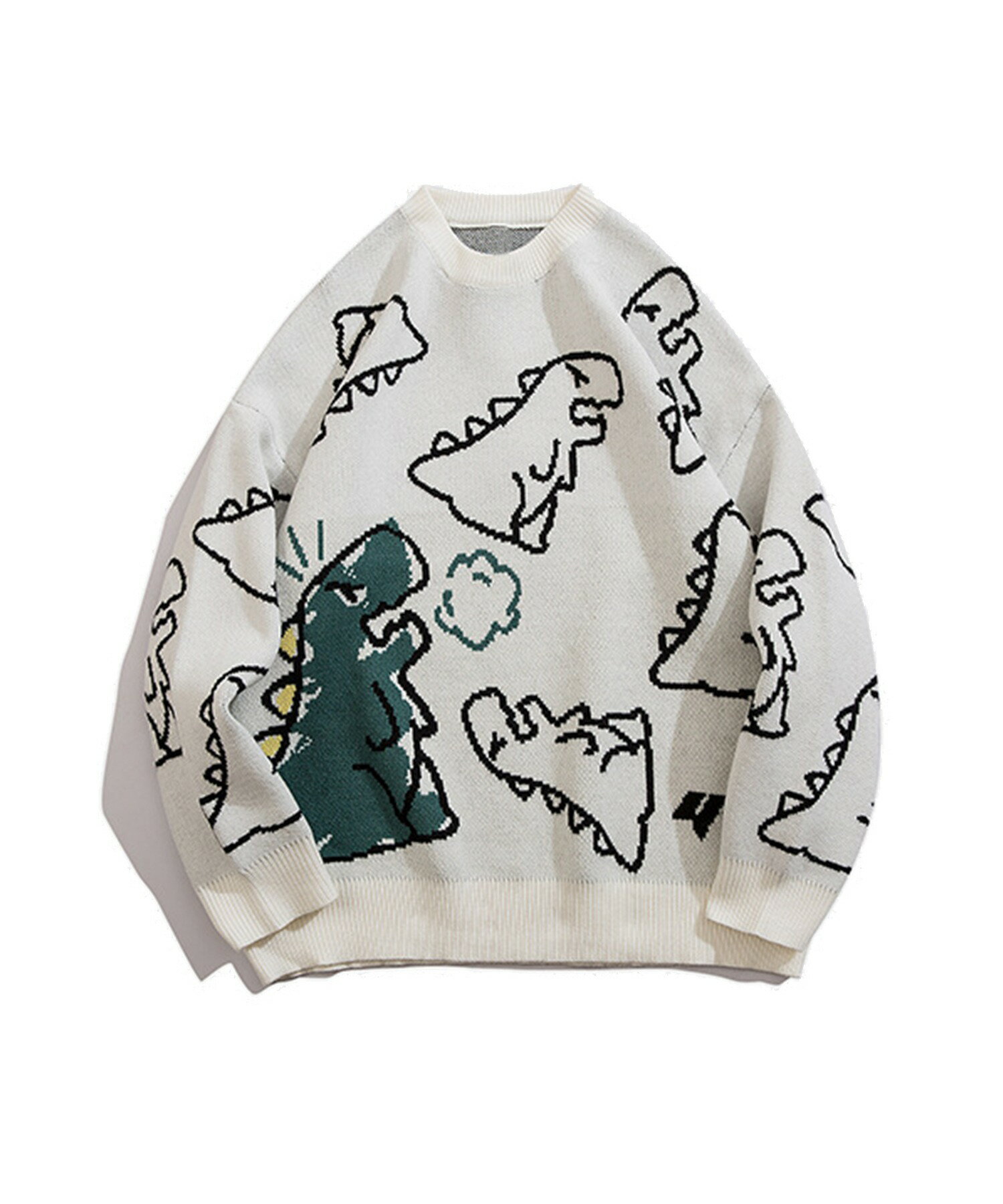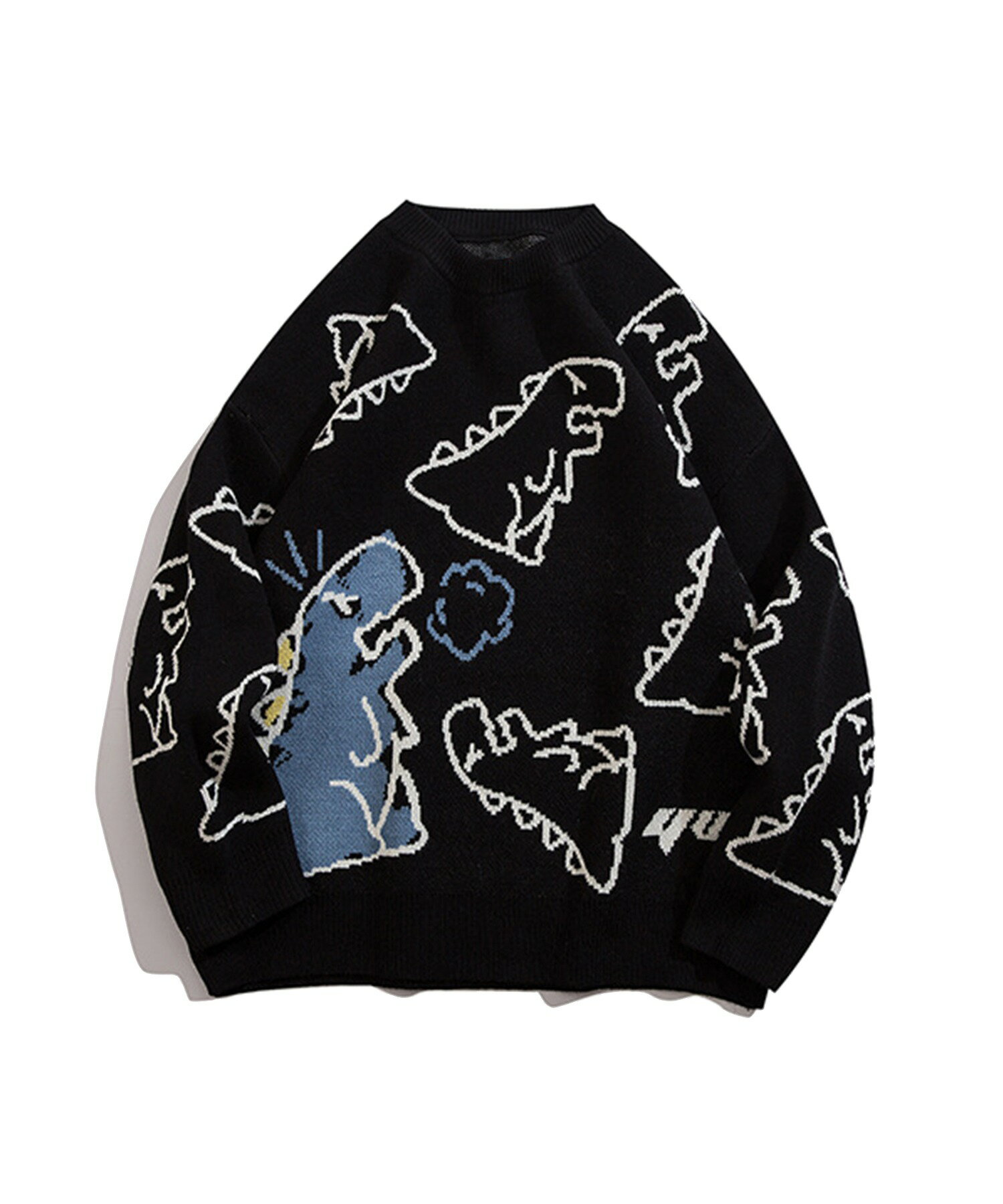 【クーポンで20%OFF!!】ニット メンズ レディース セーター カップル ペアルック お揃い 服 冬 秋 ビッグシルエットオーバーサイズ ユニセックス 韓国ライク オルチャン ファッション 恐竜イラスト ストリート【HOOK】