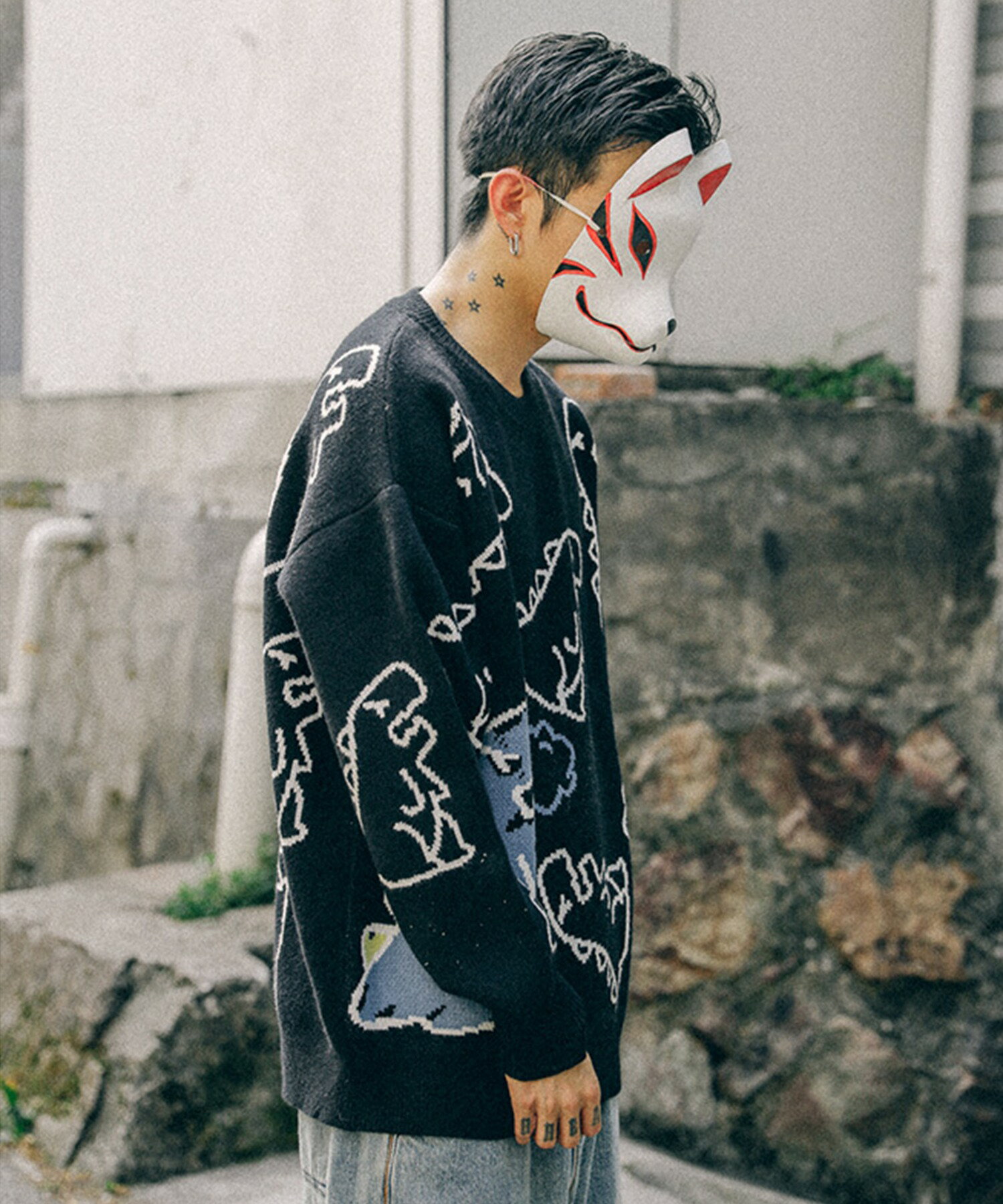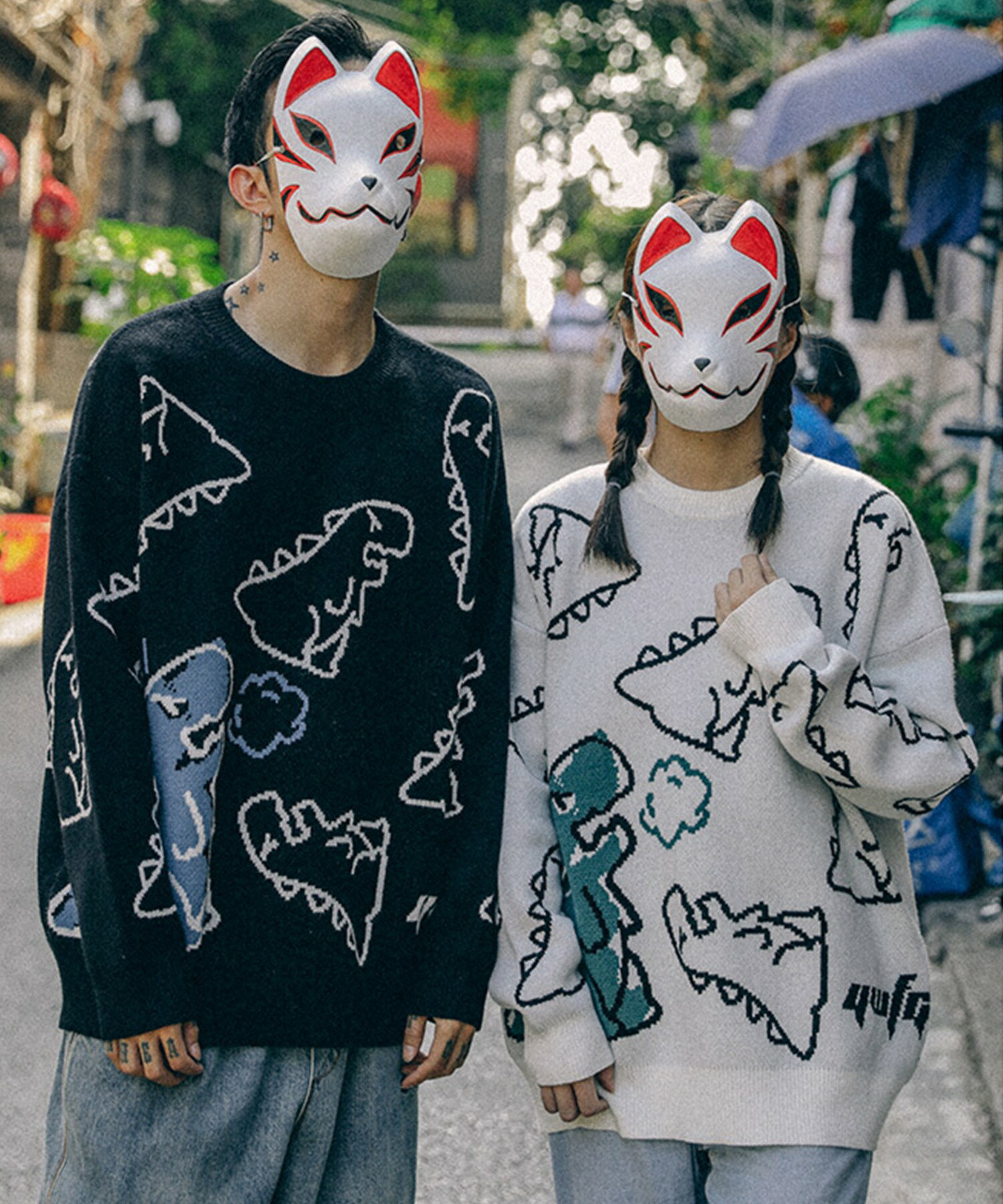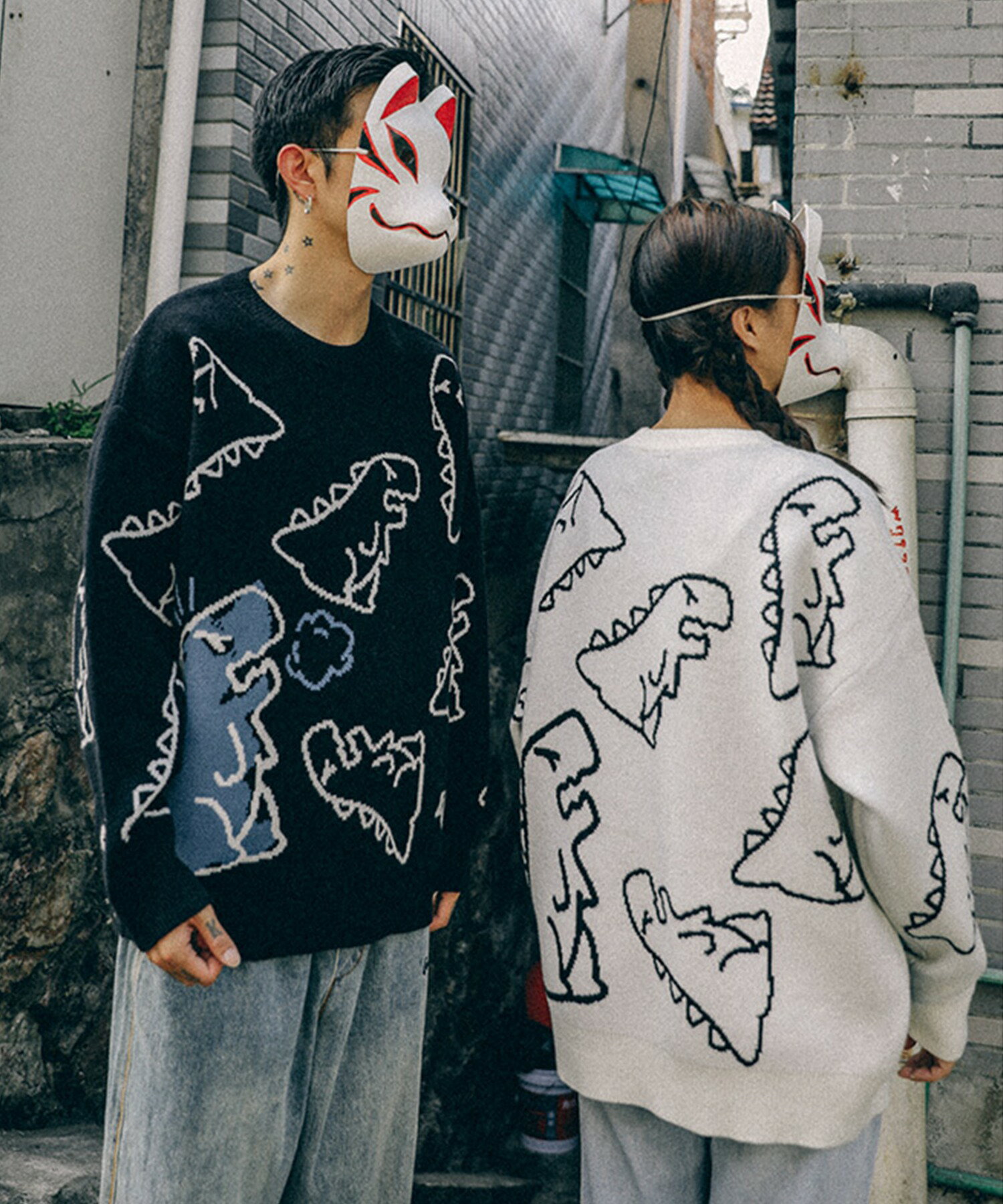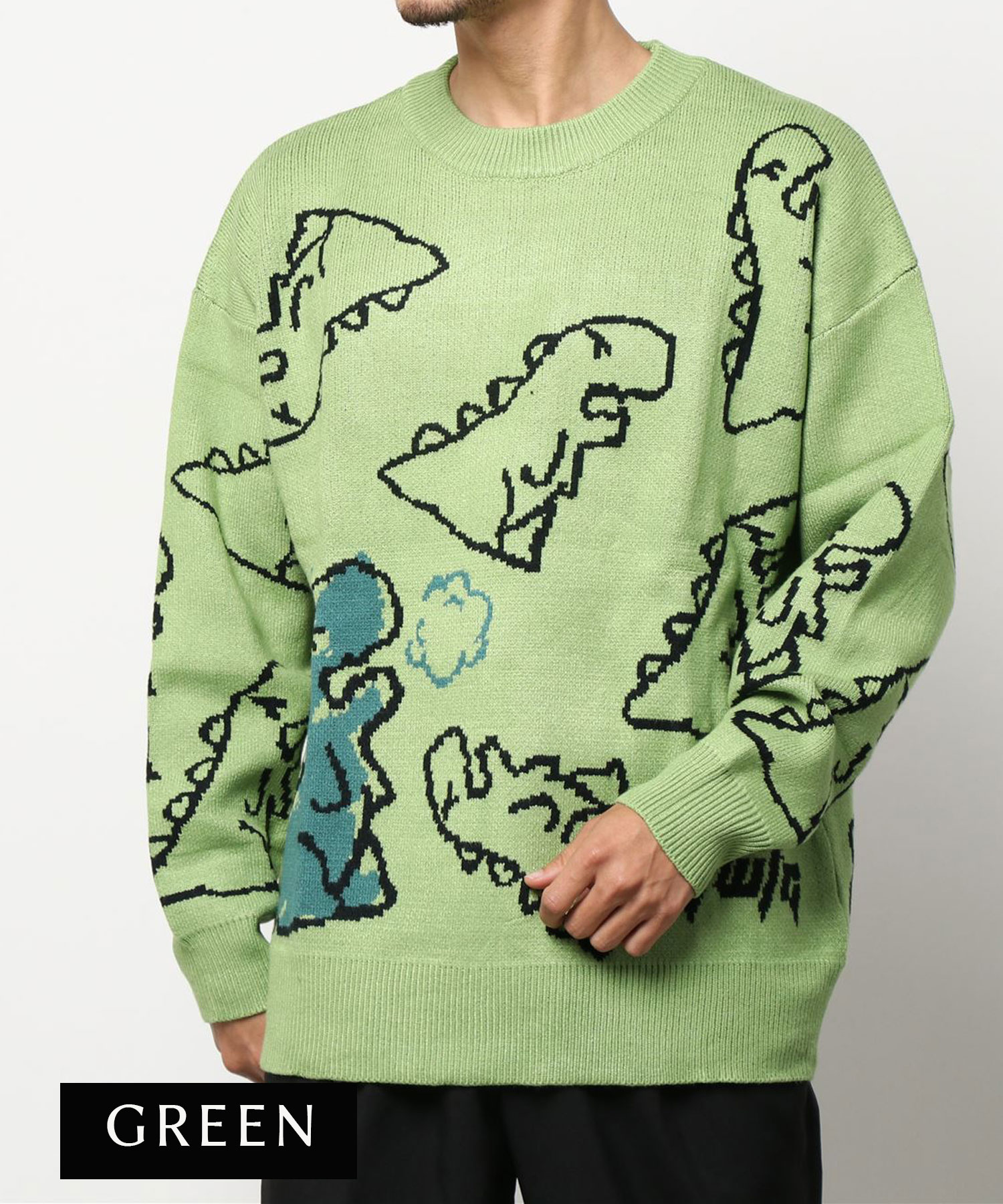 【クーポンで20%OFF!!】ニット メンズ レディース セーター カップル ペアルック お揃い 服 冬 秋 ビッグシルエットオーバーサイズ ユニセックス 韓国ライク オルチャン ファッション 恐竜イラスト ストリート【HOOK】