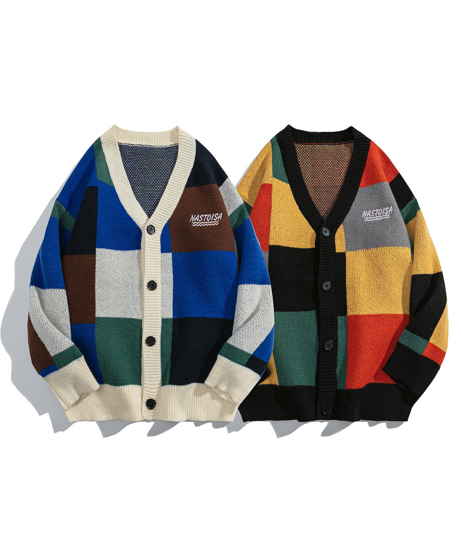 20%OFF&5倍POINT! カーディガン メンズ レディース ニットカーディガン セーター カップル ペアルック お揃い 冬 秋 ビッグシルエットオーバーサイズ ユニセックス 韓国ライク オルチャン ファッション レトロ パッチワーク風 ストリート【HOOK】