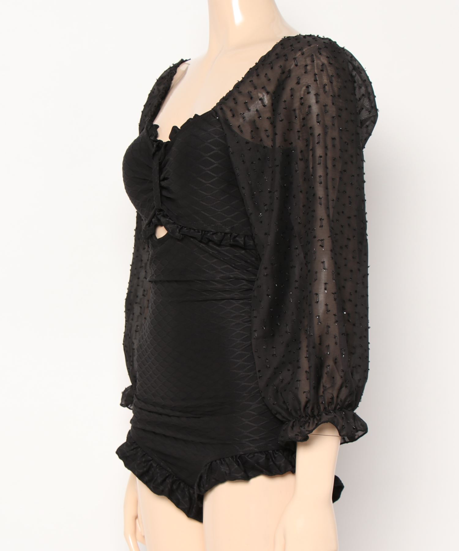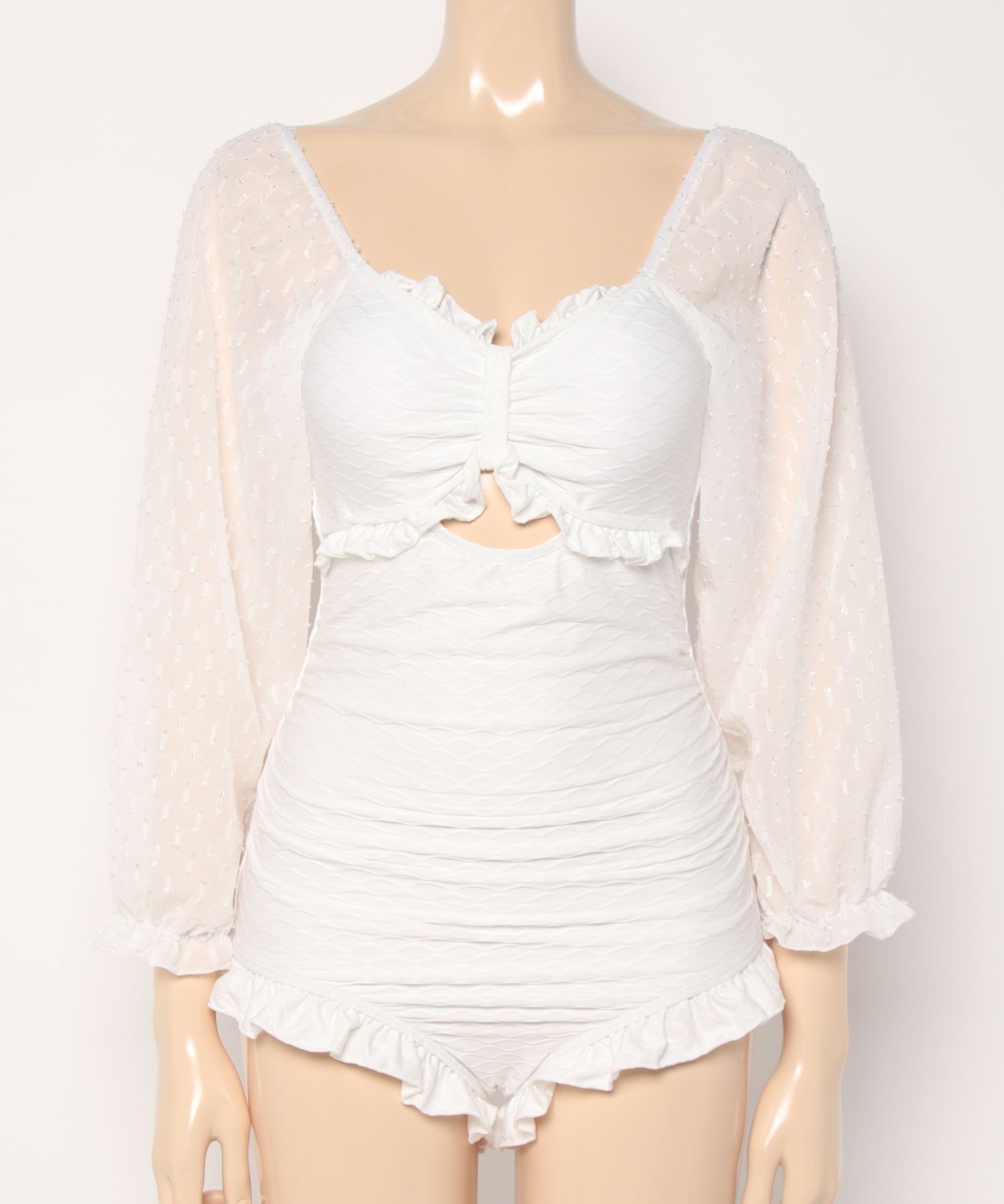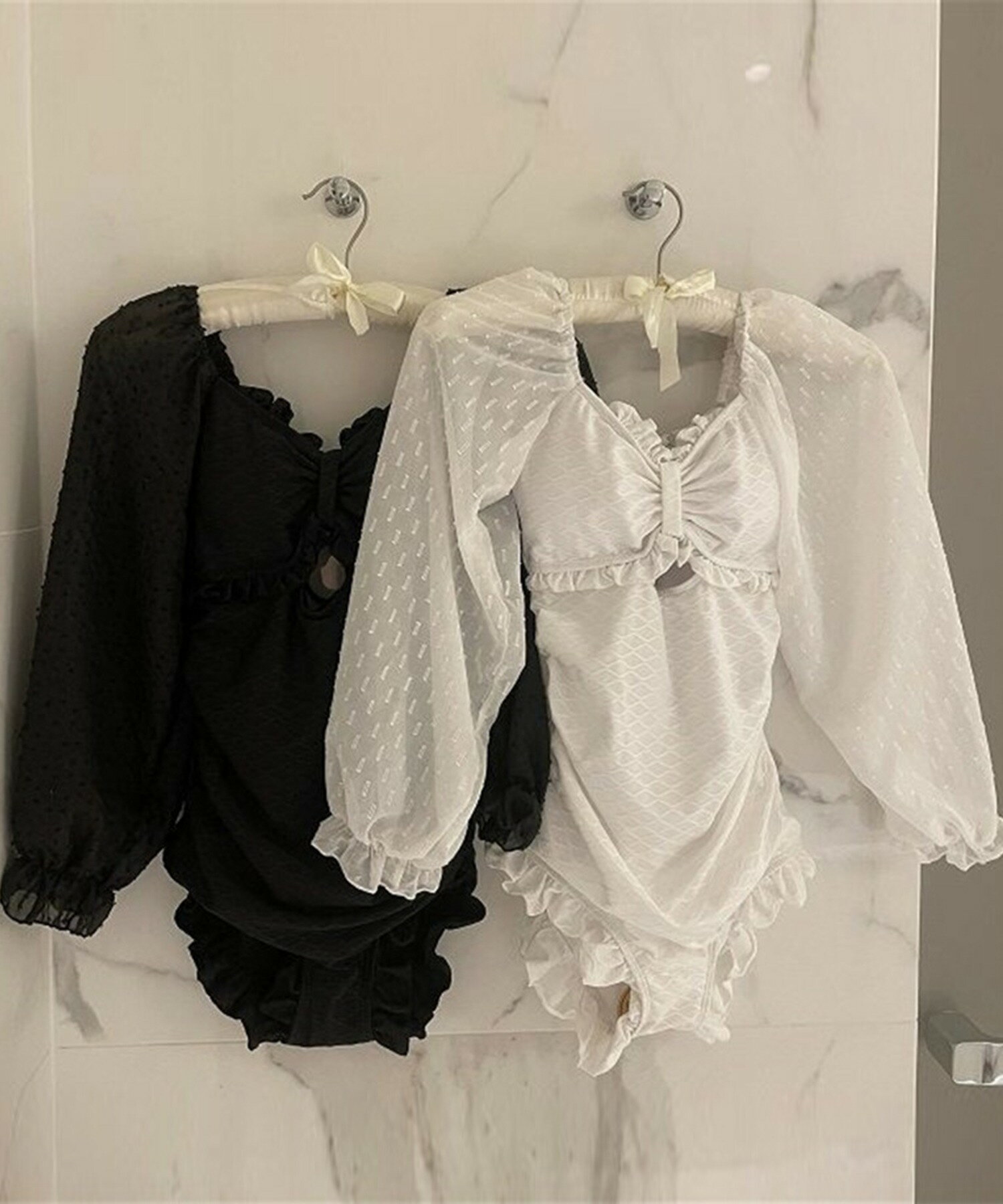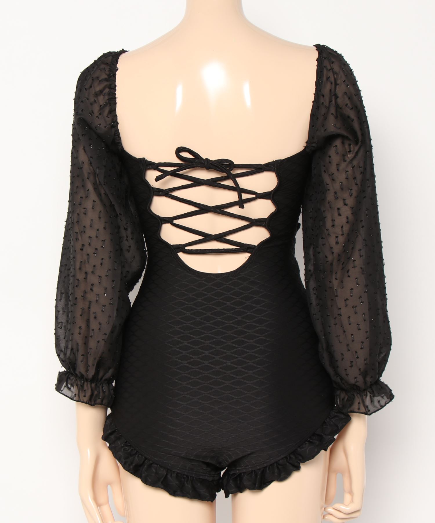 【クーポンで30%OFF!!】水着 ワンピース セクシー レディース 長袖 背中見せ レースアップ 可愛い ビキニ スイムウエア レース リゾート 【かわいいシースルー袖】