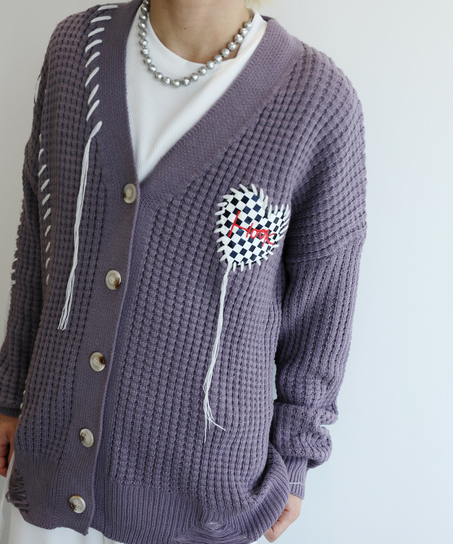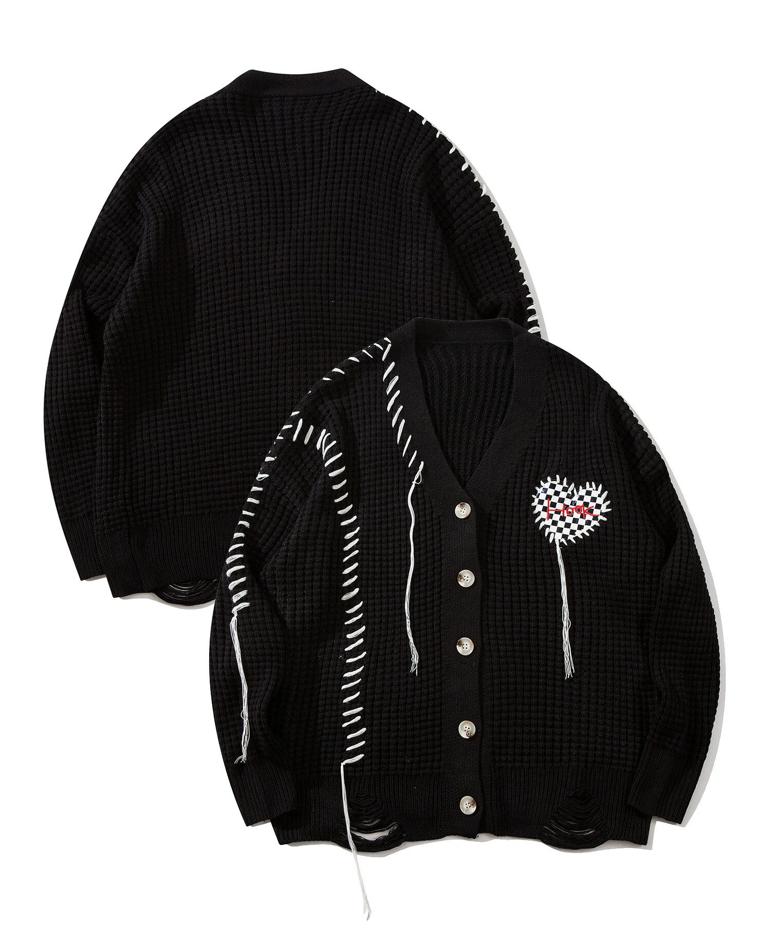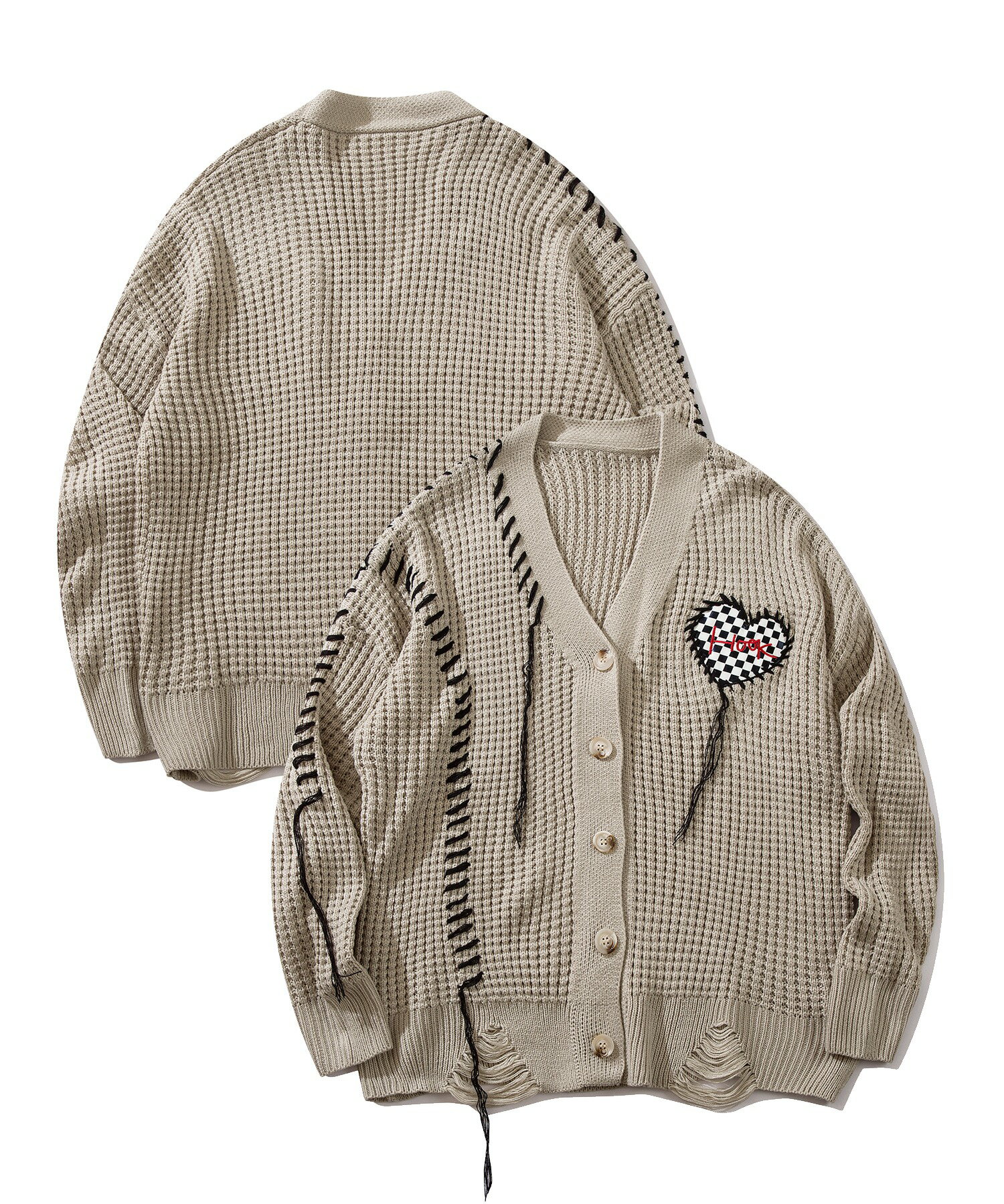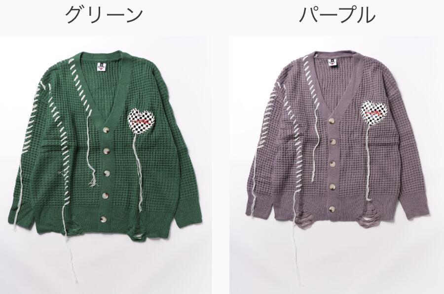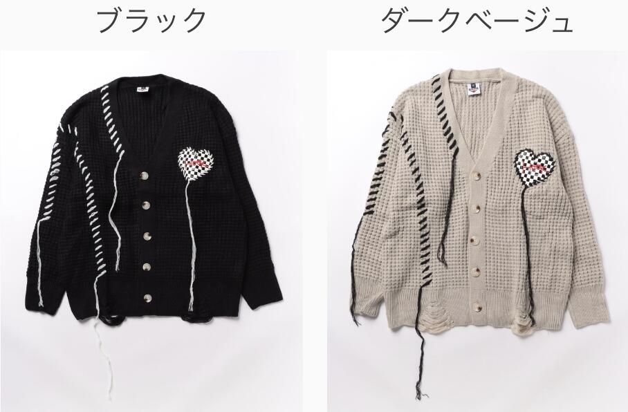 【クーポンで20%OFF!!】カーディガン メンズ レディース ニットカーディガン セーター ペアルック お揃い 冬 秋 春 ビッグシルエットオーバーサイズ ユニセックス 韓国 ライク ブロックチェック ハート ワッフル編み Vネック ストリート【HOOK】