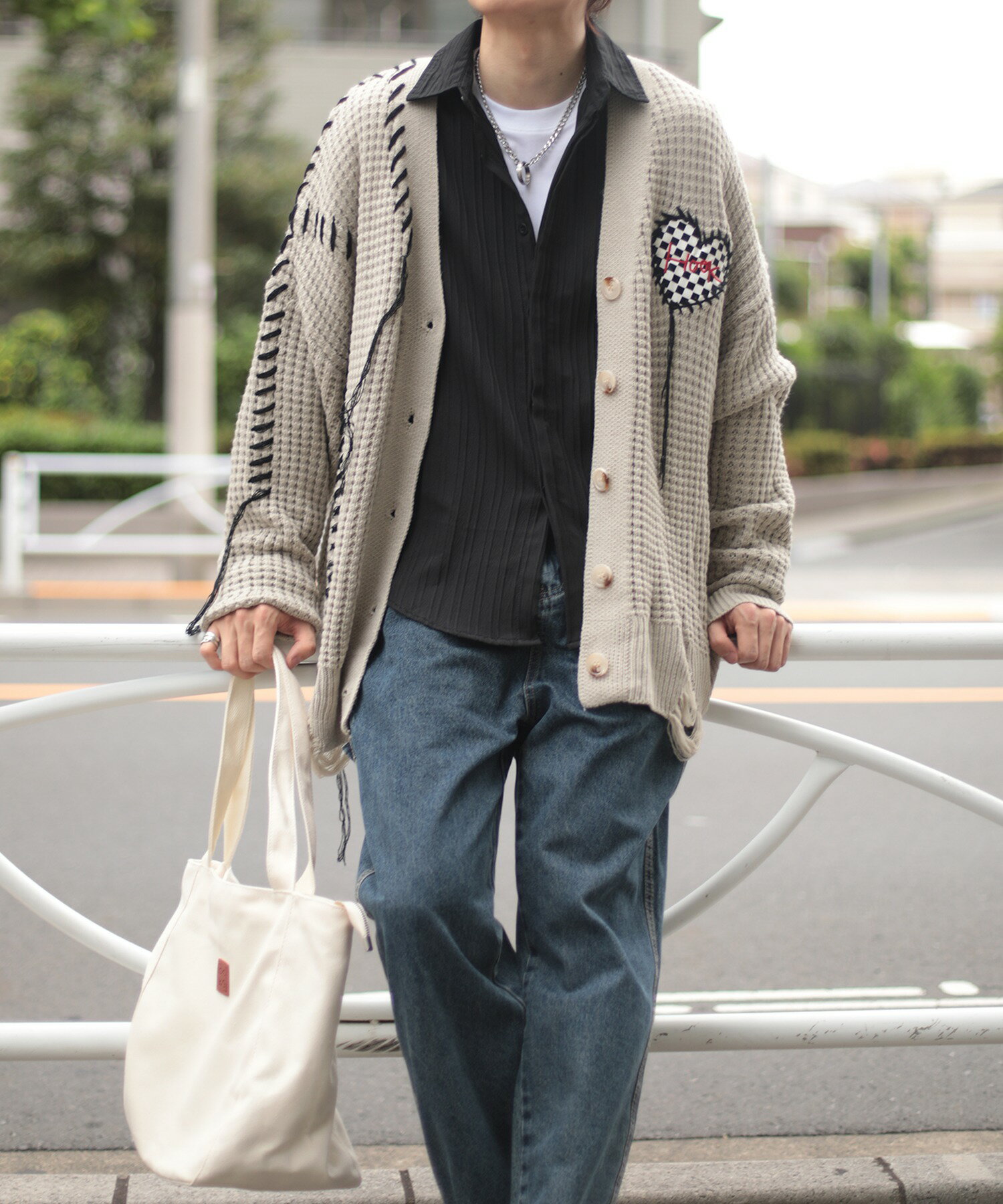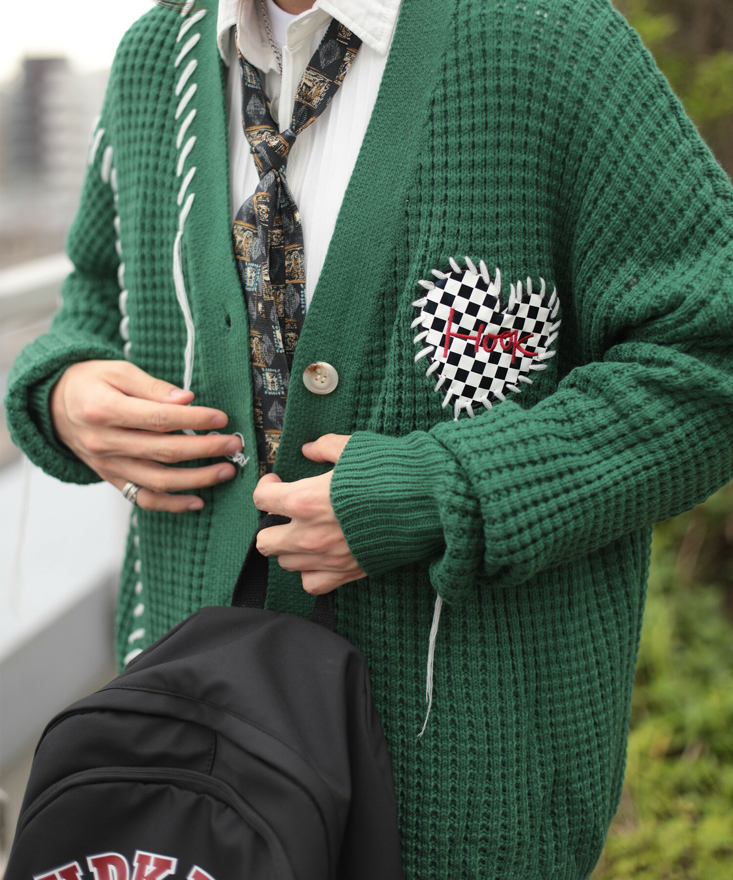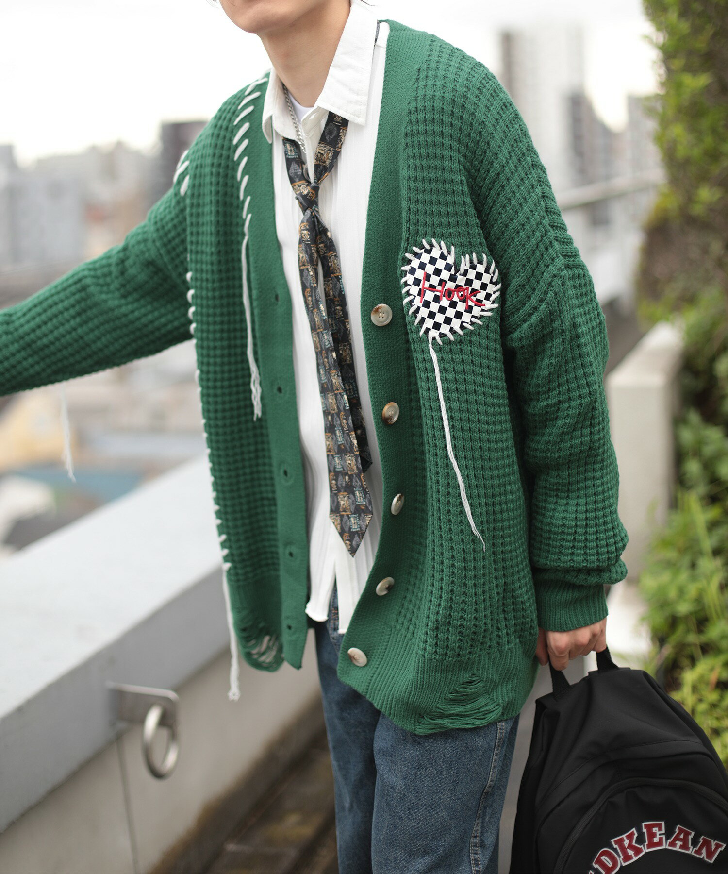 【クーポンで20%OFF!!】カーディガン メンズ レディース ニットカーディガン セーター ペアルック お揃い 冬 秋 春 ビッグシルエットオーバーサイズ ユニセックス 韓国 ライク ブロックチェック ハート ワッフル編み Vネック ストリート【HOOK】