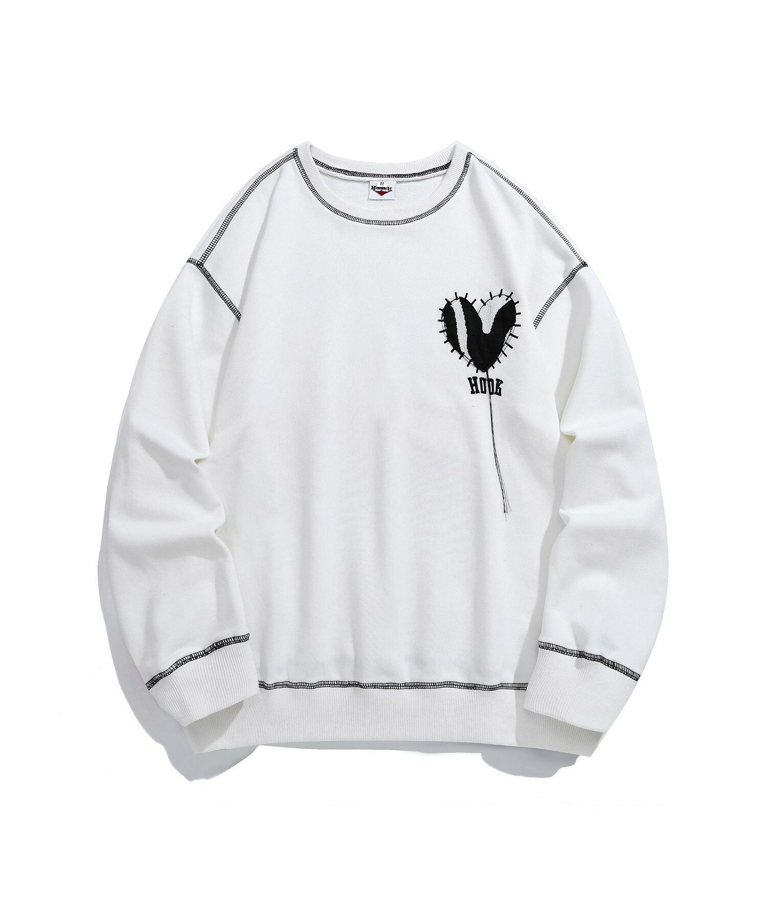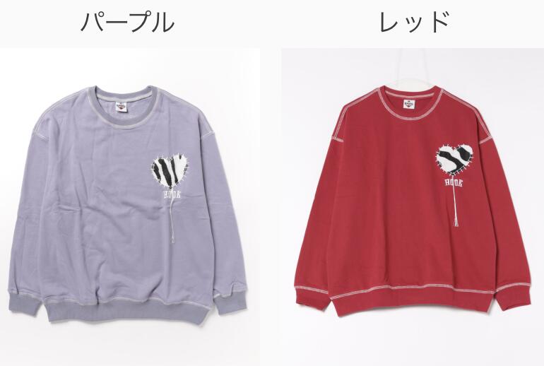 【クーポンで20%OFF】スウェット トレーナー メンズ レディース お揃い 秋 冬 春 ビッグシルエット オーバーサイズ ユニセックス 韓国ライク ハート ステッチ プリント ストリート 綿75% コットン ゆったり 【HOOK】