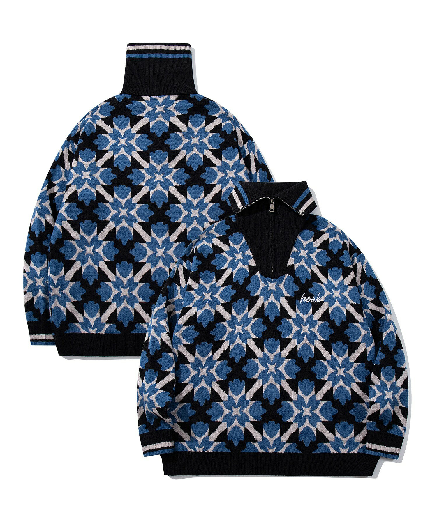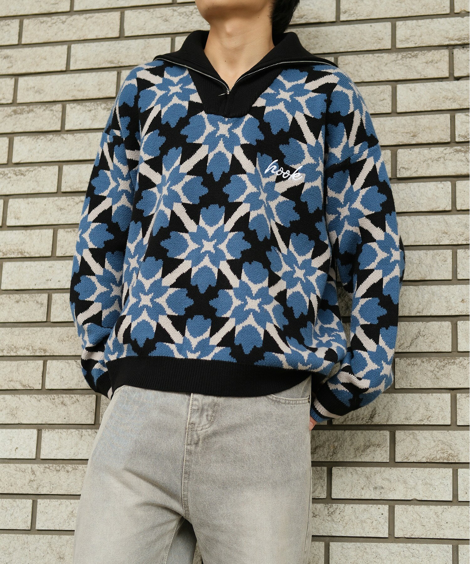 point5倍 20%OFF ニット メンズ ハーフジップ 幾何学模様 クルーネックニット セーター 英字 レトロ ビッグシルエット レディース オーバーサイズ ユニセックス 韓国 ライク 古着風 ストリート【HOOK】
