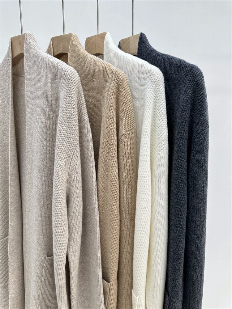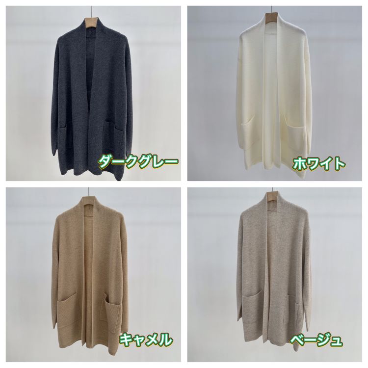 ニット カーディガン ウール100% 長袖 秋 冬 レディース シンプル ニットソー ロングカーディガン トッパーカーデ きれいめ 体型カバー 会社 膝丈 膝下 ミドル丈 お尻が隠れる 長め オフィス 冷房 カーデ ウールカーディガン アウター S M L
