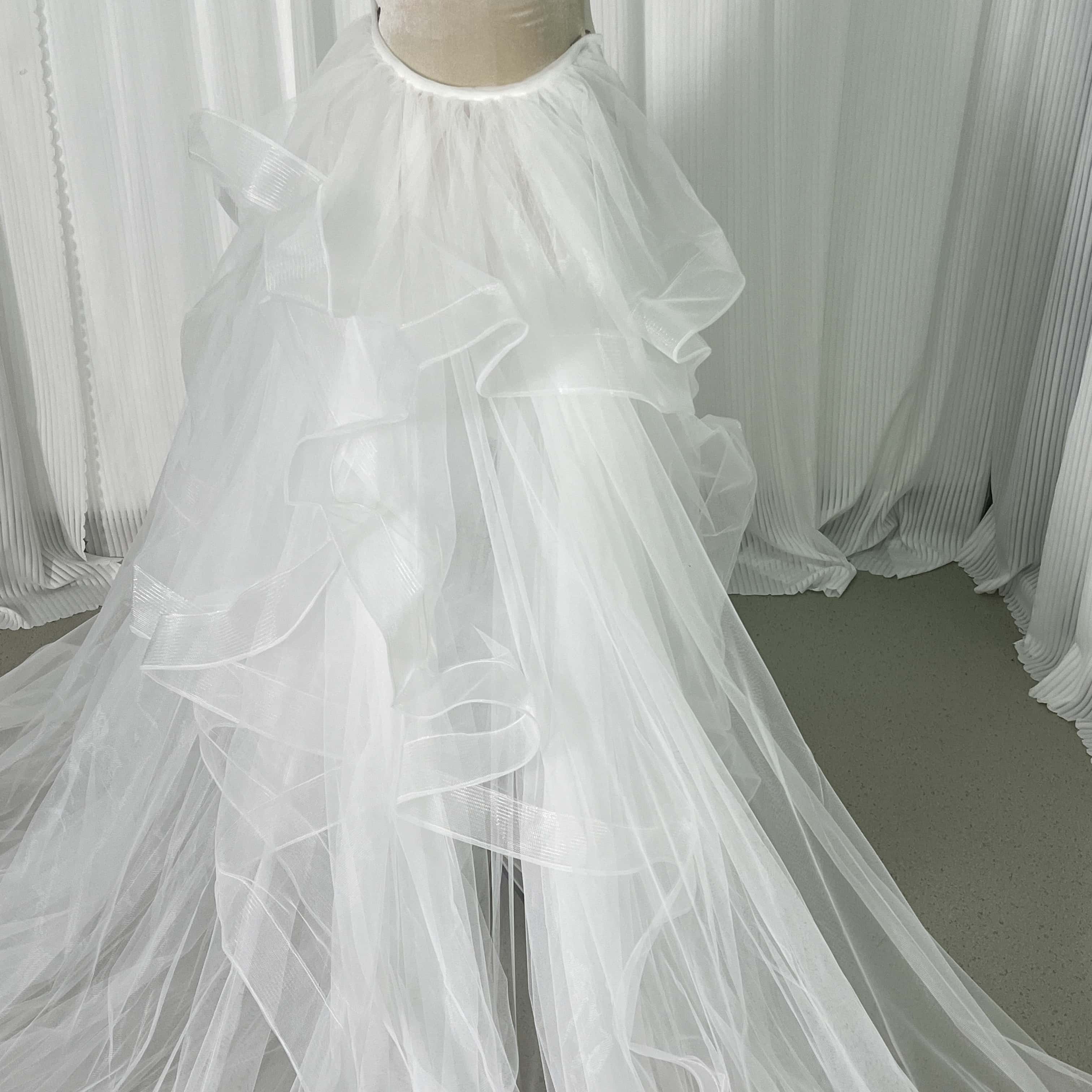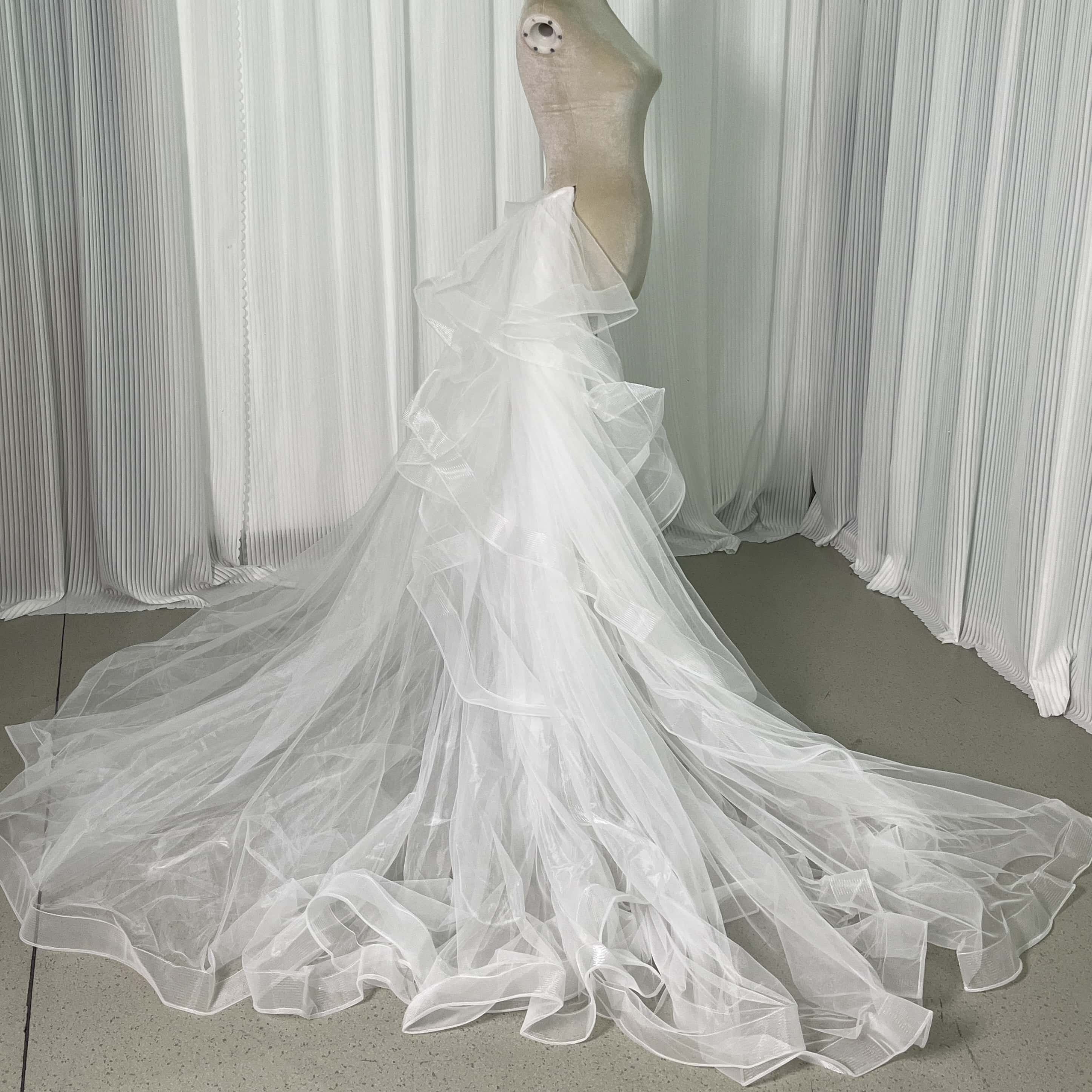 華やかなトレーン 取り外し オフホワイト ラッフルフリル ソフトチュール 前撮り